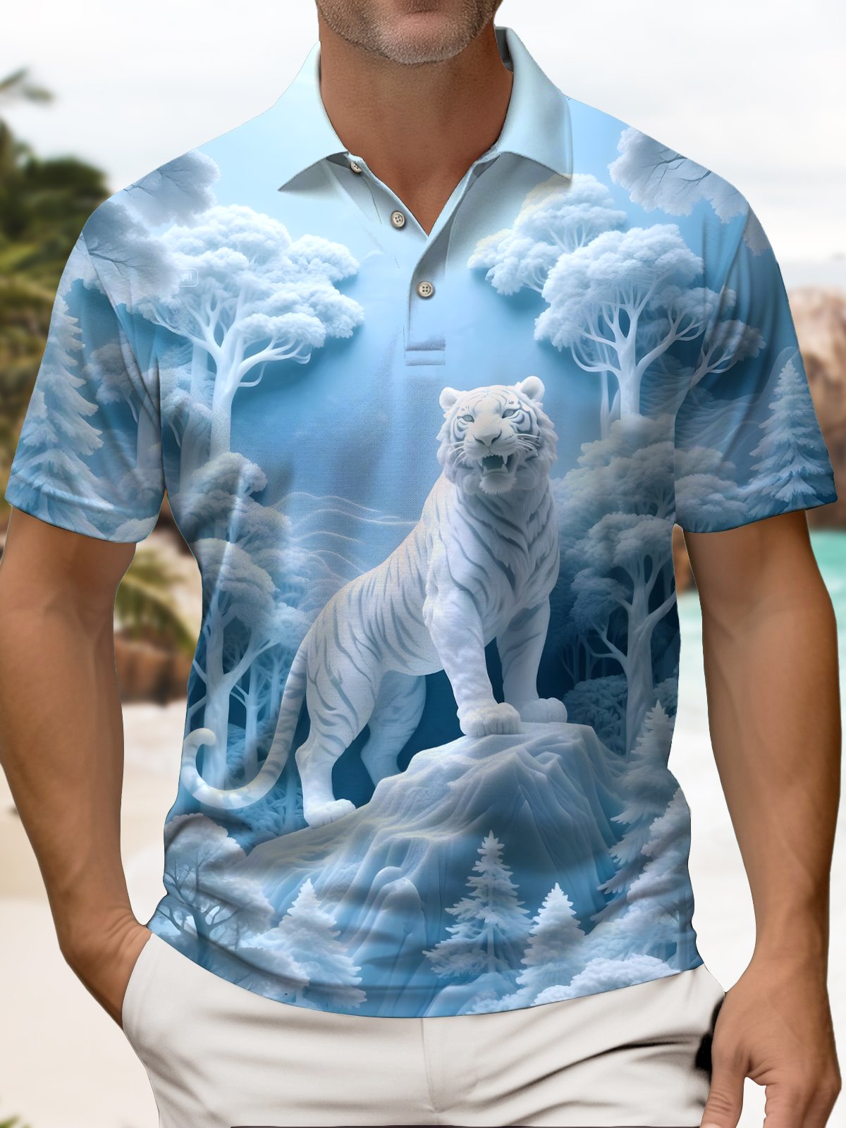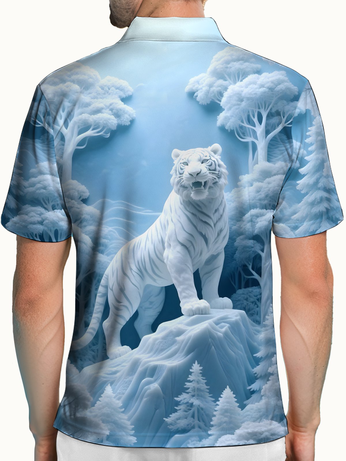 Alohadaddy® Retro Tiger 3D Ukiyo-e Men's Short-Sleeve Polo Shirt