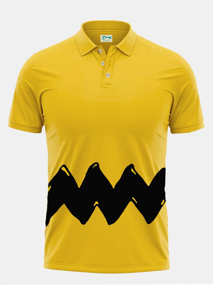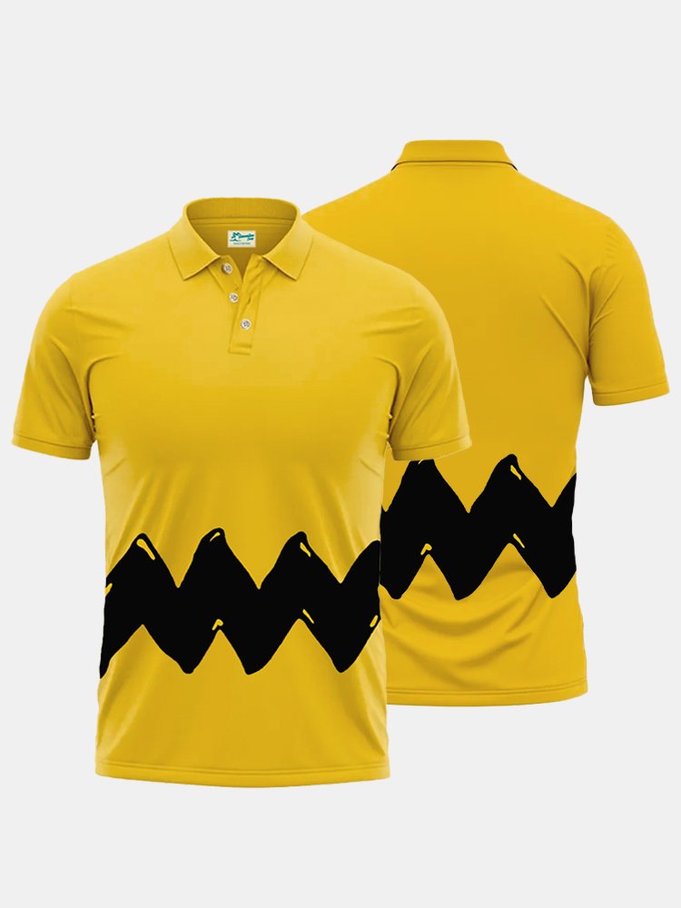 Alohadaddy 60's Retro Cartoon Men's Hawaiian Polo Shirt Art Stripe Oversized Stretch Polo Shirts