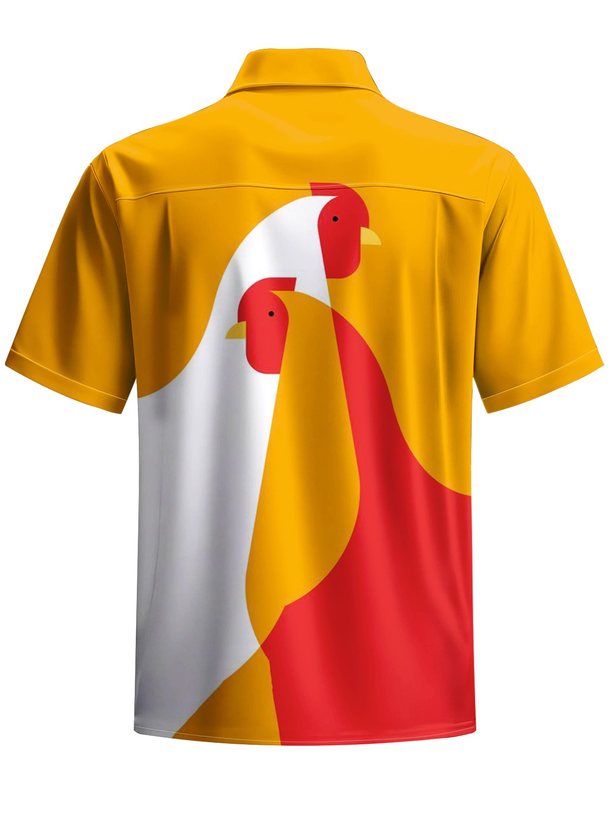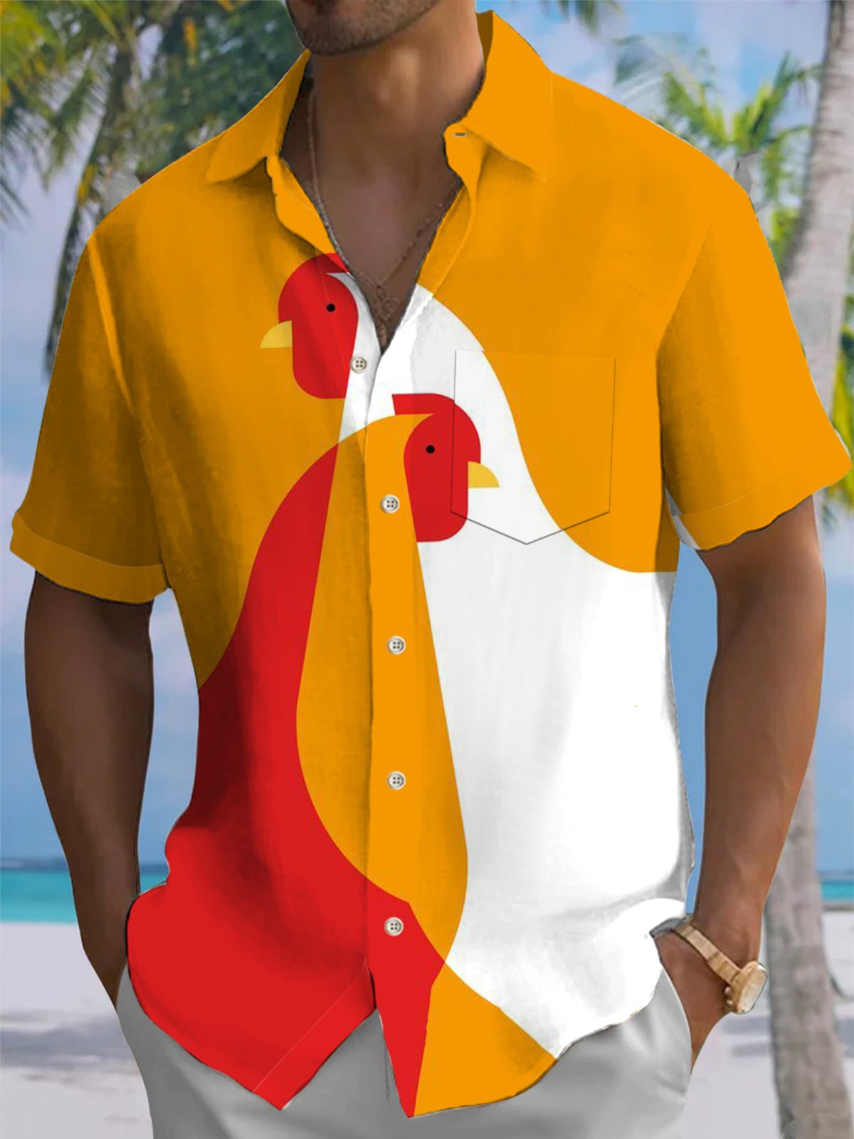 Alohadaddy® Casual Geometric Rooster Print Button Pocket Stretch Men's Short Sleeve Shirt Big & Tall