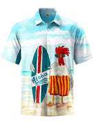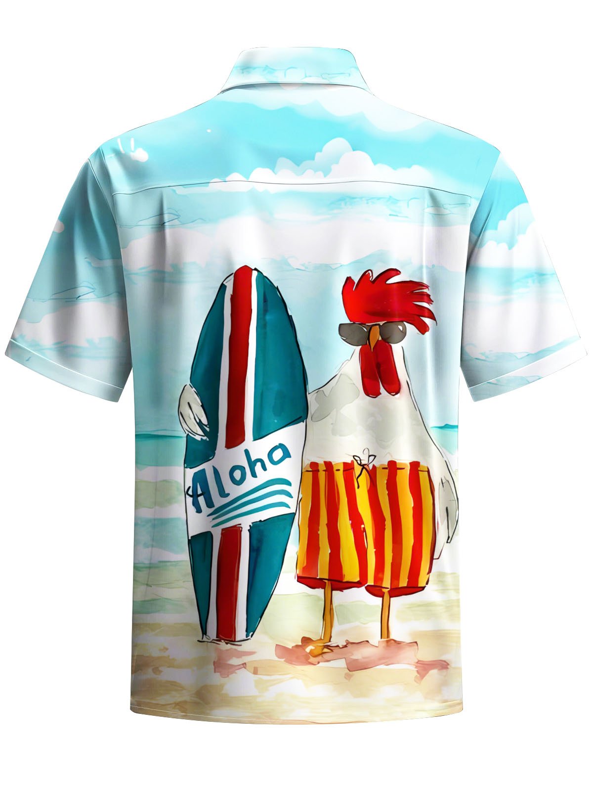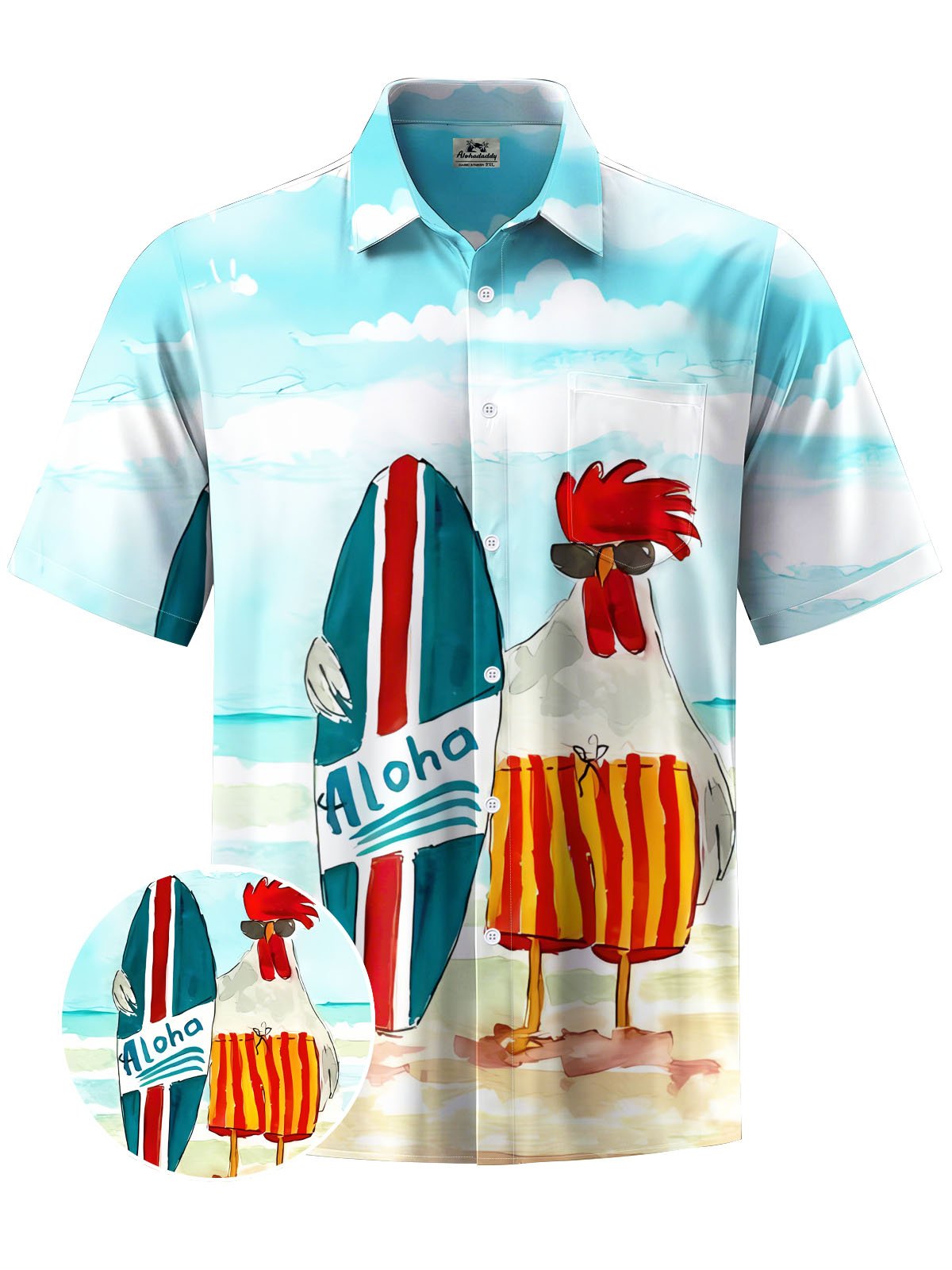 Alohadaddy® Hawaii Rooster Surf Print Chest Pocket Men's Short Sleeve Shirt Big & Tall