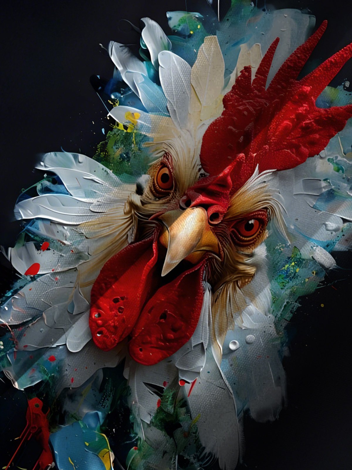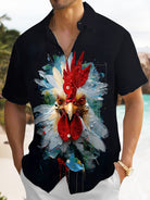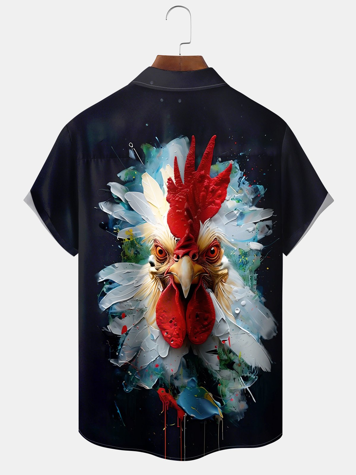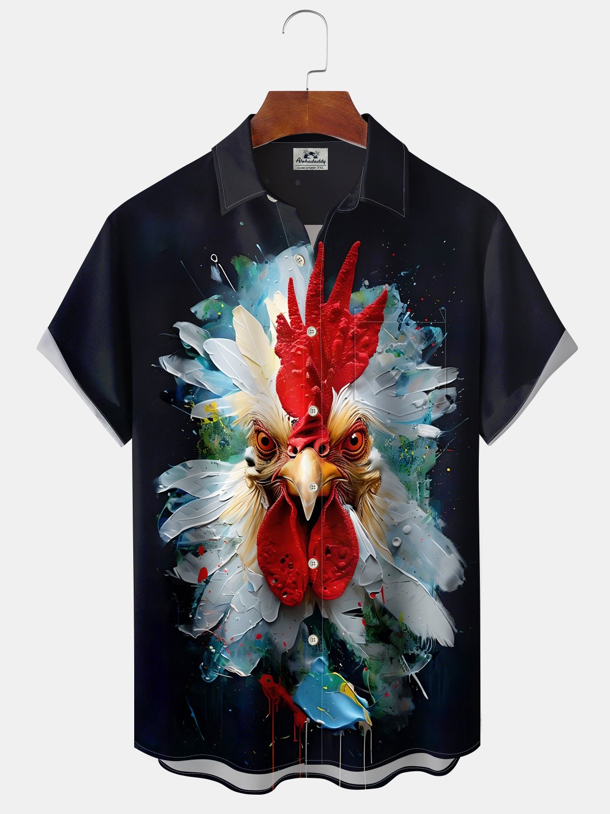 Alohadaddy Casual Collection Moisture-wicking Rooster Painting Print Chest Pocket Stretch Oversized Hawaiian Short Sleeve Shirt