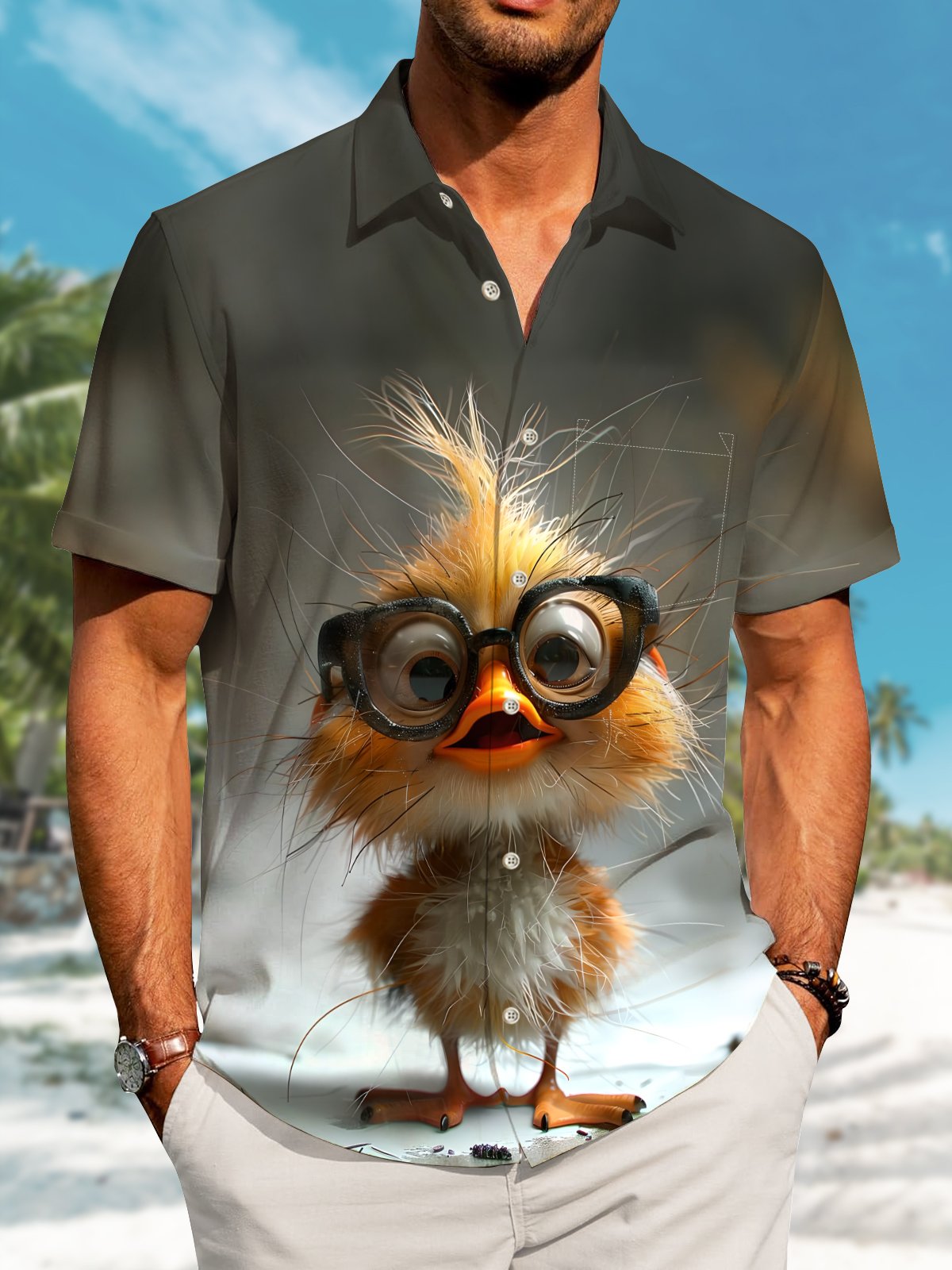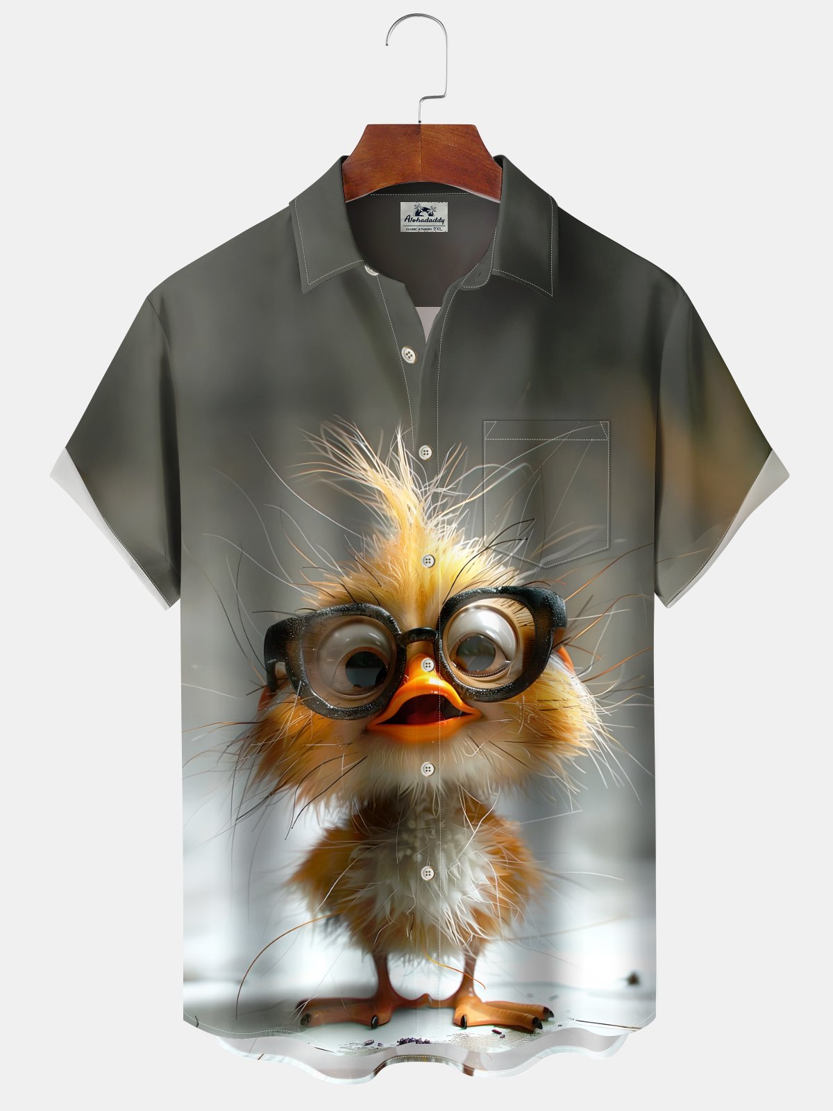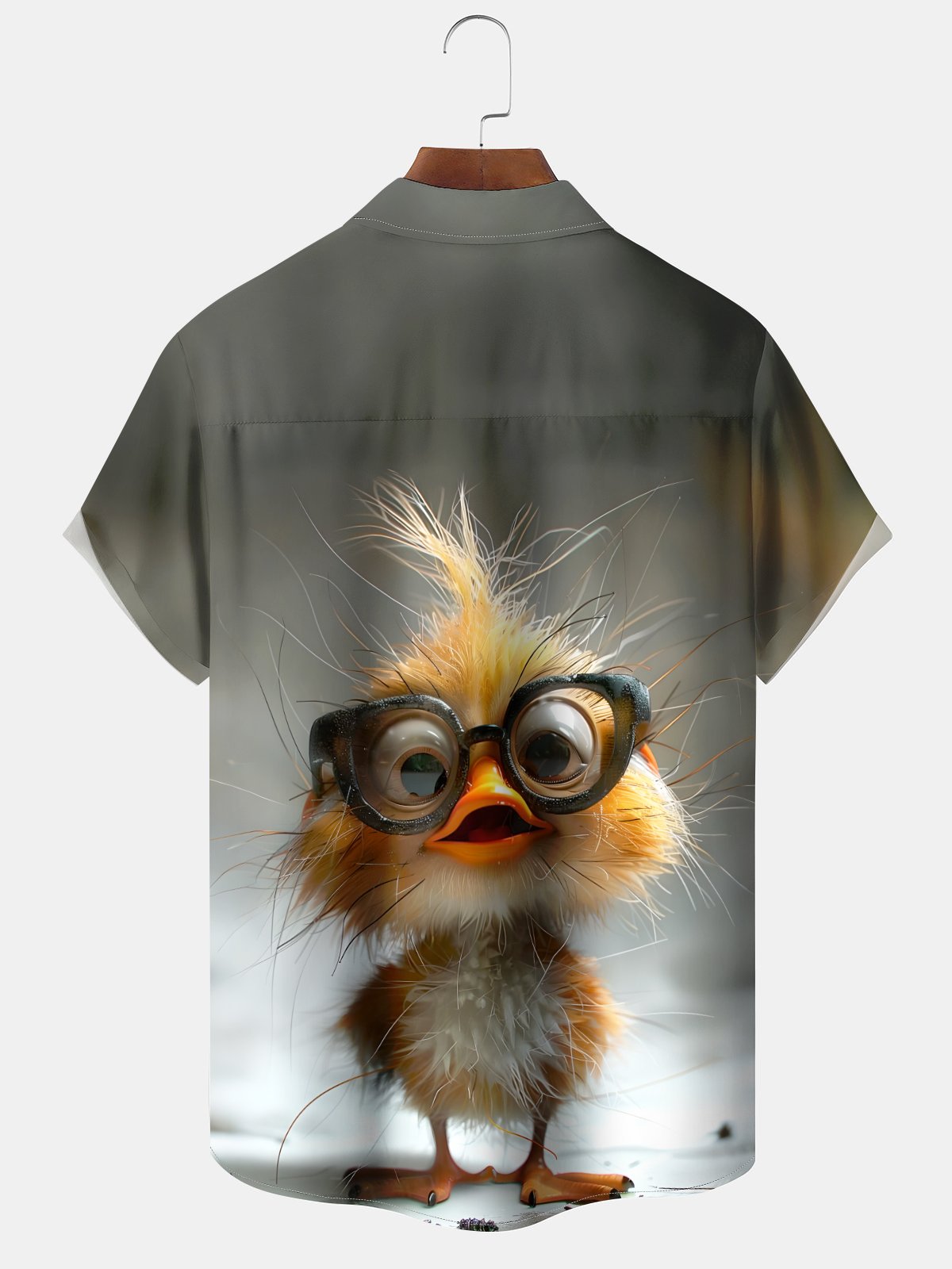 Alohadaddy Hawaiian Yellow Chicken Casual Print Art Button Cardigan Pocket Elastic Large Size Short Sleeve Shirt