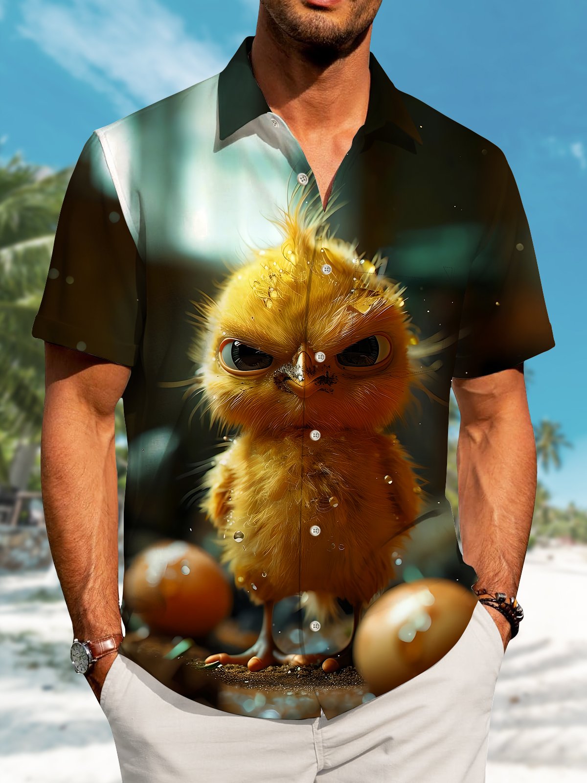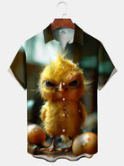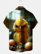 Alohadaddy Hawaiian Yellow Chicken Print Art Pocket Button Cardigan Stretch Large Size Short Sleeve Shirt