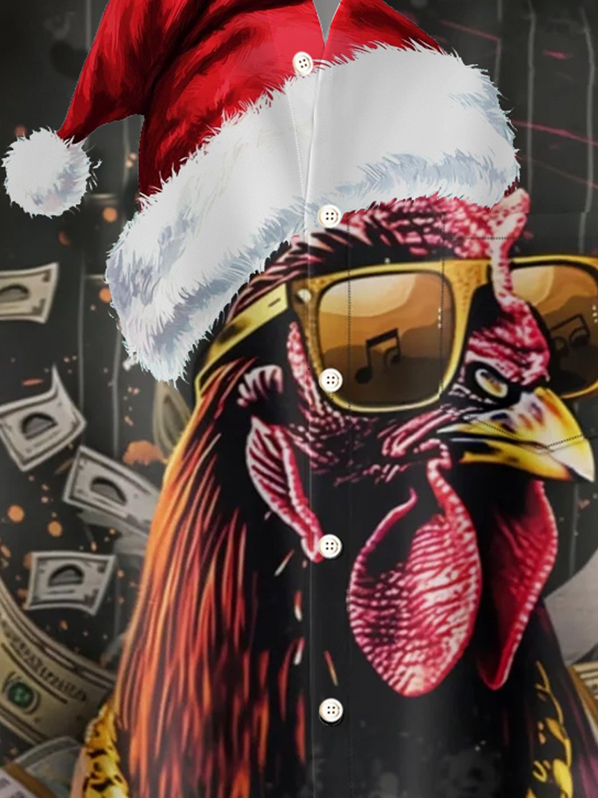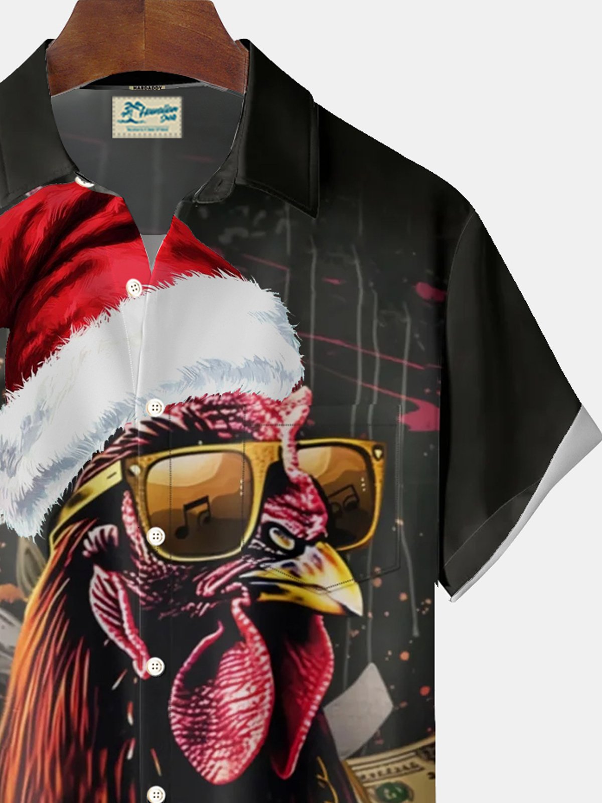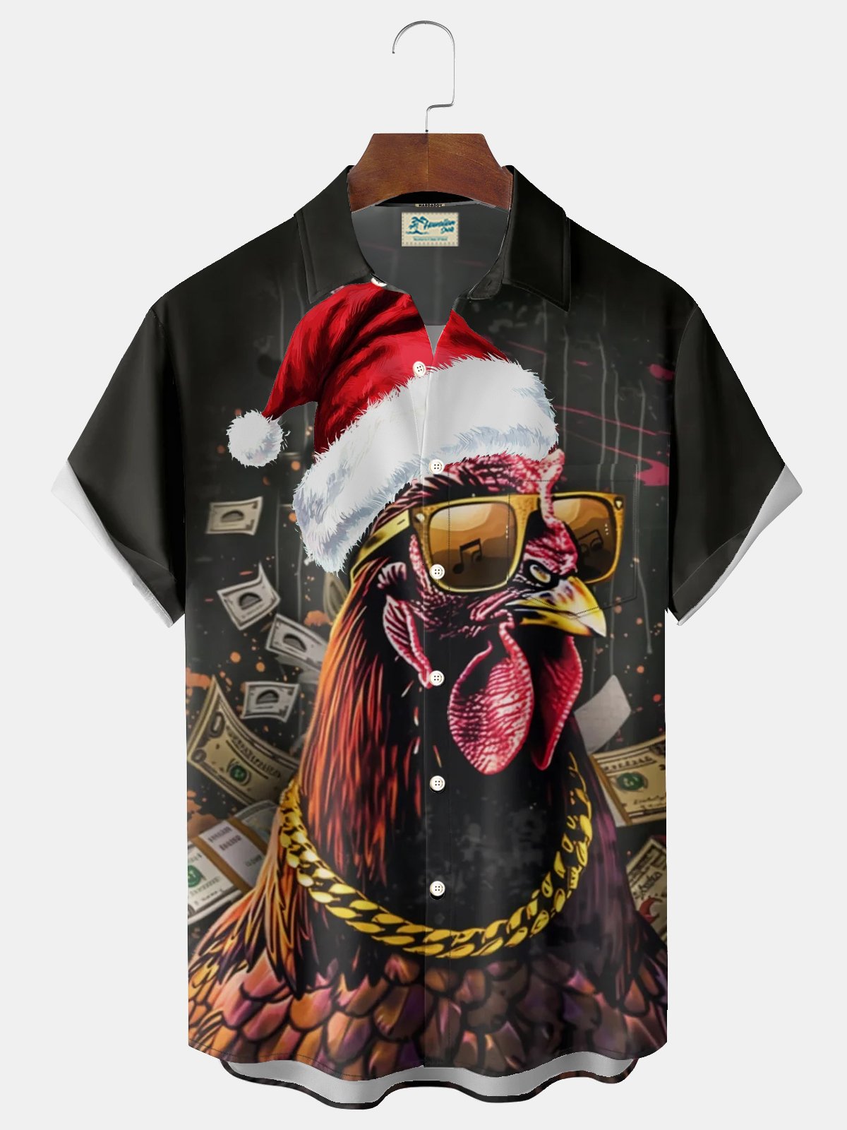 Alohadaddy Santa Hat Rooster 3D Digital Print Men's Button Pocket Short Sleeve Shirt Big & Tall