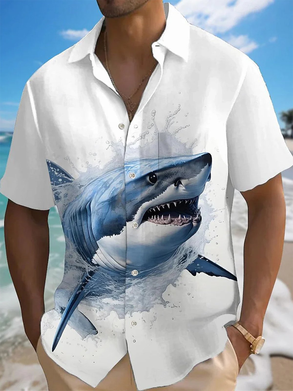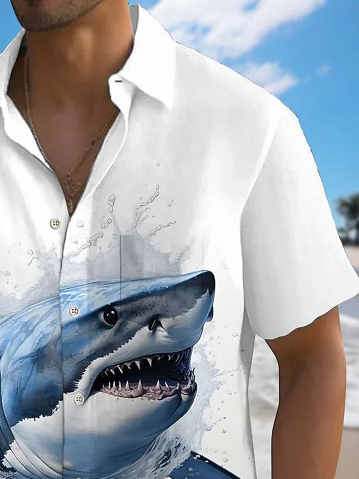 Alohadaddy® Hawaiian Shark Art Print Chest Pocket Mens Short Sleeve Shirt Big & Tall
