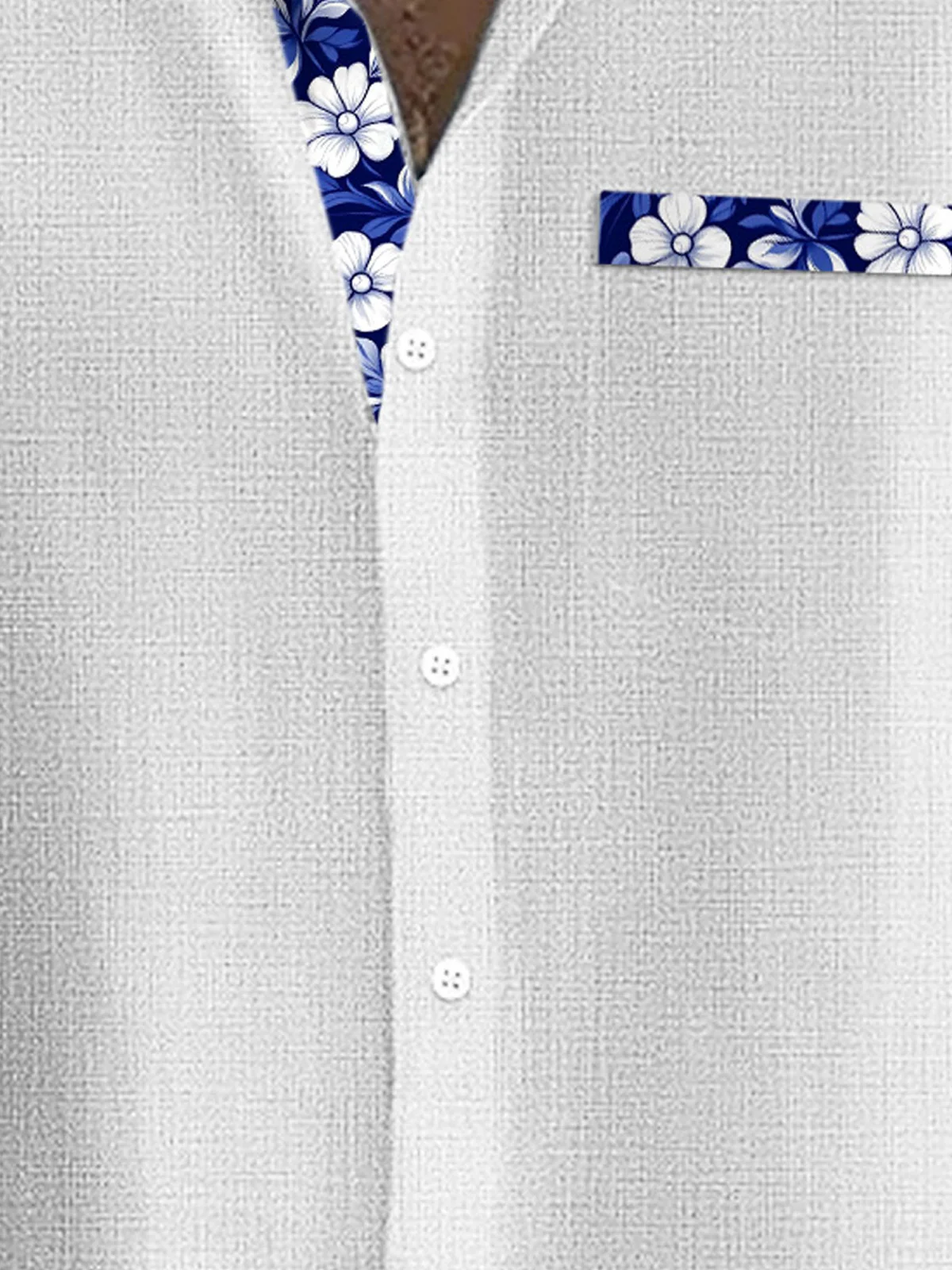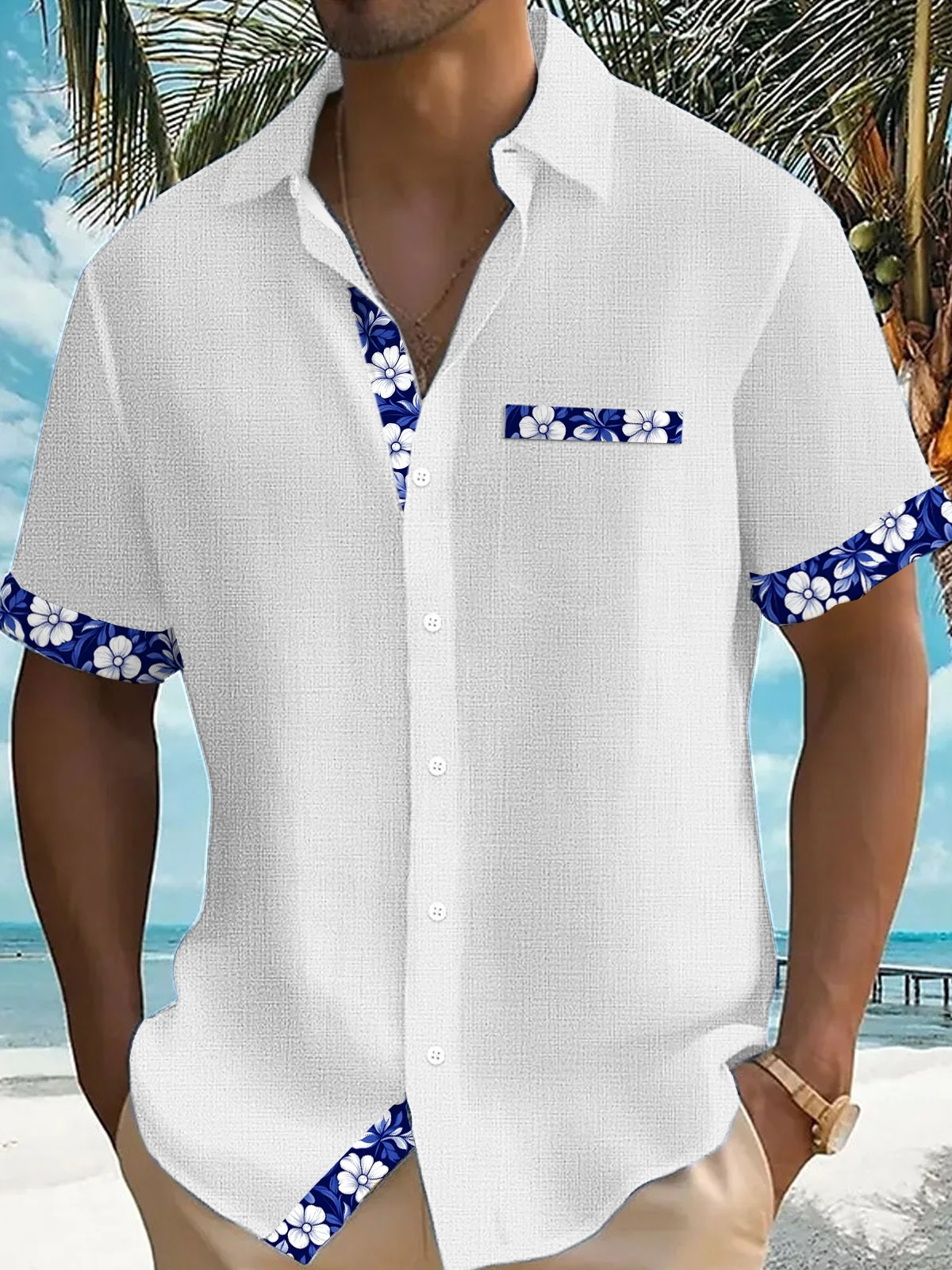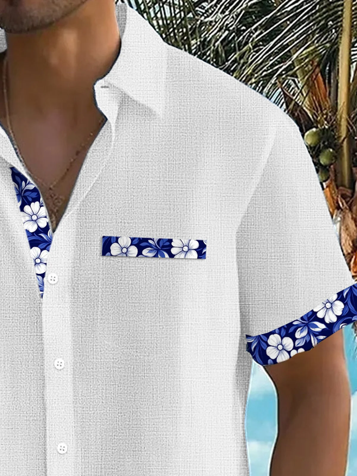Alohadaddy® Casual Basics Contrast Floral Print Chest Pocket Men's Short Sleeve Shirt Big & Tall