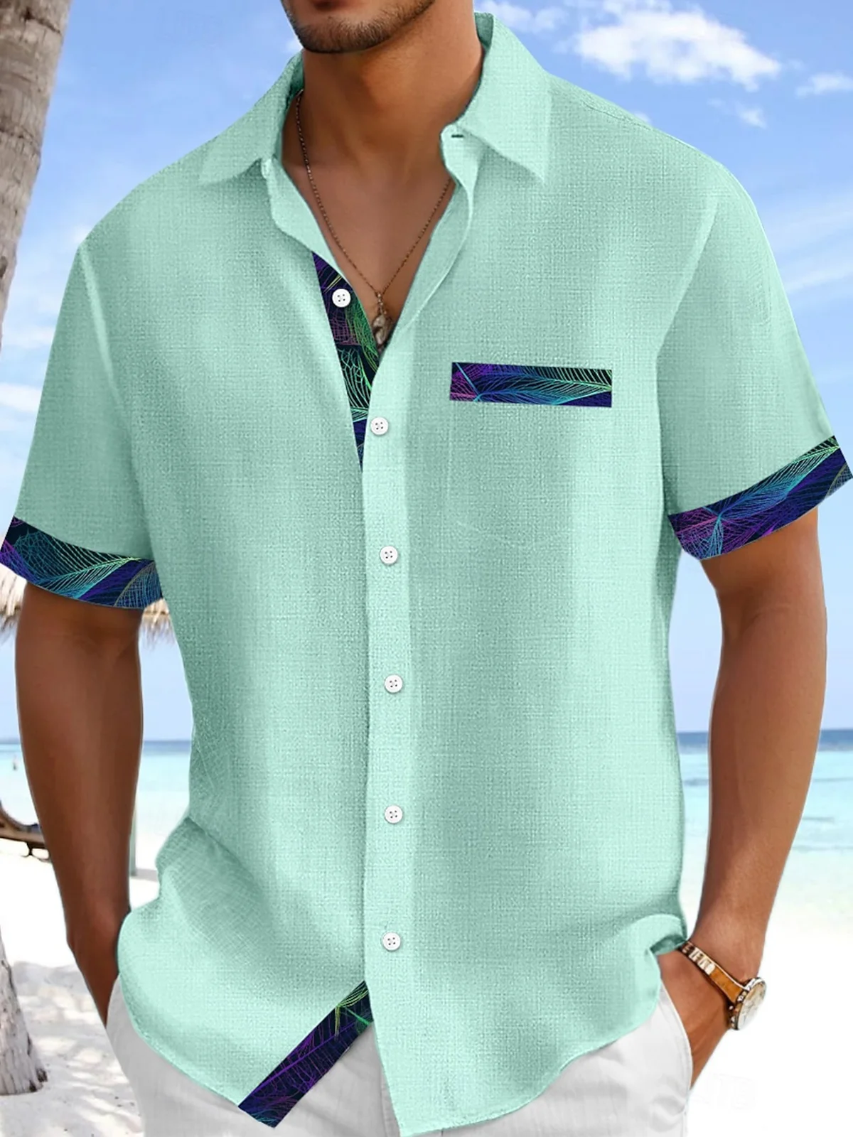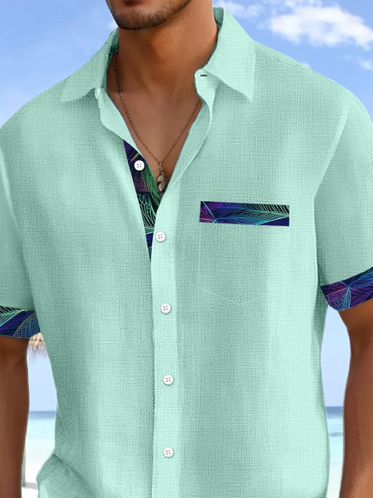 Alohadaddy® Casual Basics Contrast Print Chest Pocket Men's Short Sleeve Shirt Big & Tall