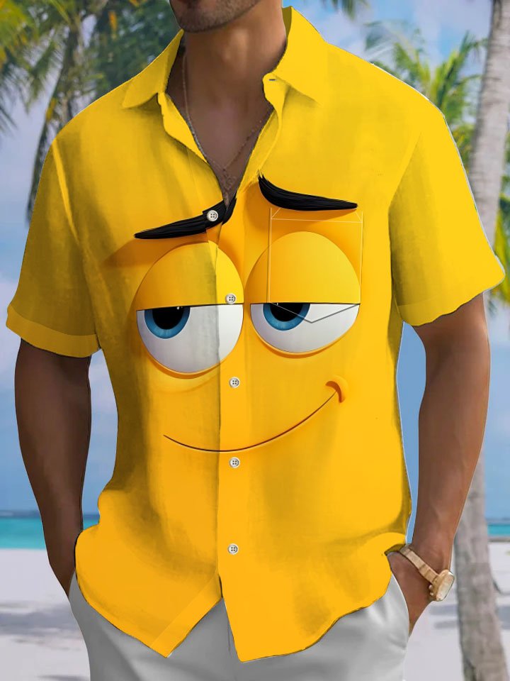 Alohadaddy® Casual Cartoon Print Chest Pocket Men's Short Sleeve Shirt Big & Tall