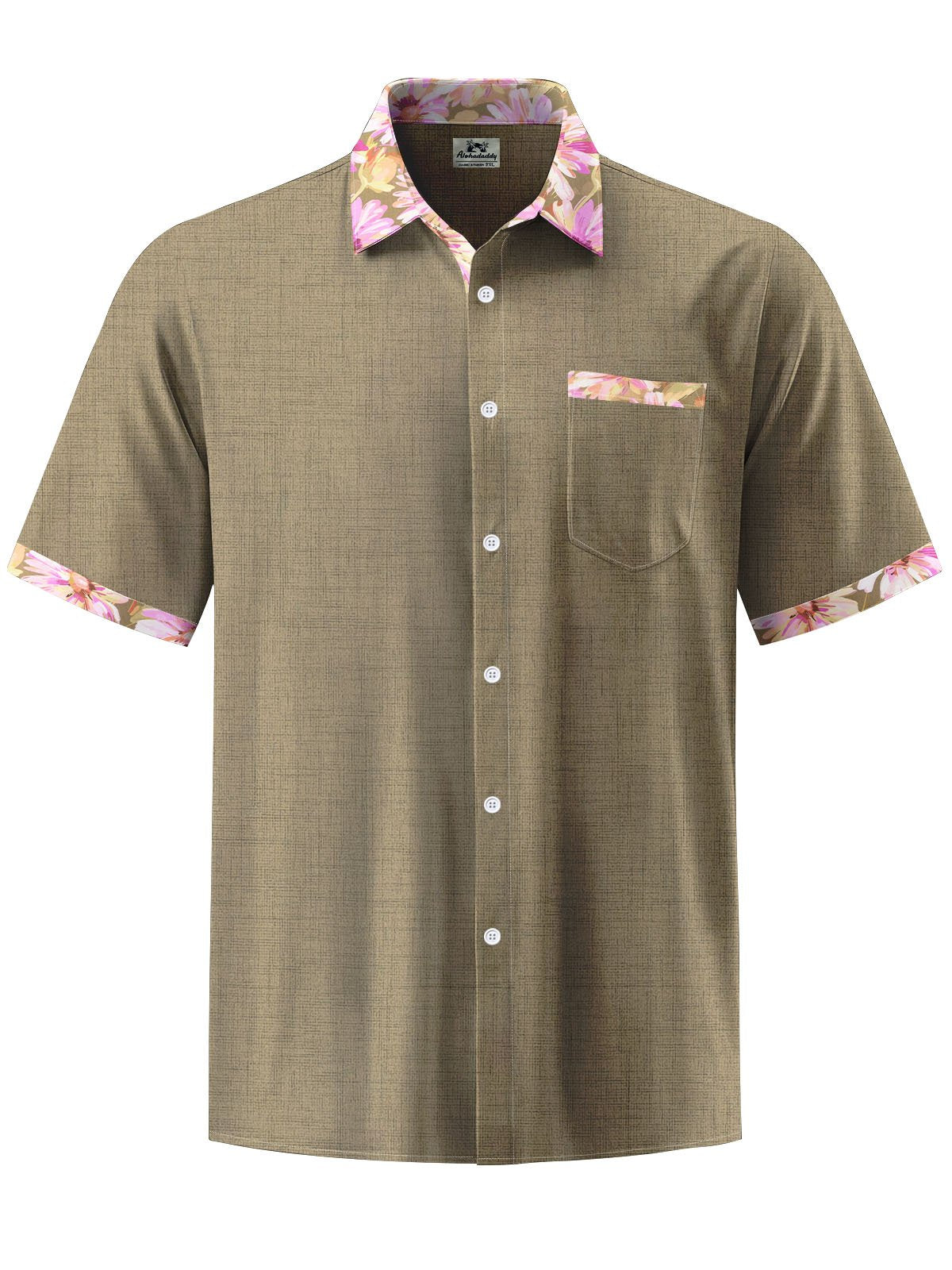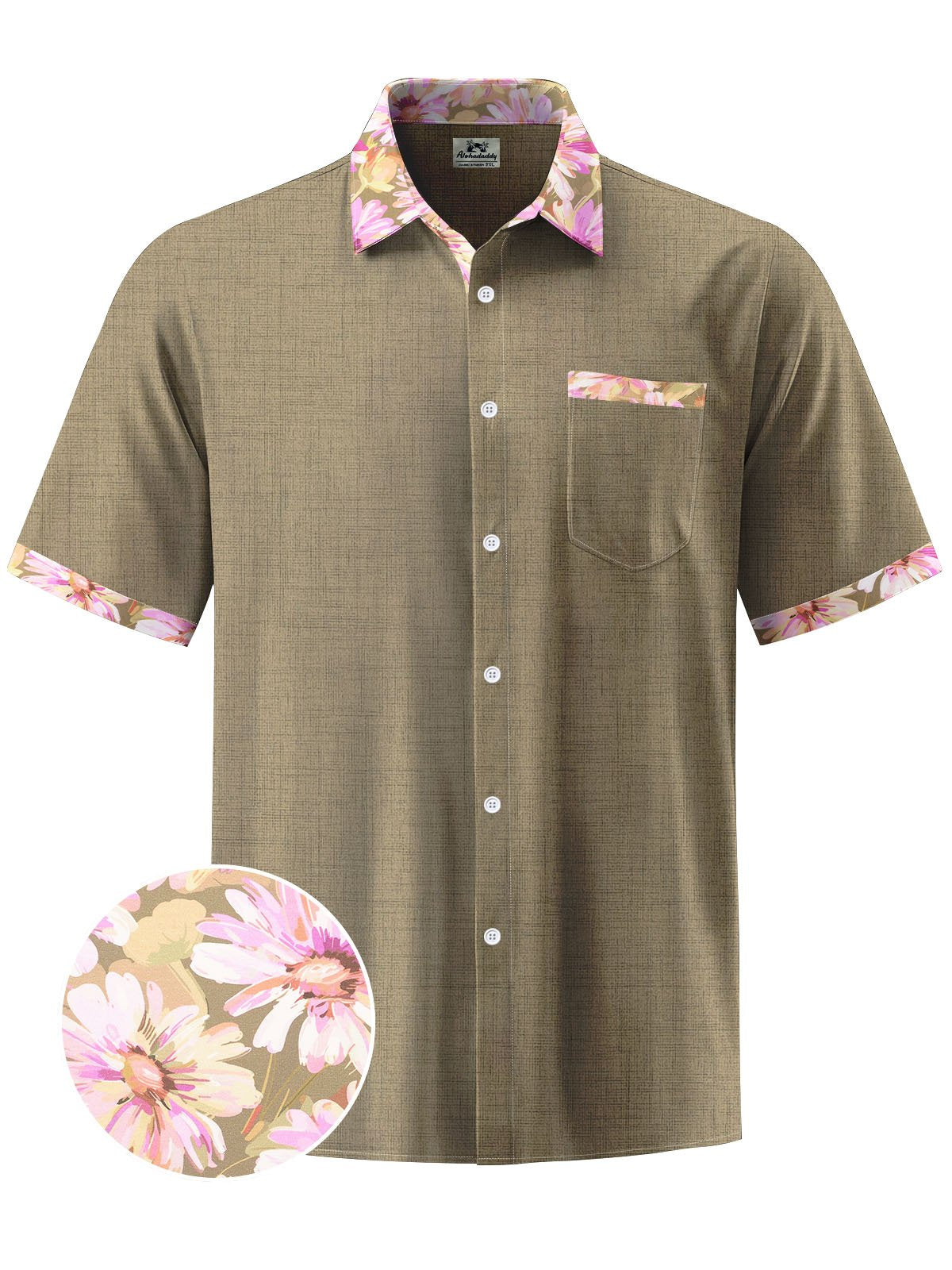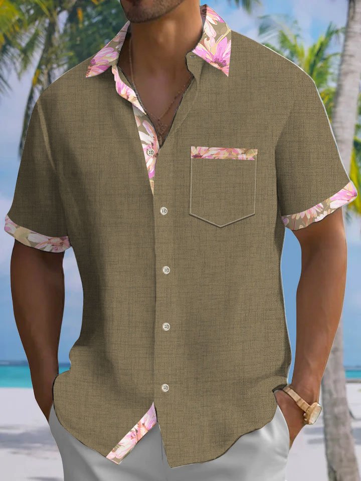 Alohadaddy® Casual Contrast Floral Print Chest Pocket Men's Short Sleeve Shirt Big & Tall