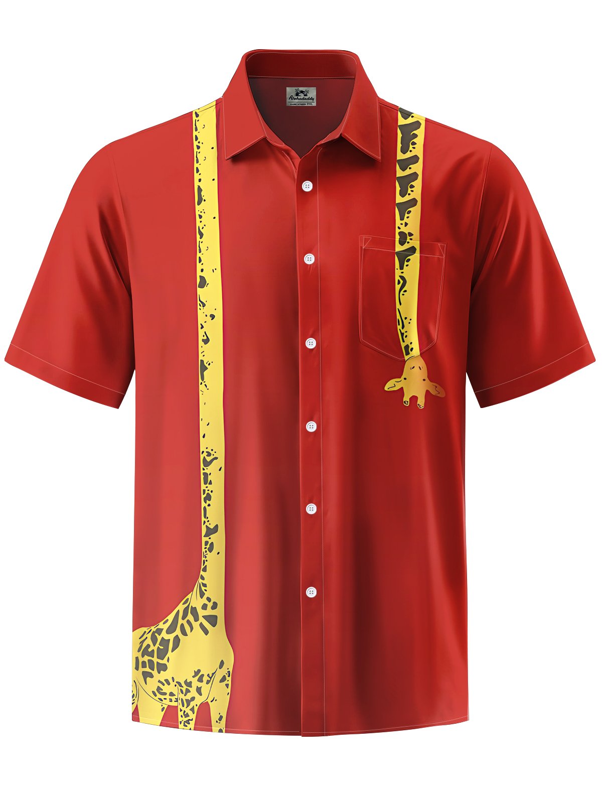 Alohadaddy® Casual Giraffe Art Print Chest Pocket Mens Short Sleeve Shirt Big & Tall