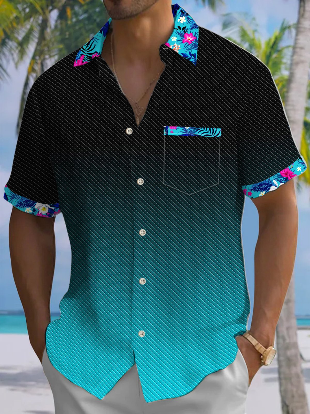Alohadaddy® Casual Gradient Floral Art Print Mens Wicking Short Sleeve Shirt Big & Tall