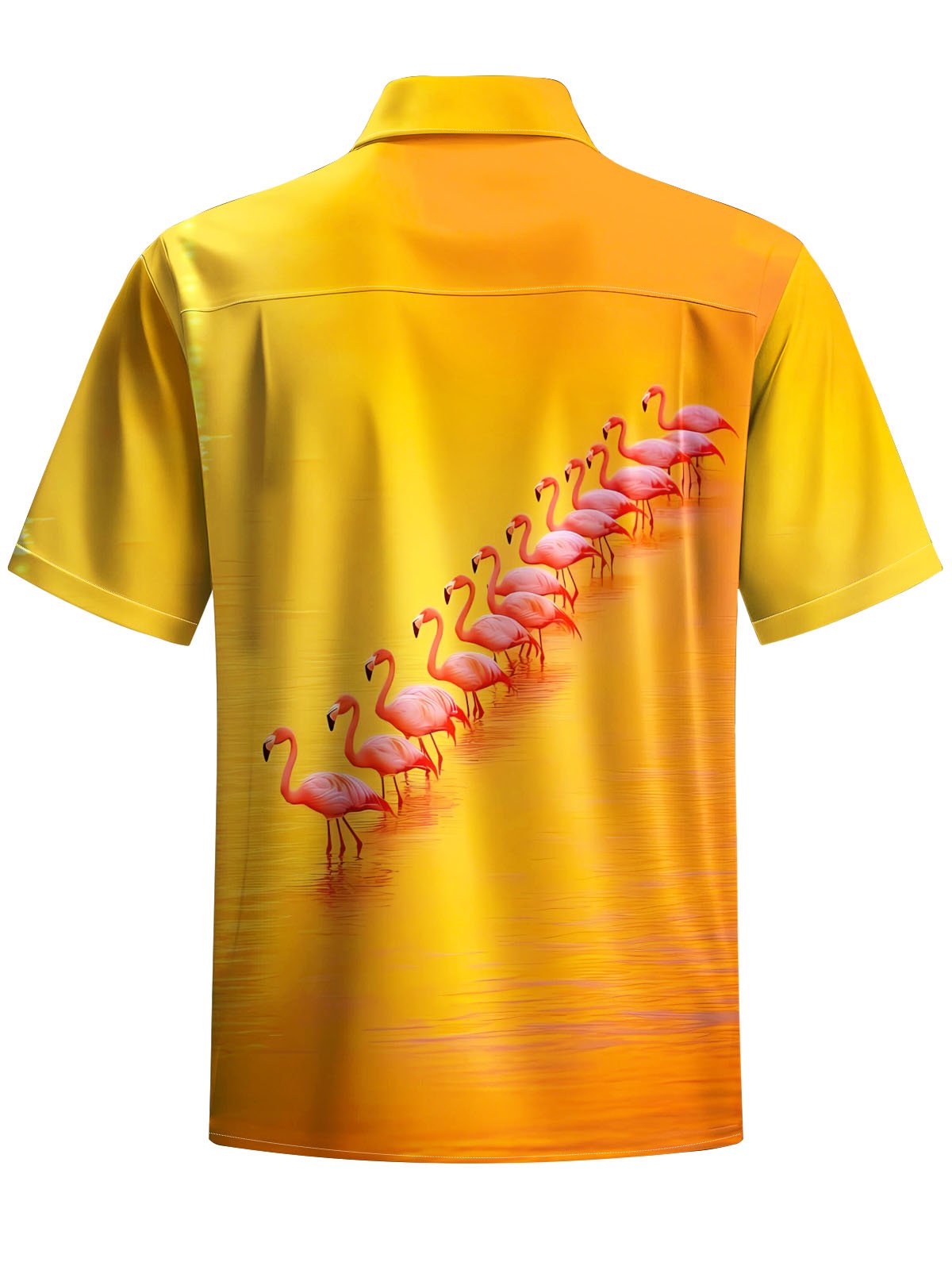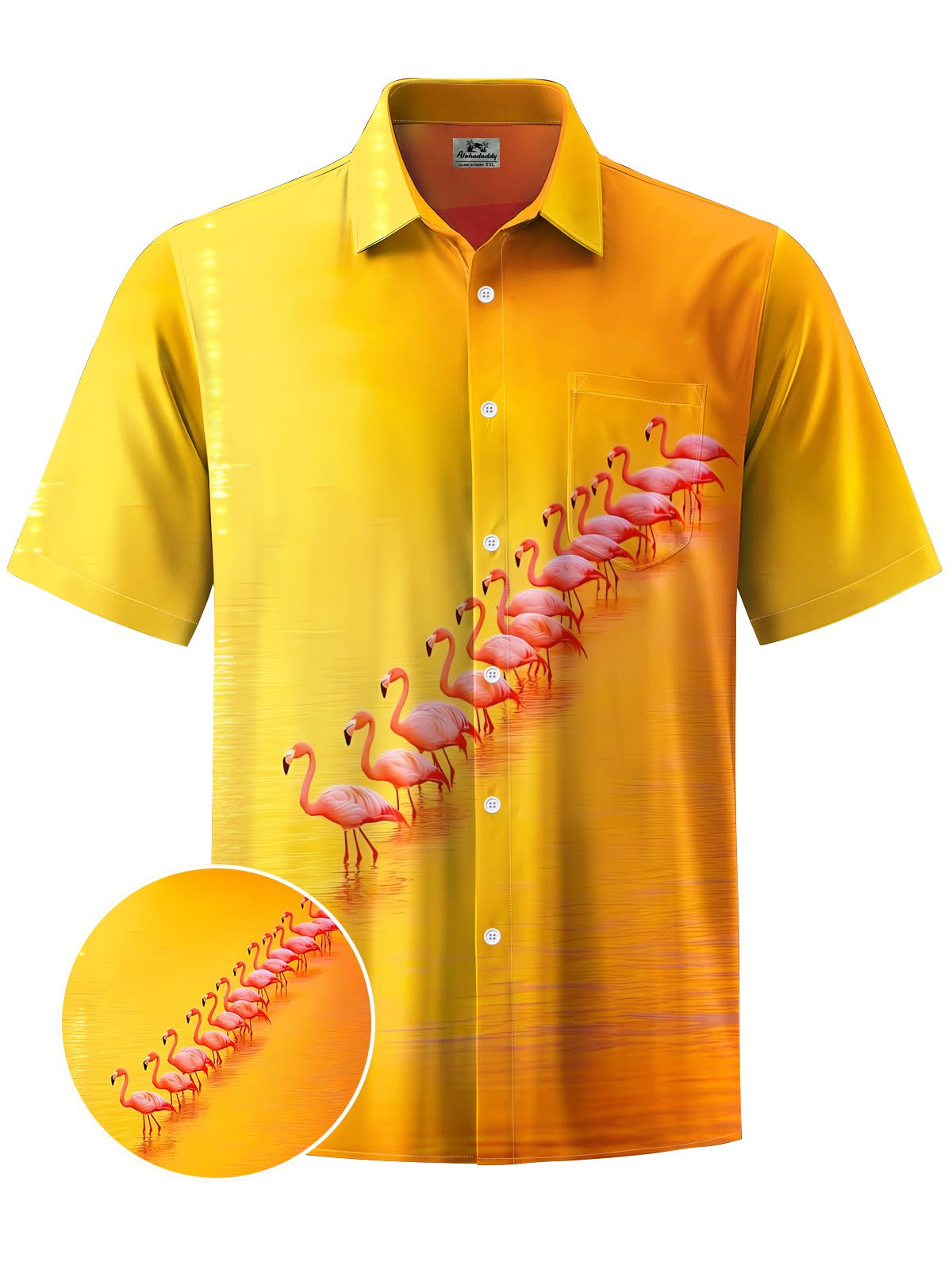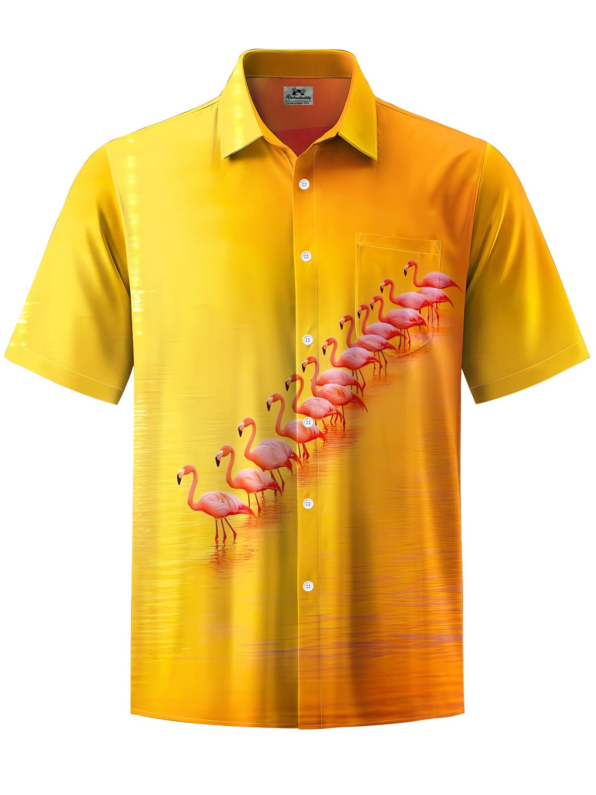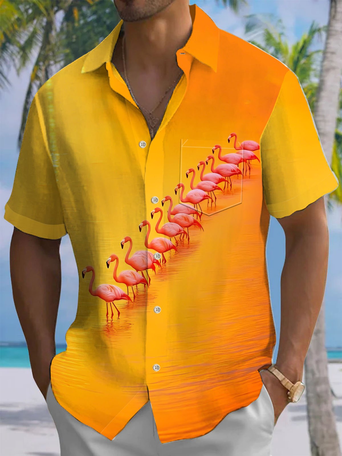 Alohadaddy® Hawaii Flamingo Seaside Print Chest Pocket Men's Short Sleeve Shirt Big & Tall