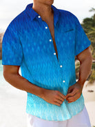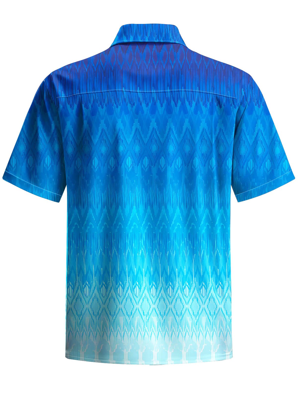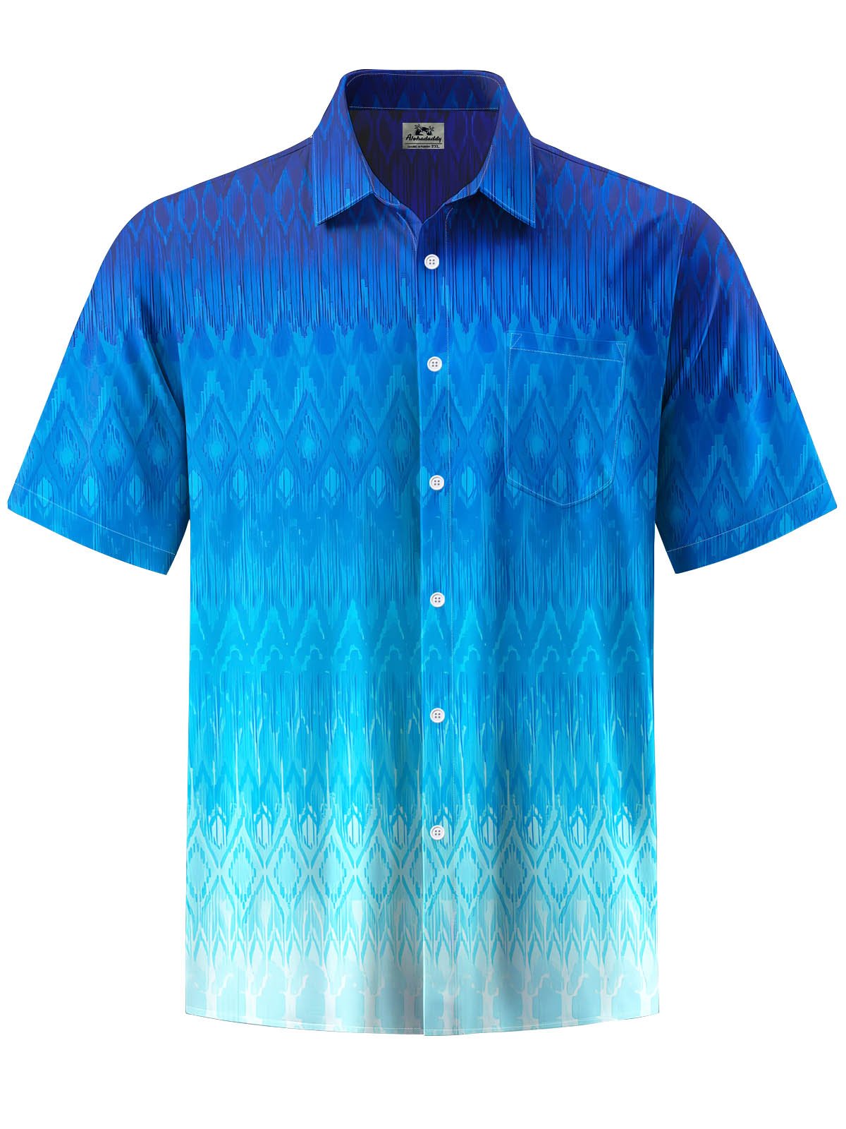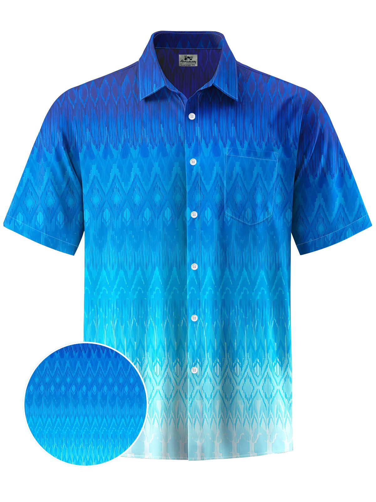 Alohadaddy® Hawaii Ombre Geometric Print Stretch Large Size Chest Pocket Men's Short Sleeve Shirt