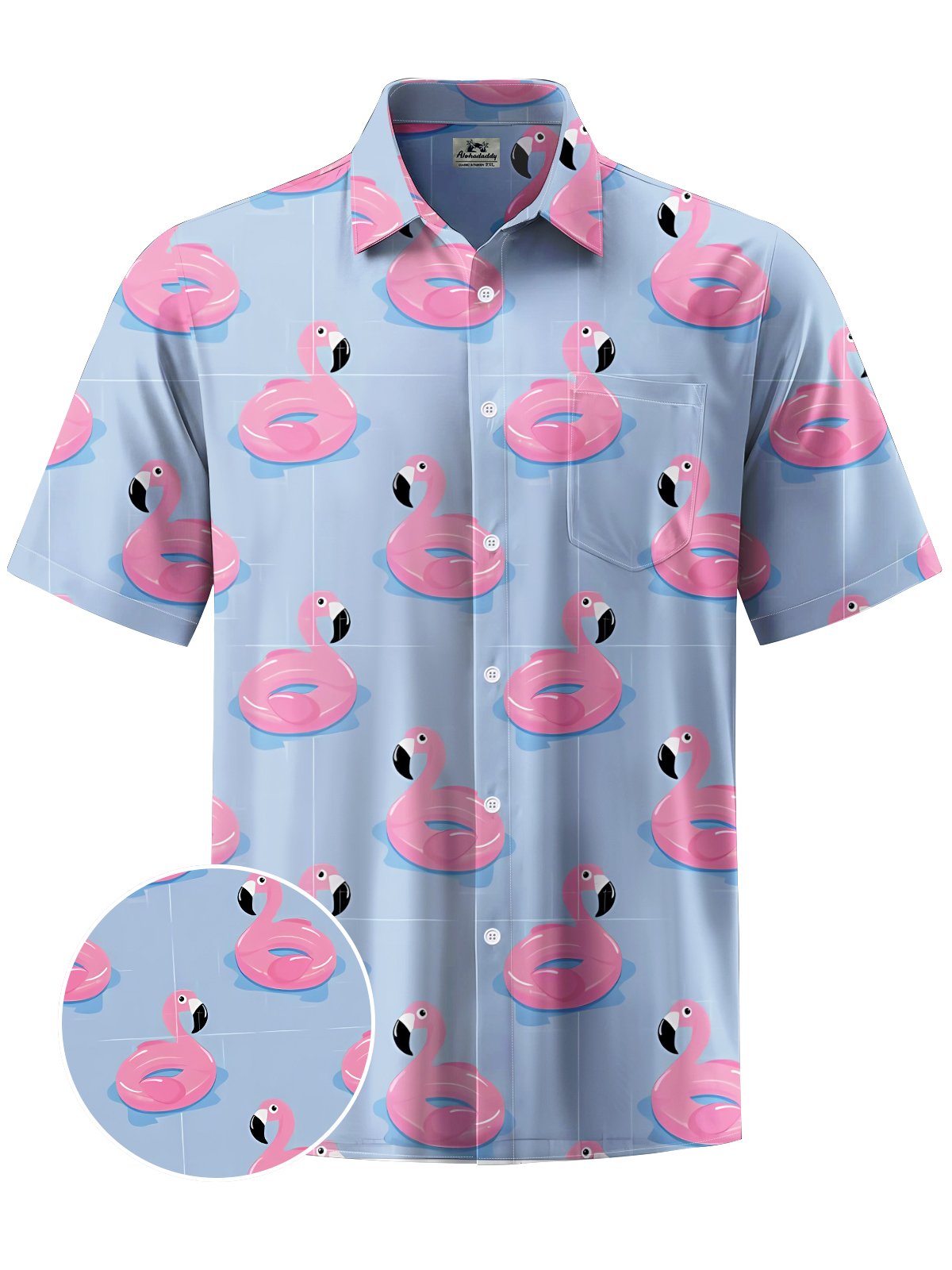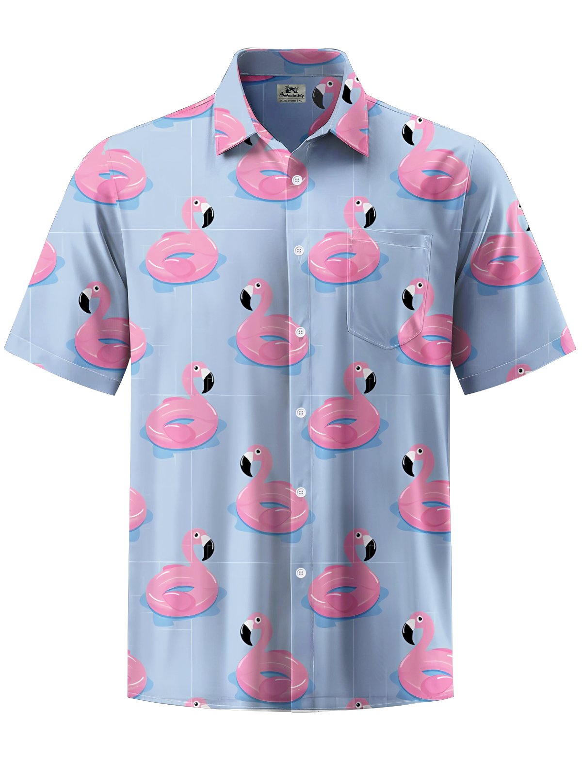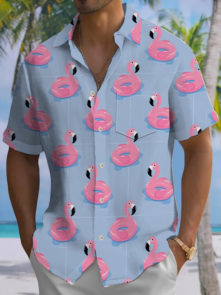 Alohadaddy® Hawaiian Flamingo Art Print Chest Pocket Mens Short Sleeve Shirt Big & Tall
