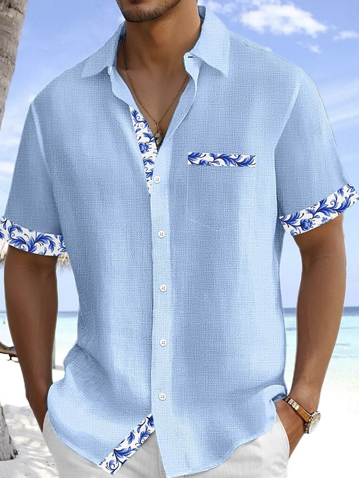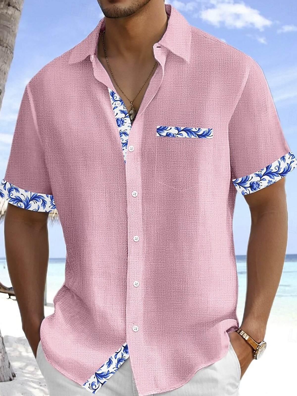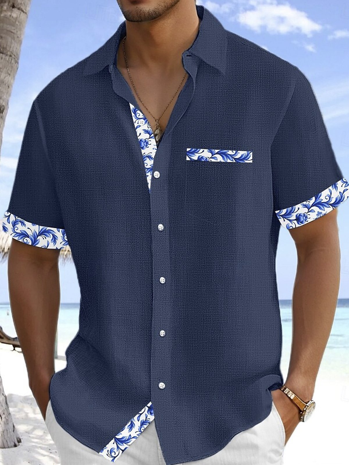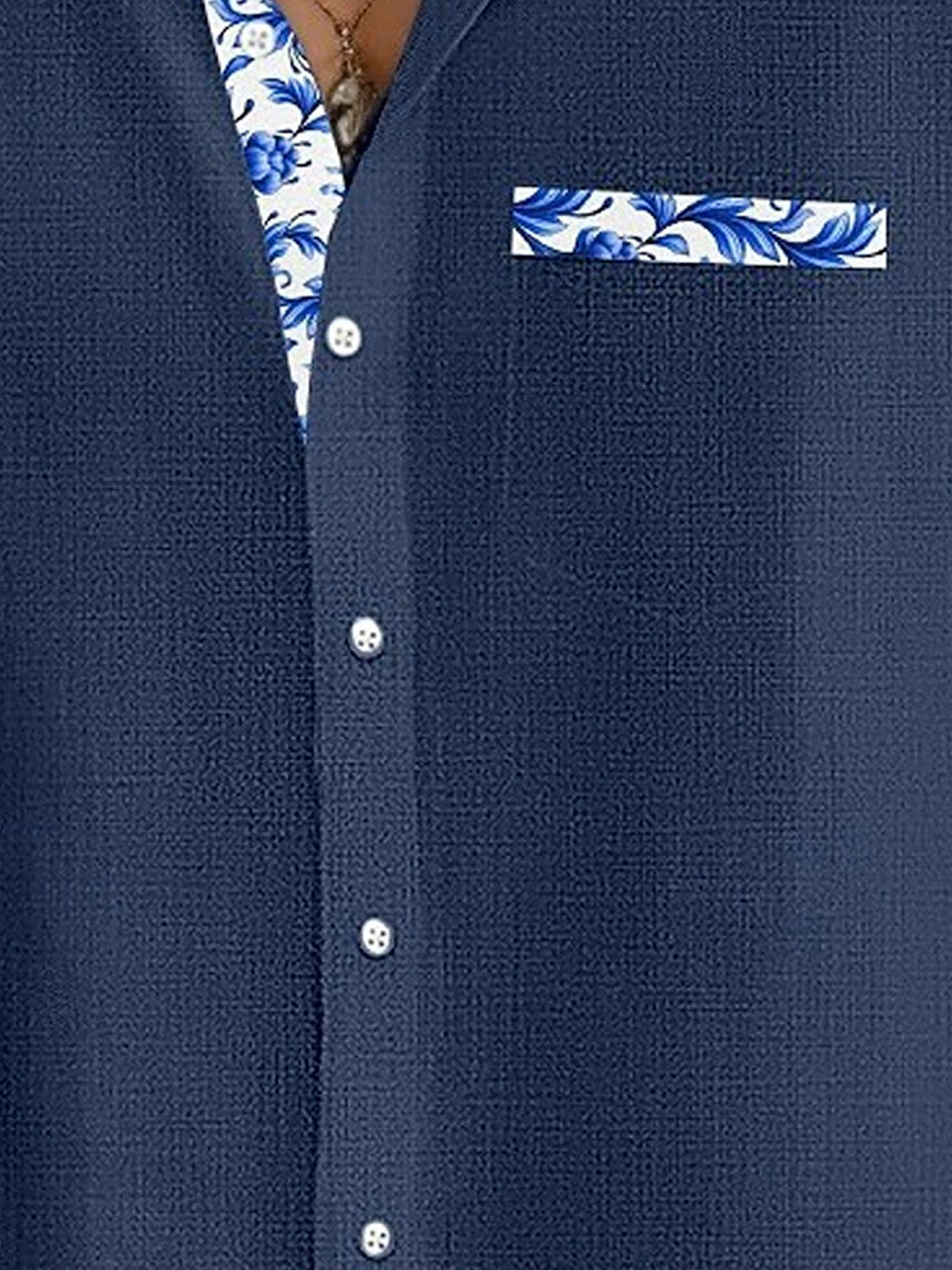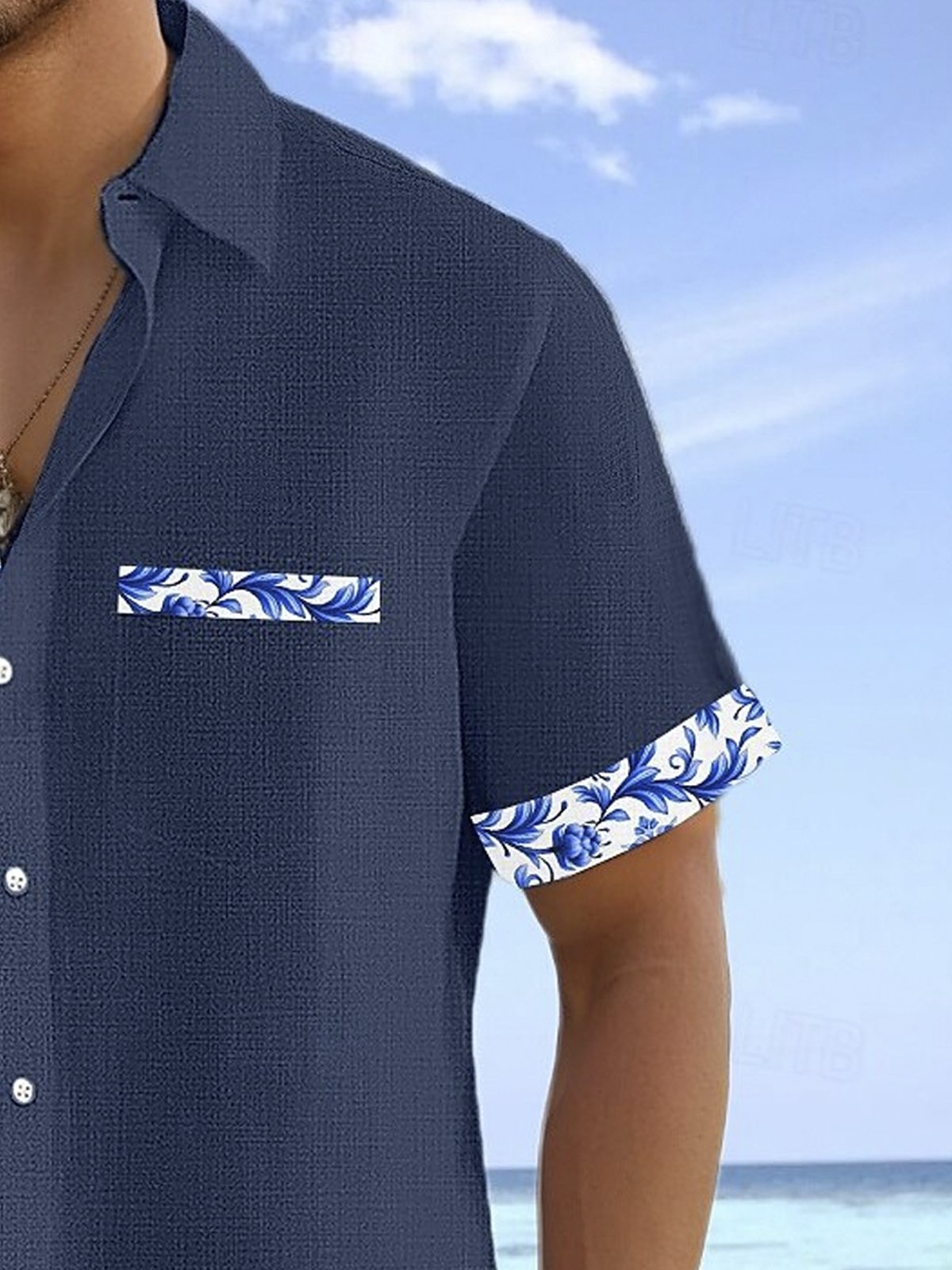 Alohadaddy® Hawaiian Floral Textured Print Men's Button Pocket Short Sleeve Shirt Big & Tall