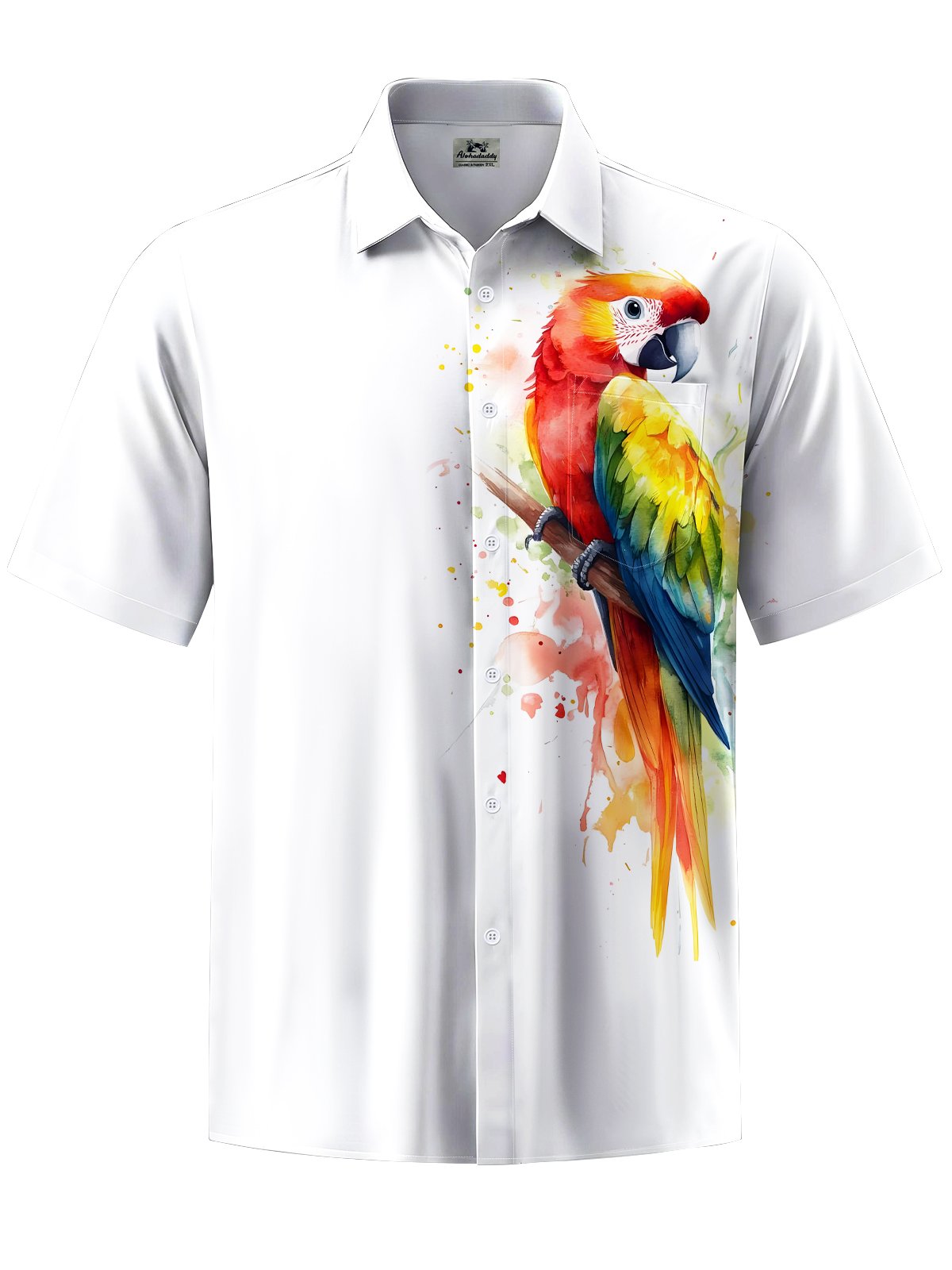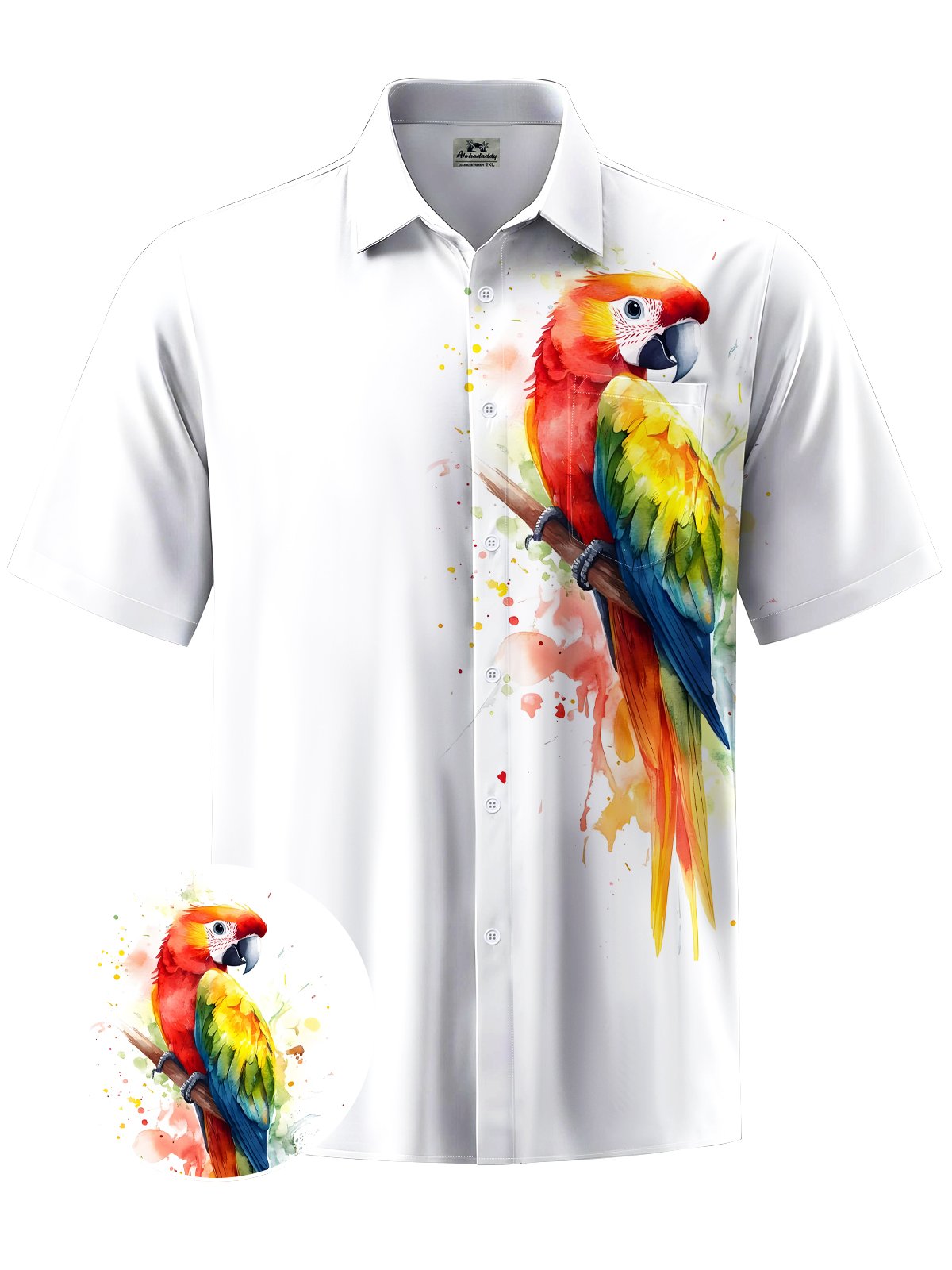 Alohadaddy® Hawaiian Tropical Gradient Parrot Print Men's Pocket Button Shirt