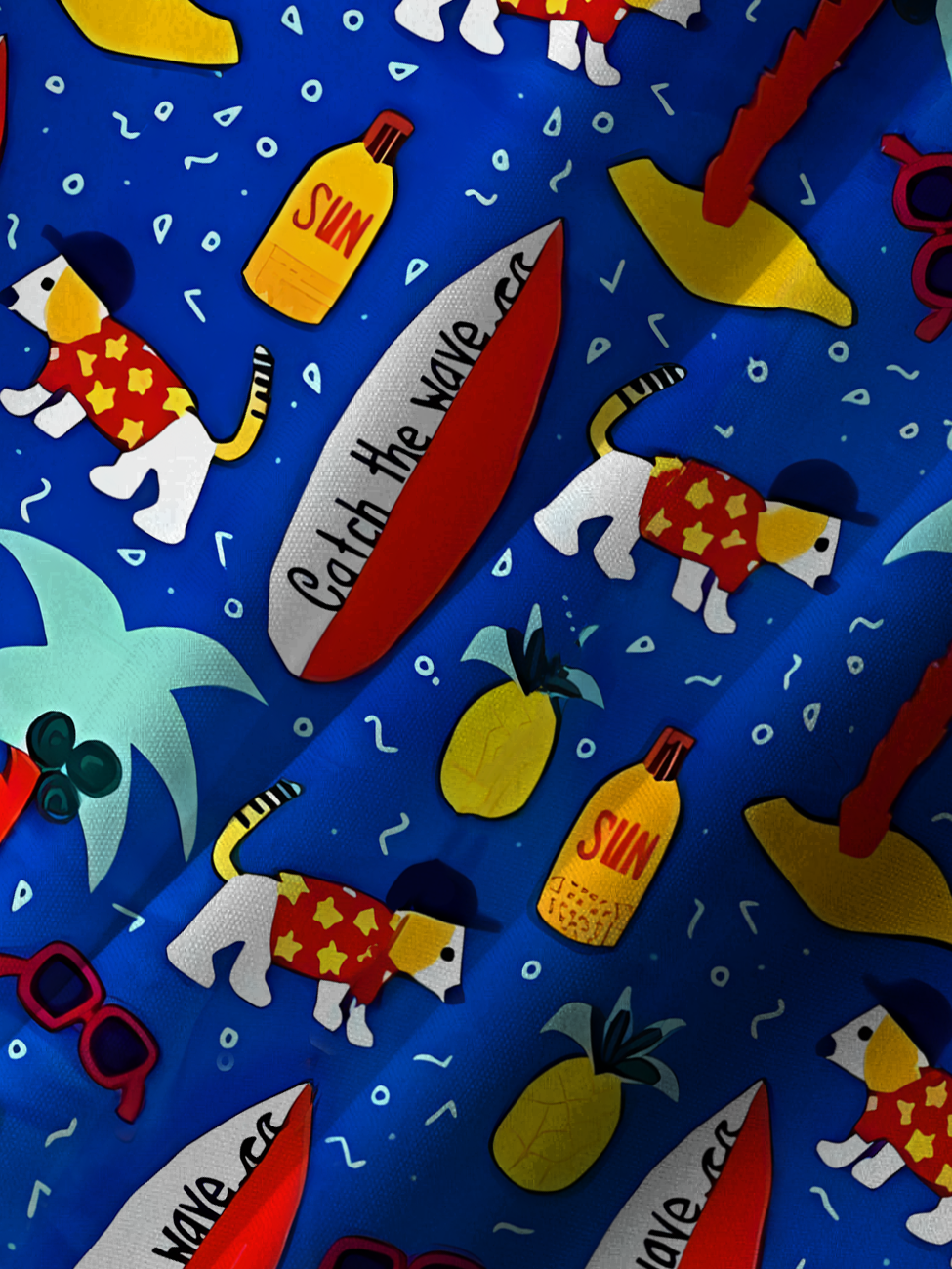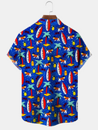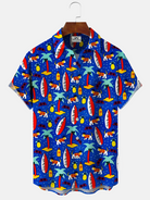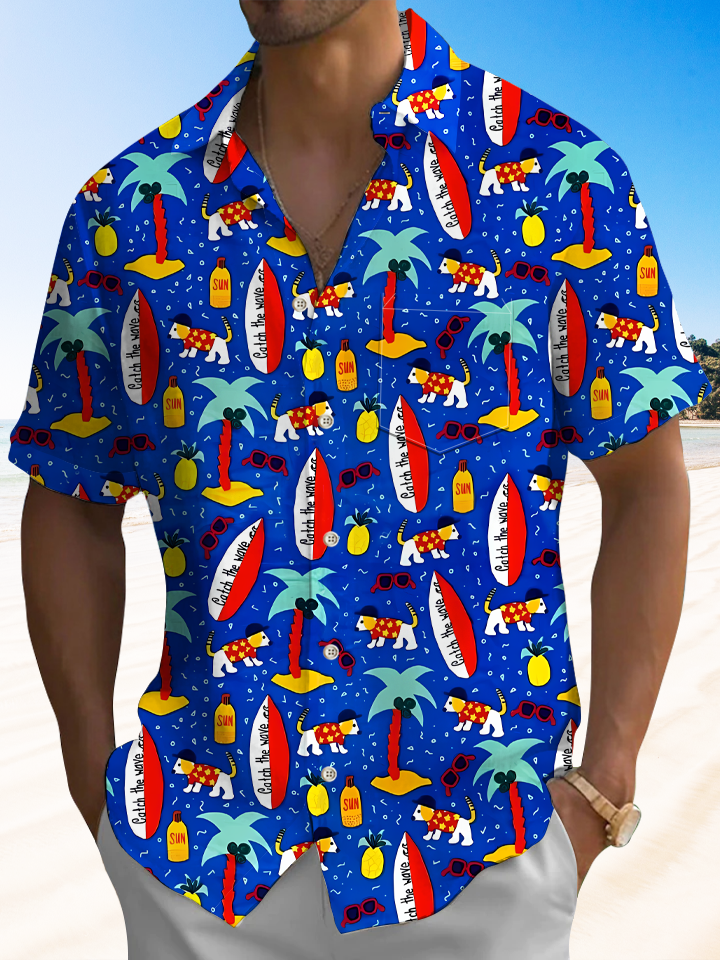 Alohadaddy Coconut Tree Surfboard Button Pocket Casual Short Sleeve Shirt