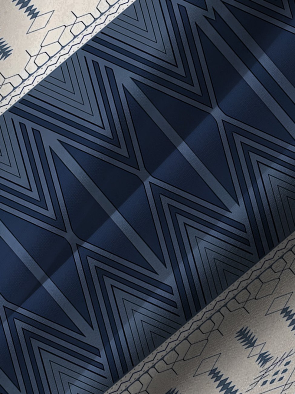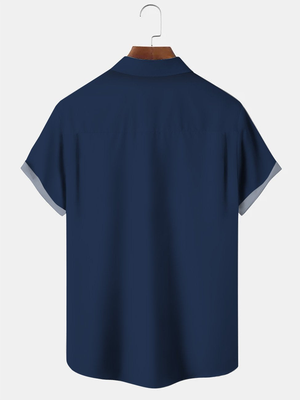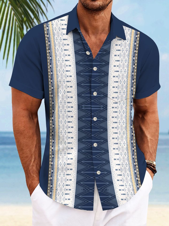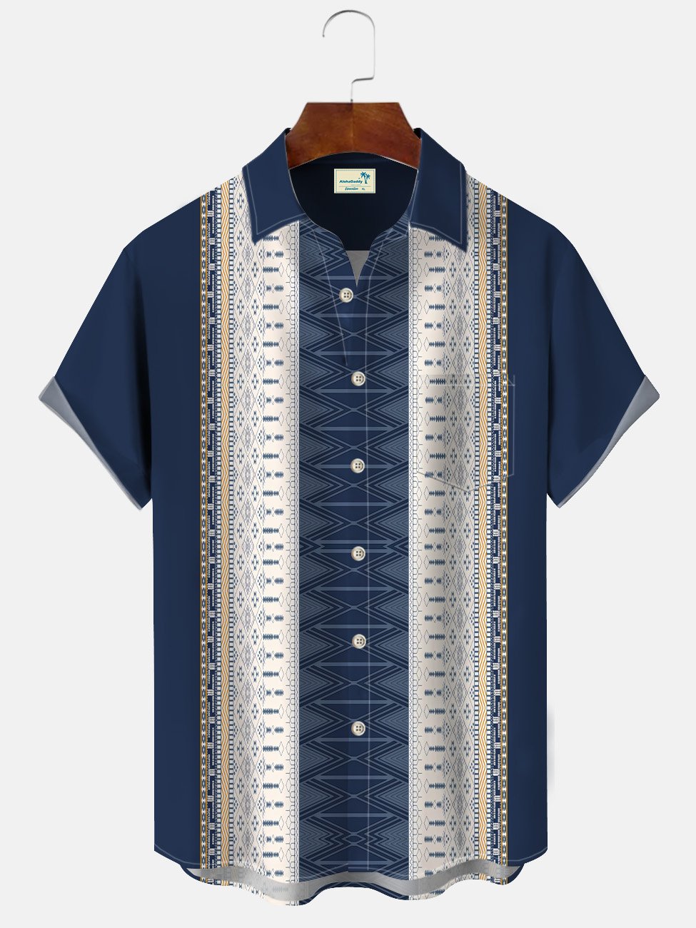 Alohadaddy Ethnic Geometric Pattern Button Pocket Casual 50S Bowling Commuting Short Sleeve Shirt