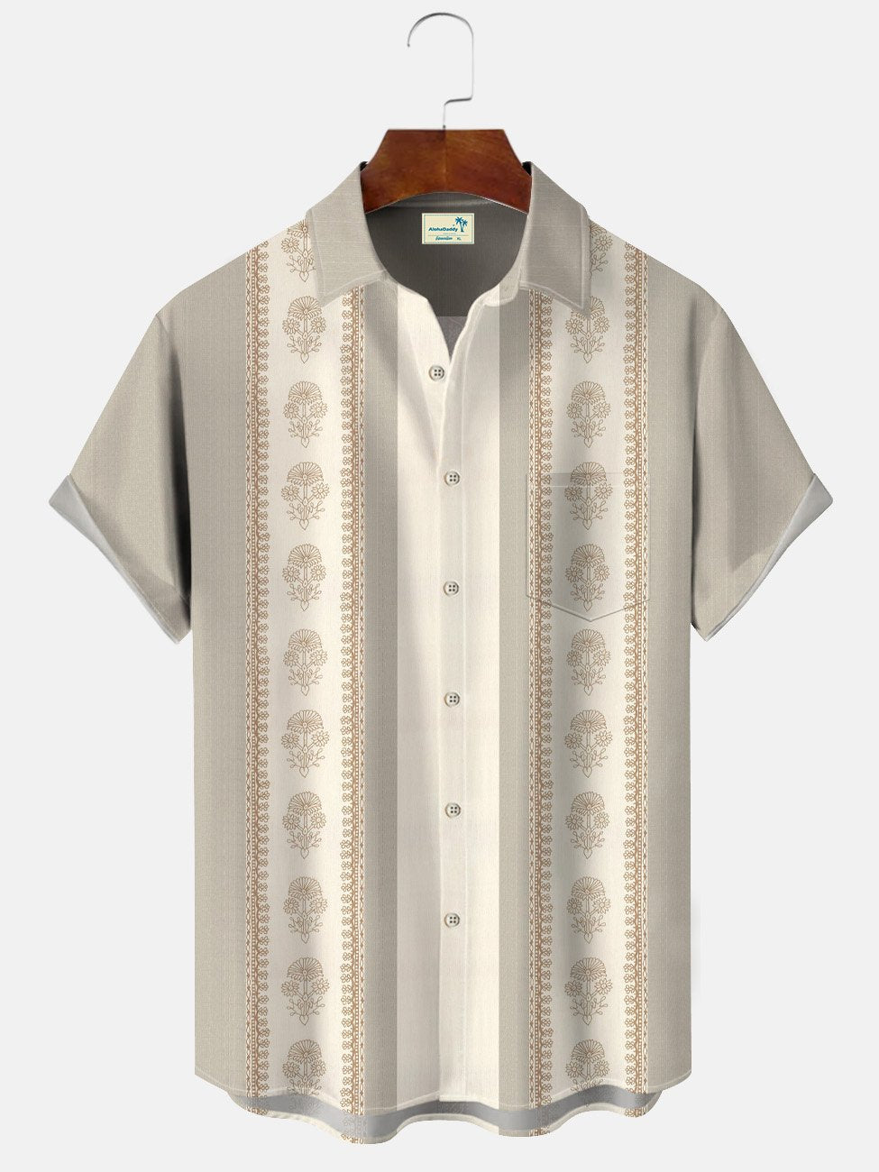 Alohadaddy Ethnic Style Flower Retro Men's Pocket Button 50S Bowling Commuting Casual Short Sleeve Shirt