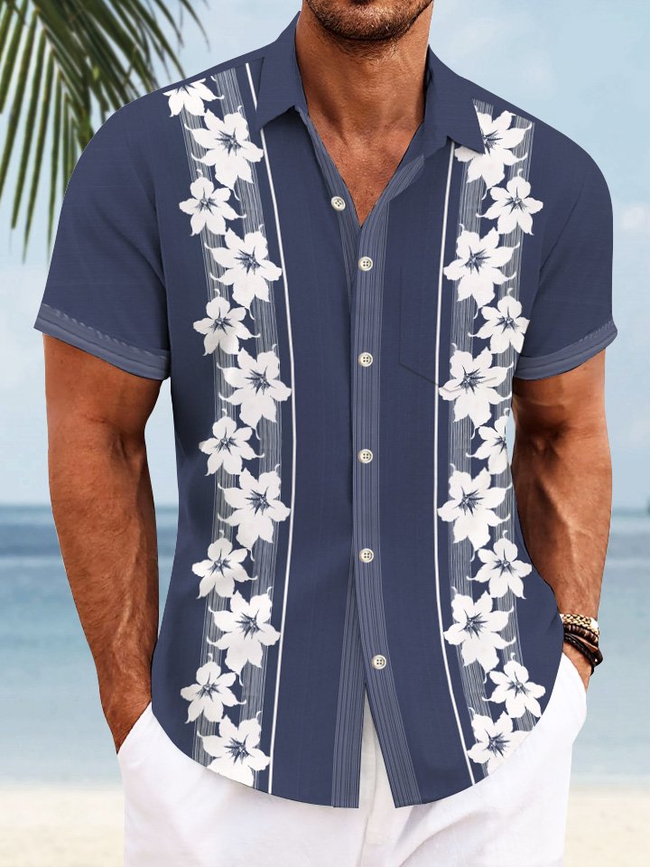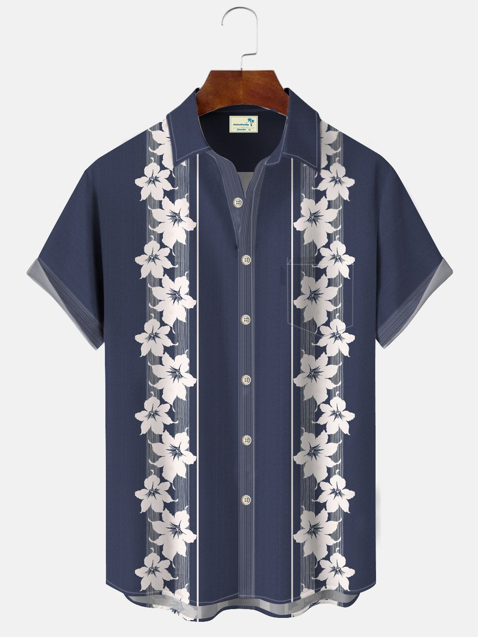 Alohadaddy Floral Stripe Mens Pocket Button Casual Short Sleeve Shirt