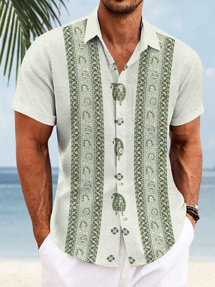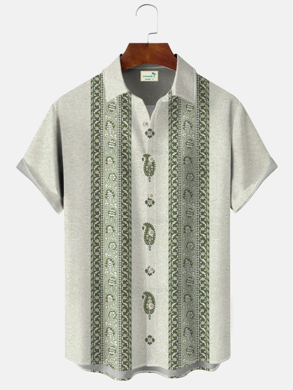 Alohadaddy Flower Ethnic Style Men Pocket Button 50S Bowling Commuter Casual Short Sleeve Shirt