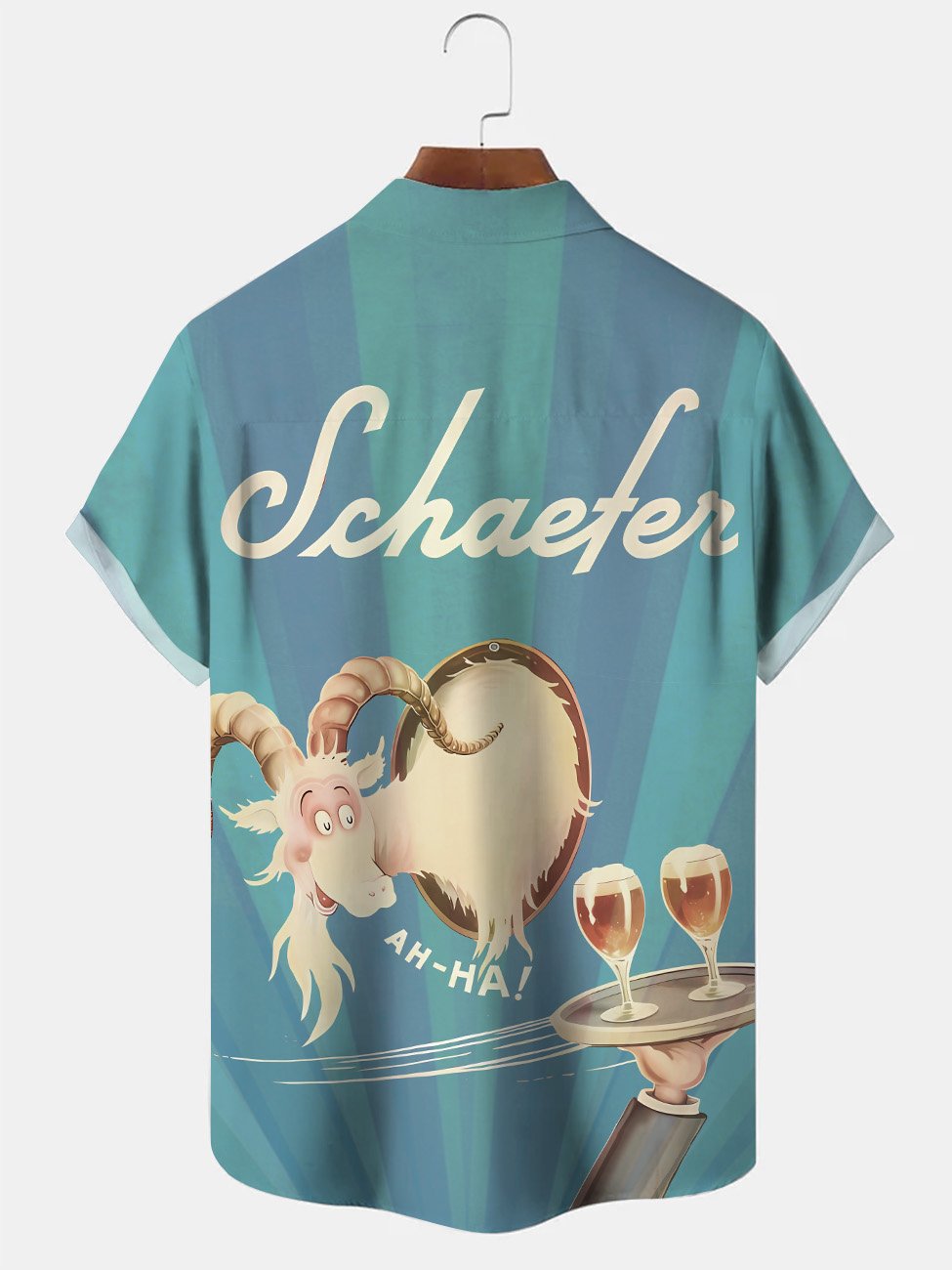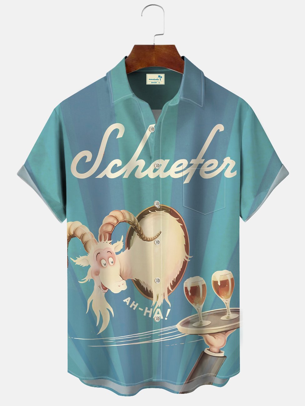 Alohadaddy Funny Animals Sheep Champagne Wine Glass Men Pocket Button Casual Short Sleeve Shirt