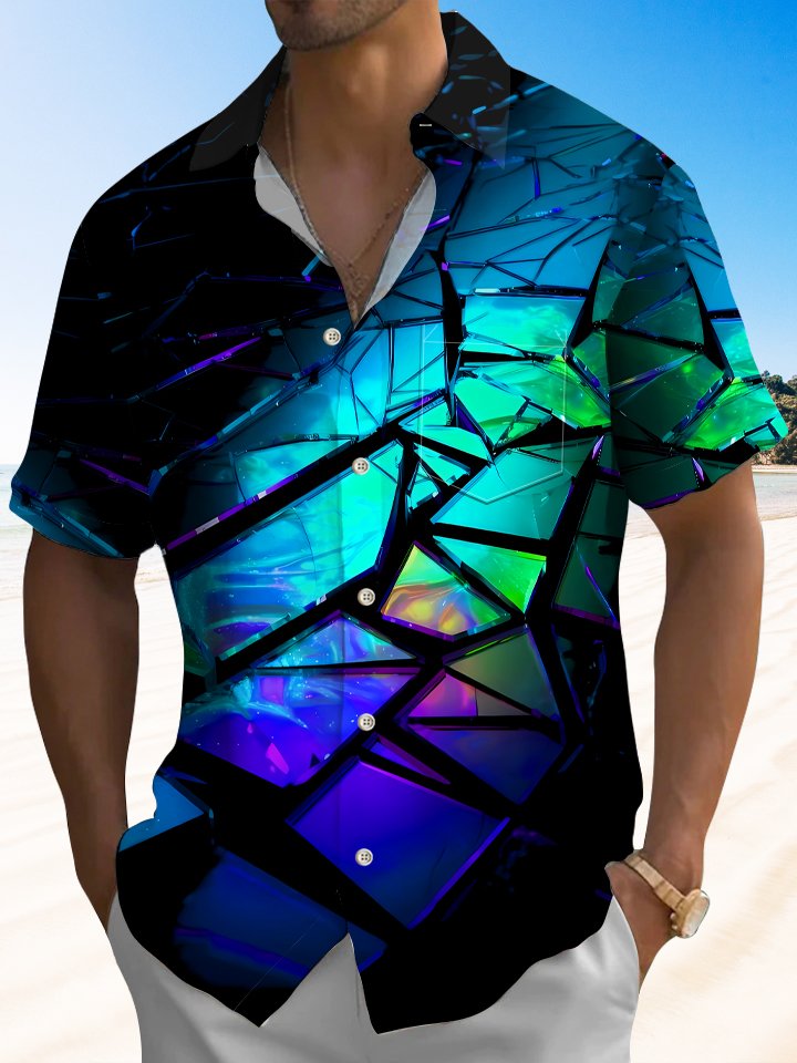 Alohadaddy Geometric Pattern Button Pocket Casual Short Sleeve Shirt
