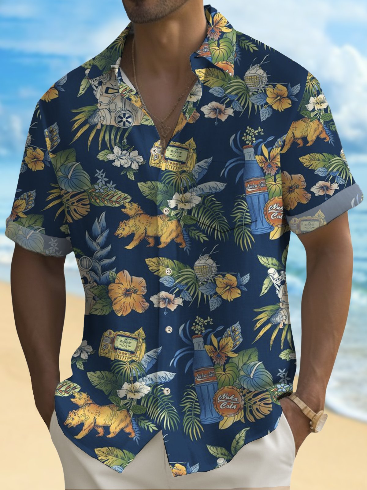 Alohadaddy Hawaiian Floral Print Men's Button Pocket Shirt