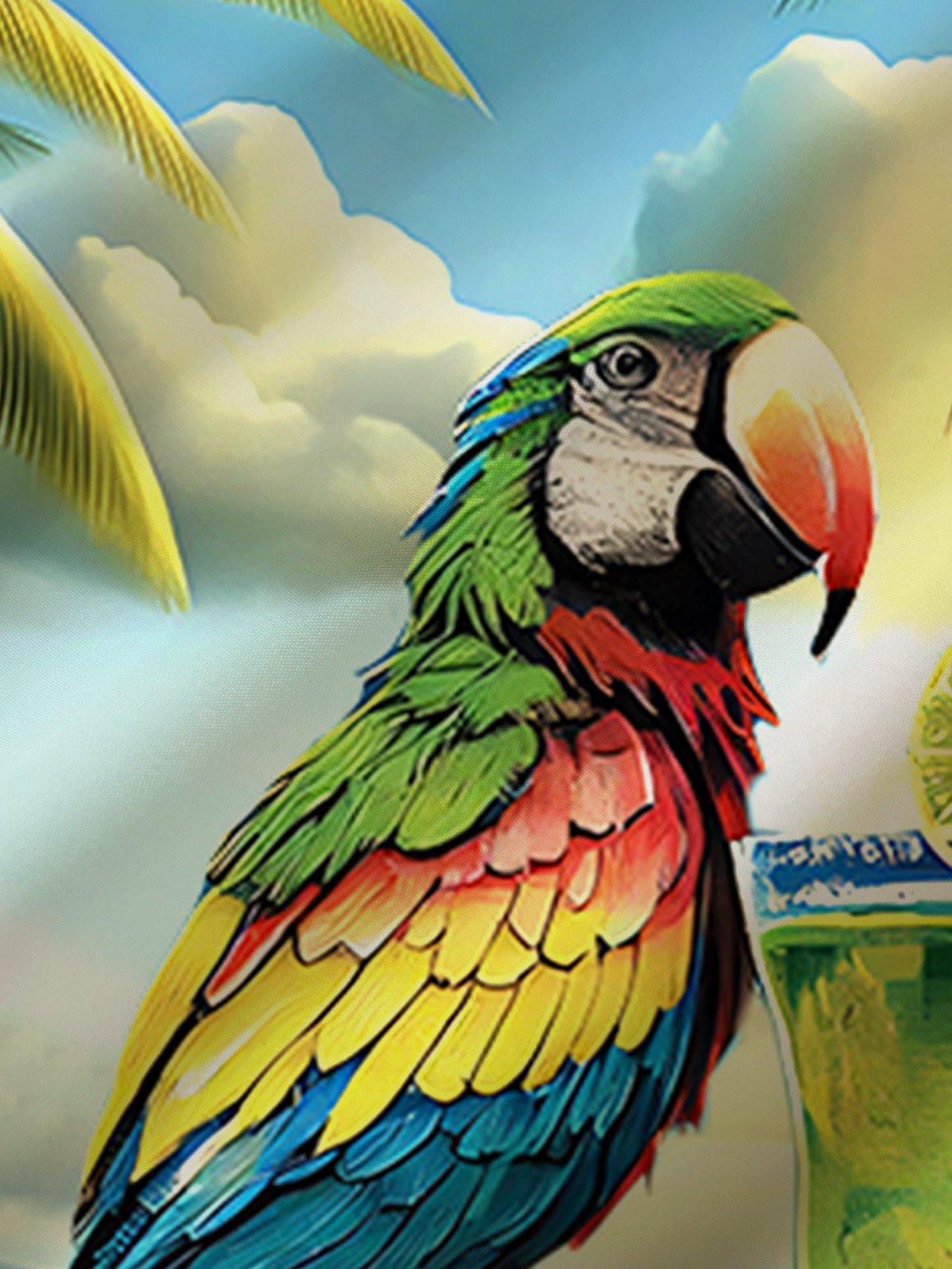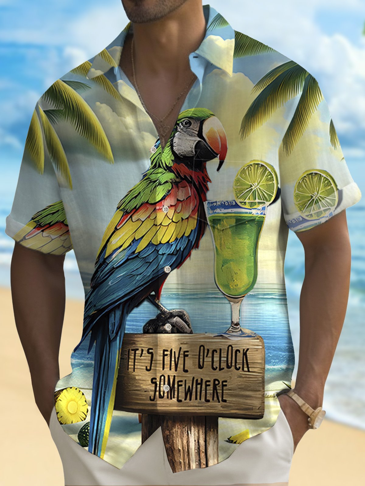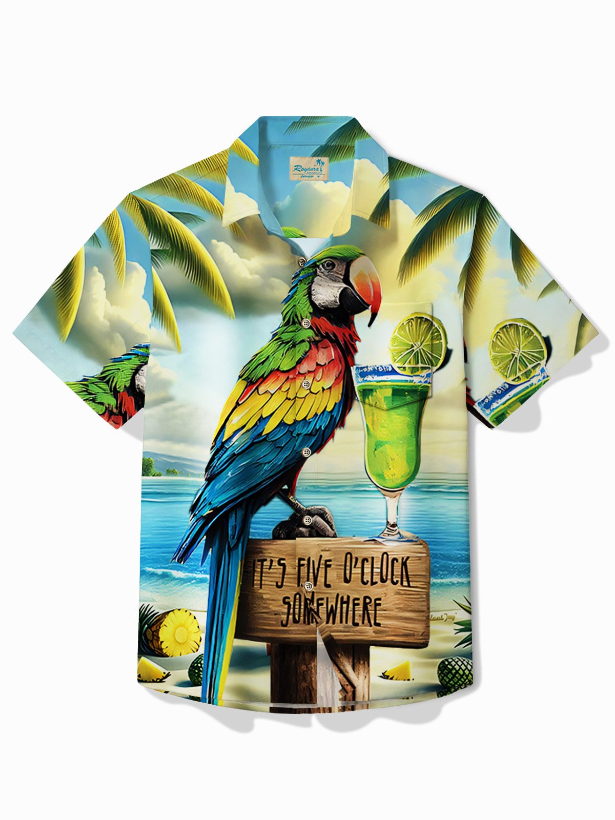 Alohadaddy Hawaiian Parrot Coconut Tree Print Men's Button Pocket Short Sleeve Shirt