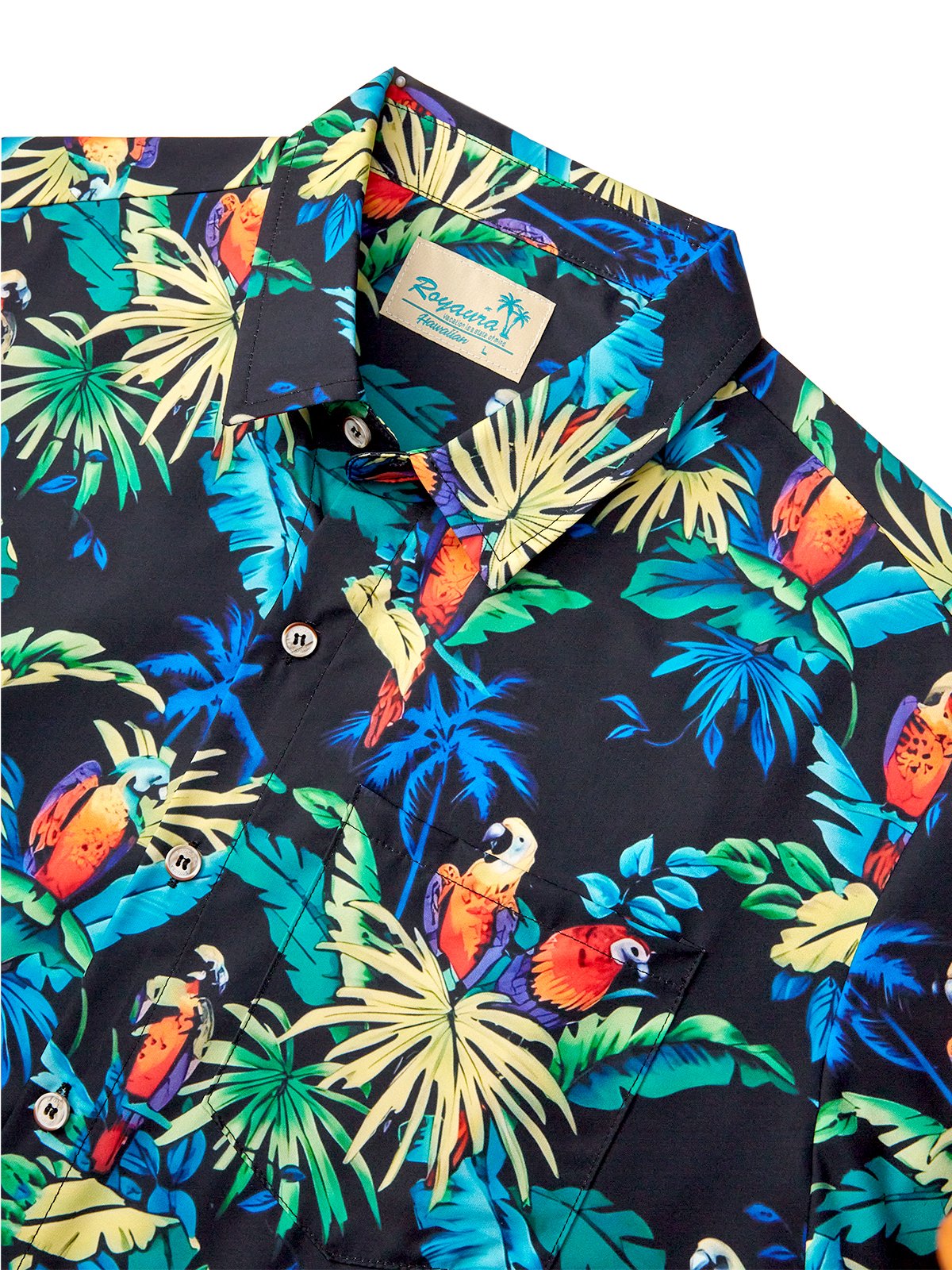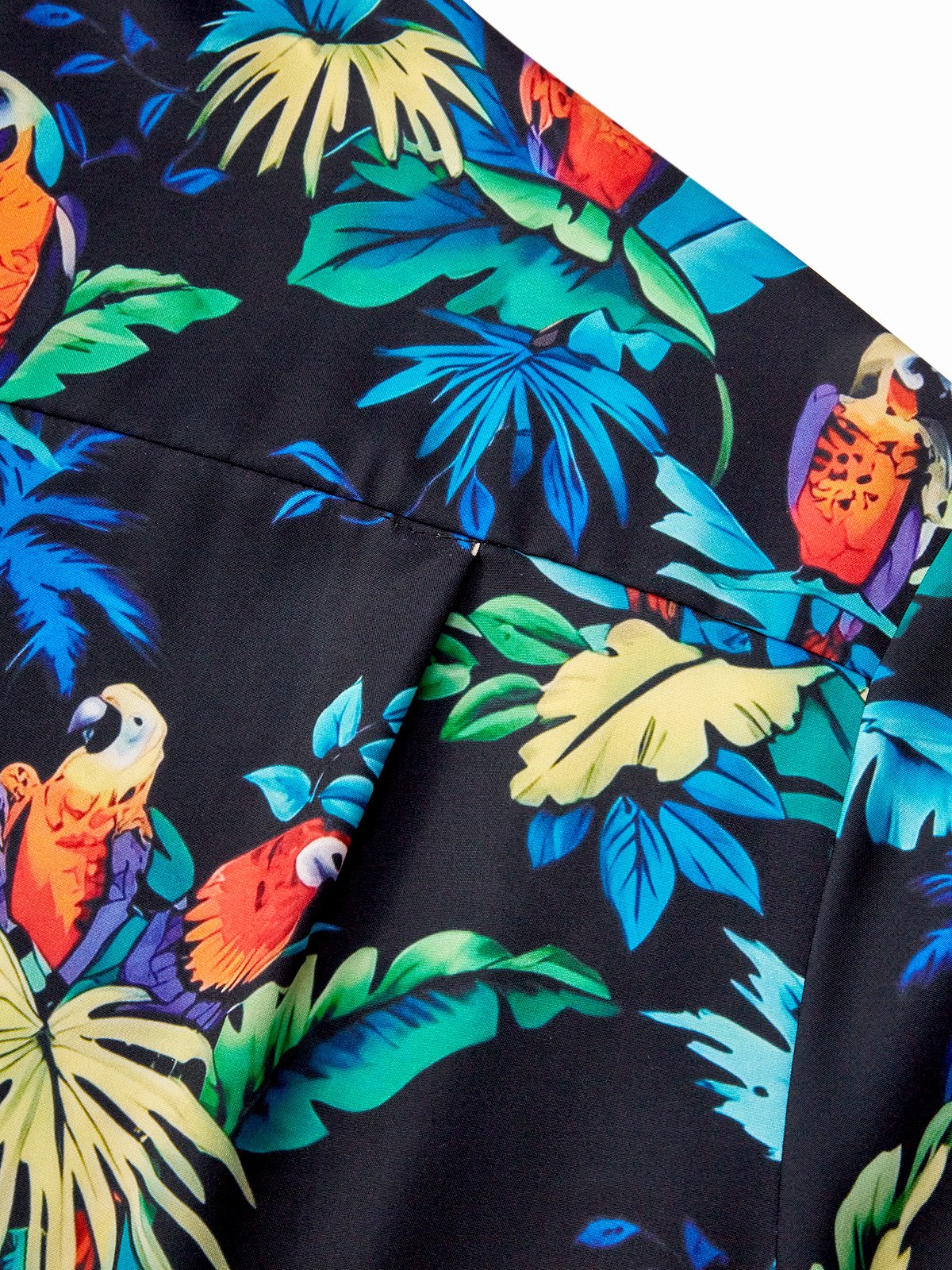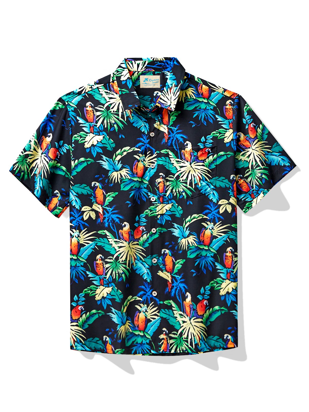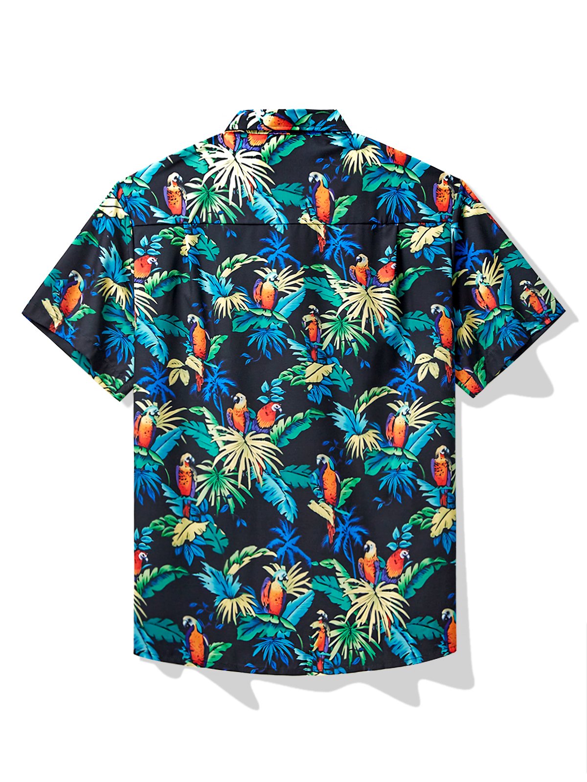 Alohadaddy Hawaiian Plant Leaf Parrot Printed Men's Button Pocket Short Sleeve Shirt