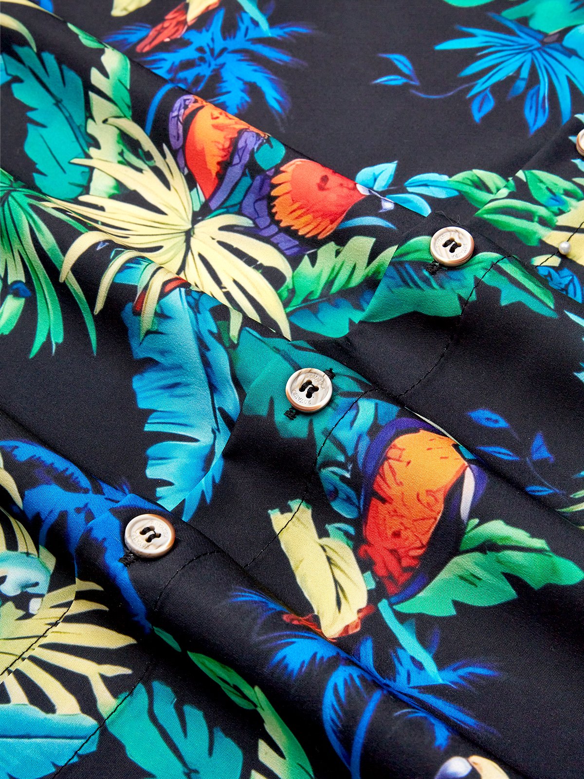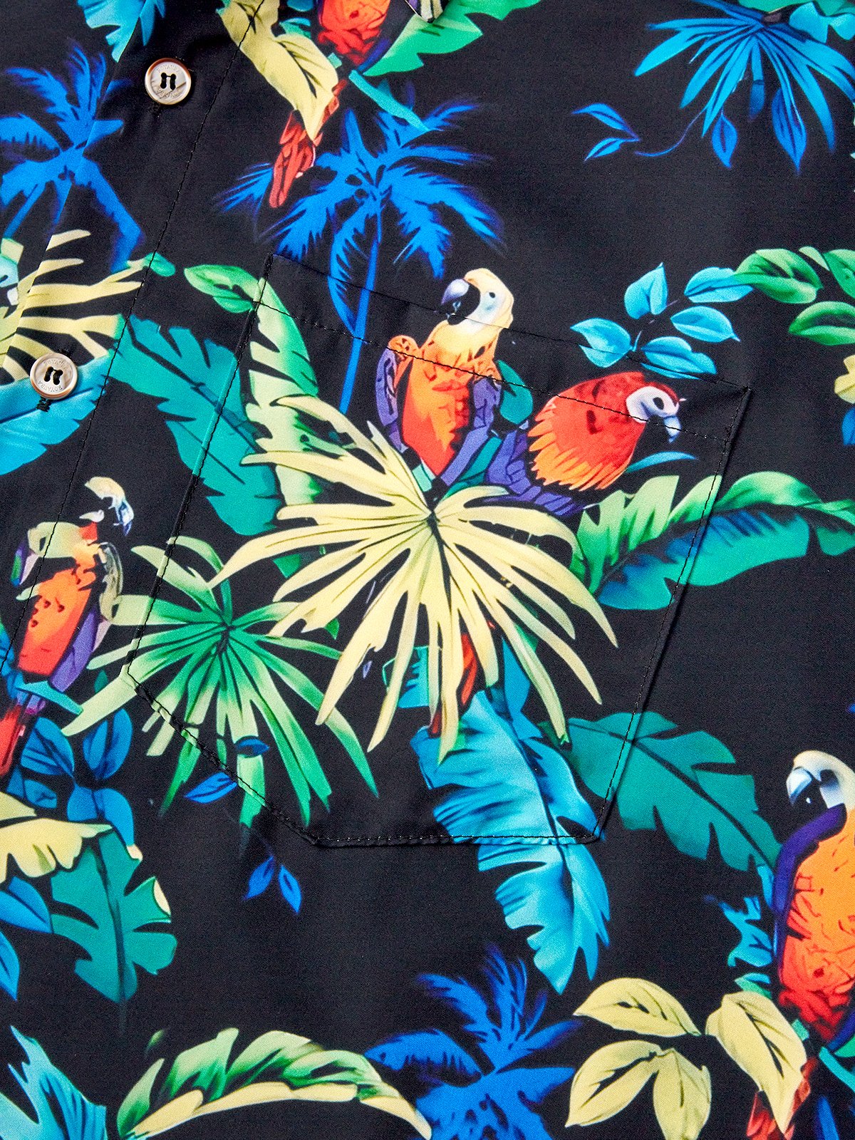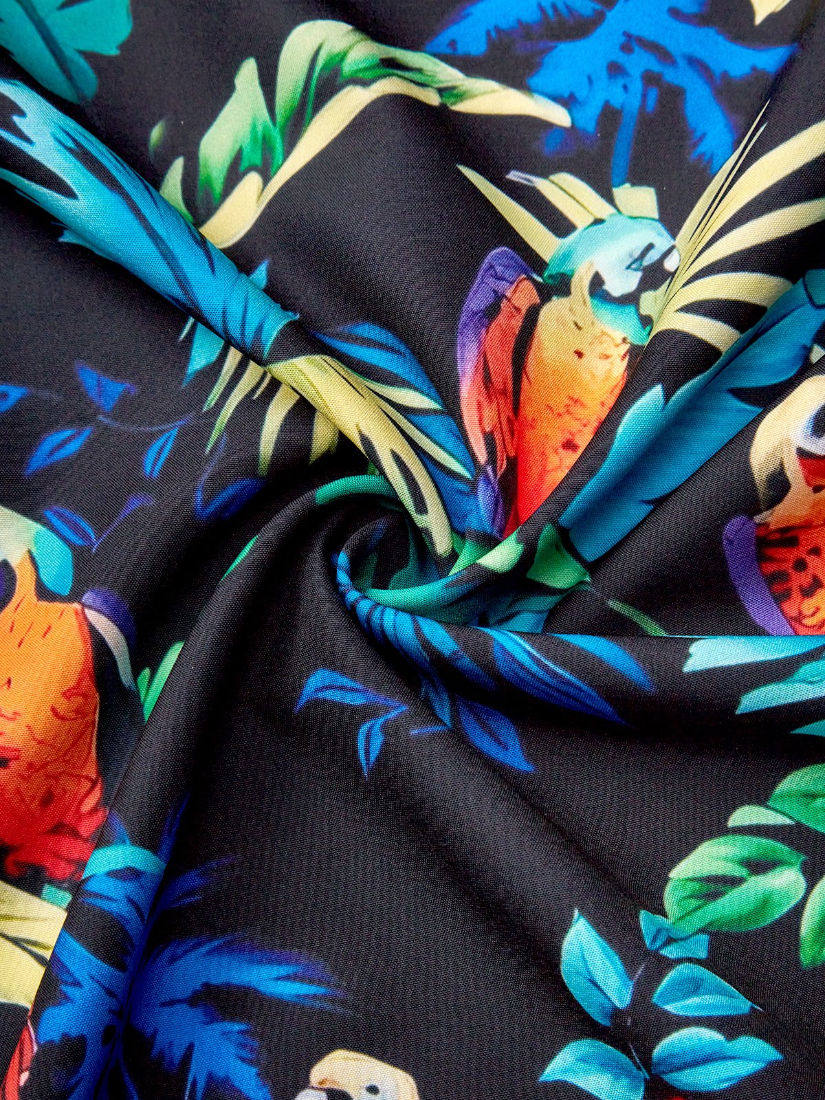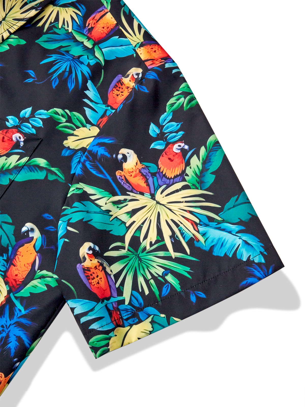 Alohadaddy Hawaiian Plant Leaf Parrot Printed Men's Button Pocket Short Sleeve Shirt