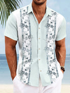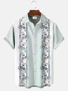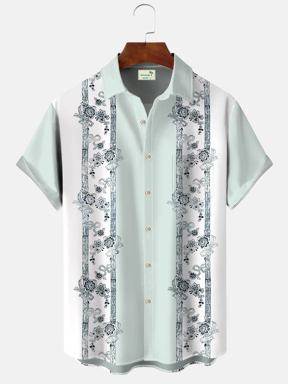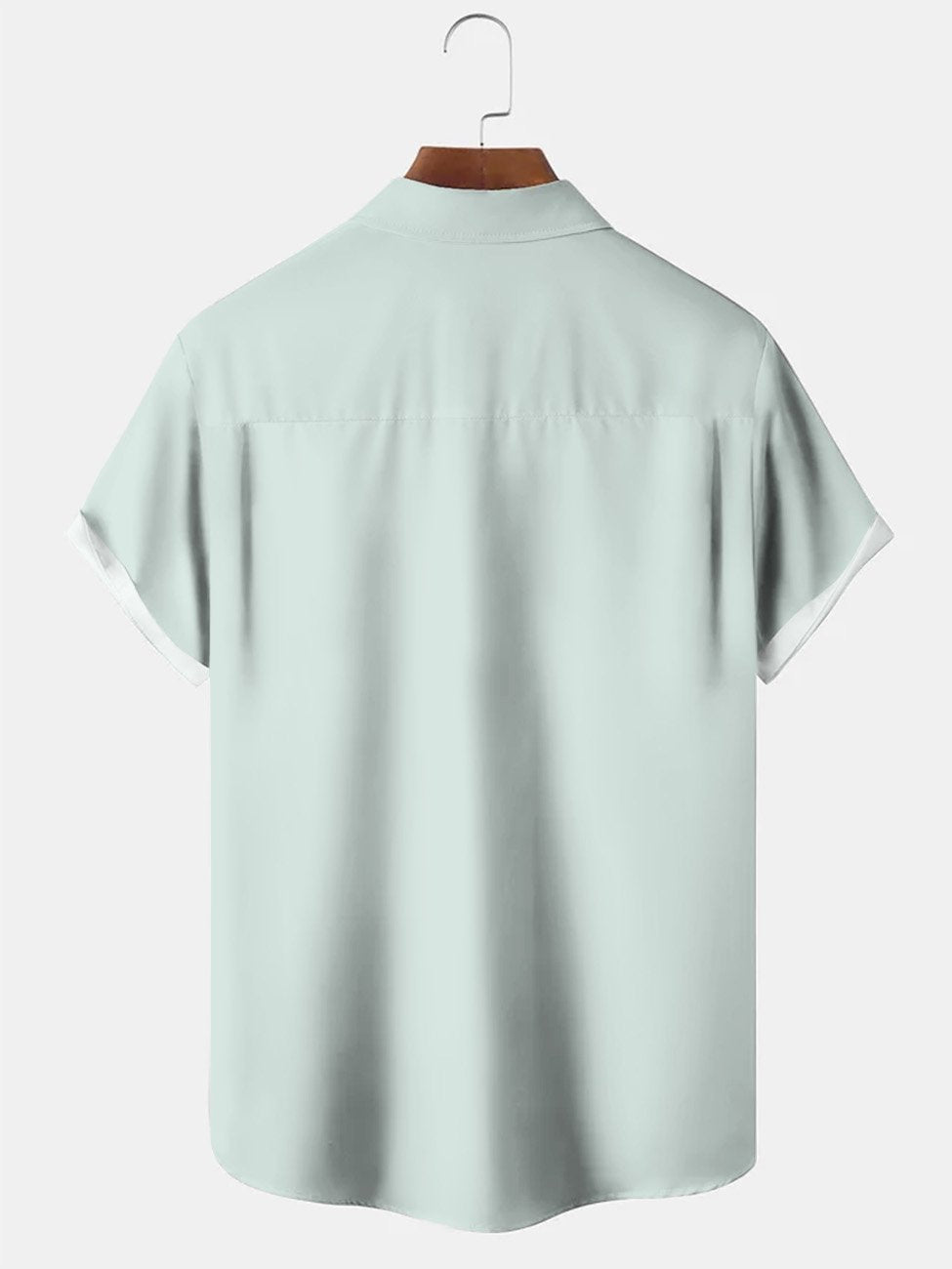 Alohadaddy Plant Leaves Pocket Buttons Casual 50S Bowling Commuter Short Sleeve Shirt