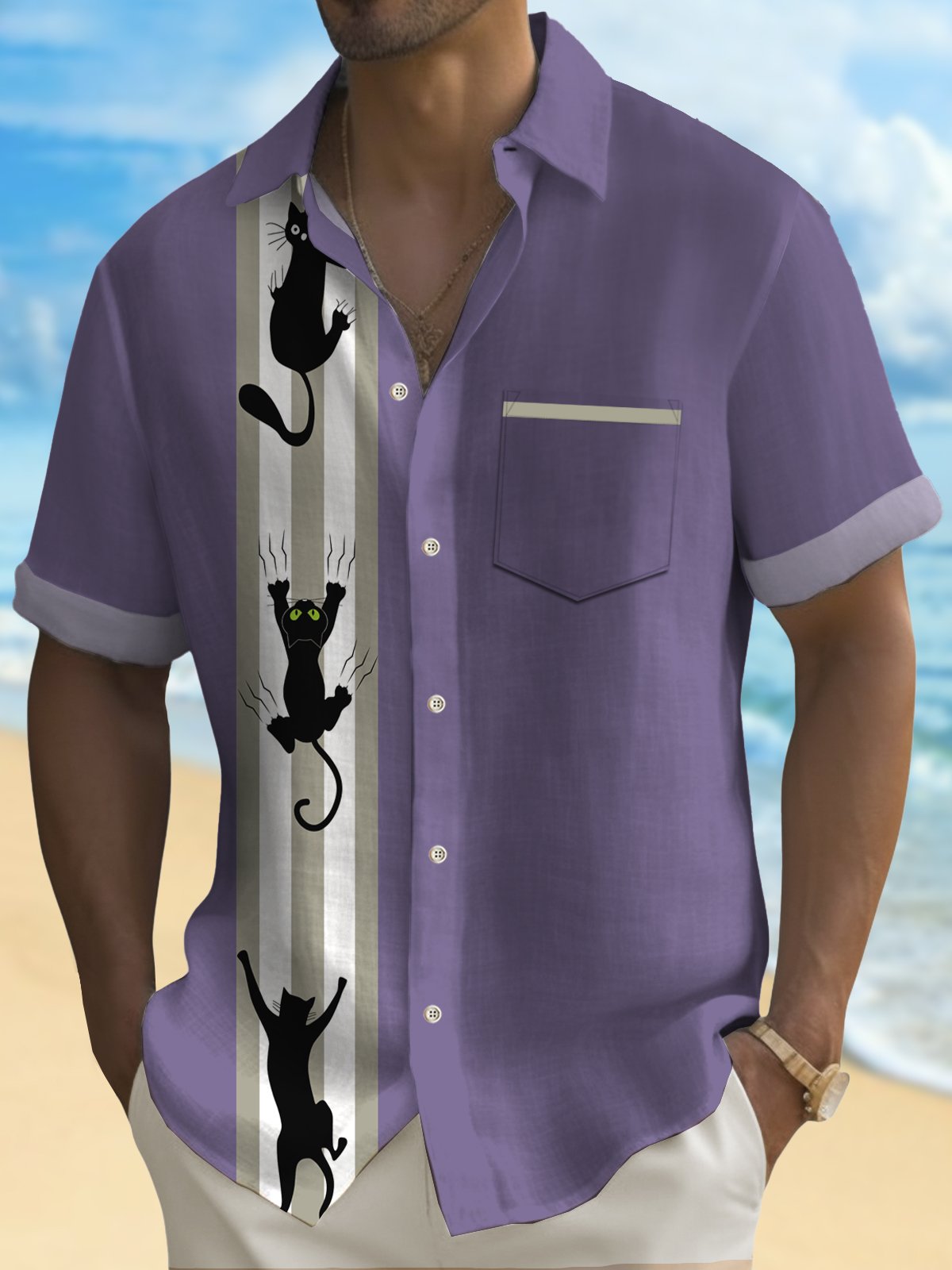 Alohadaddy Print Beach Men's Hawaiian Oversized Shirt with Pockets