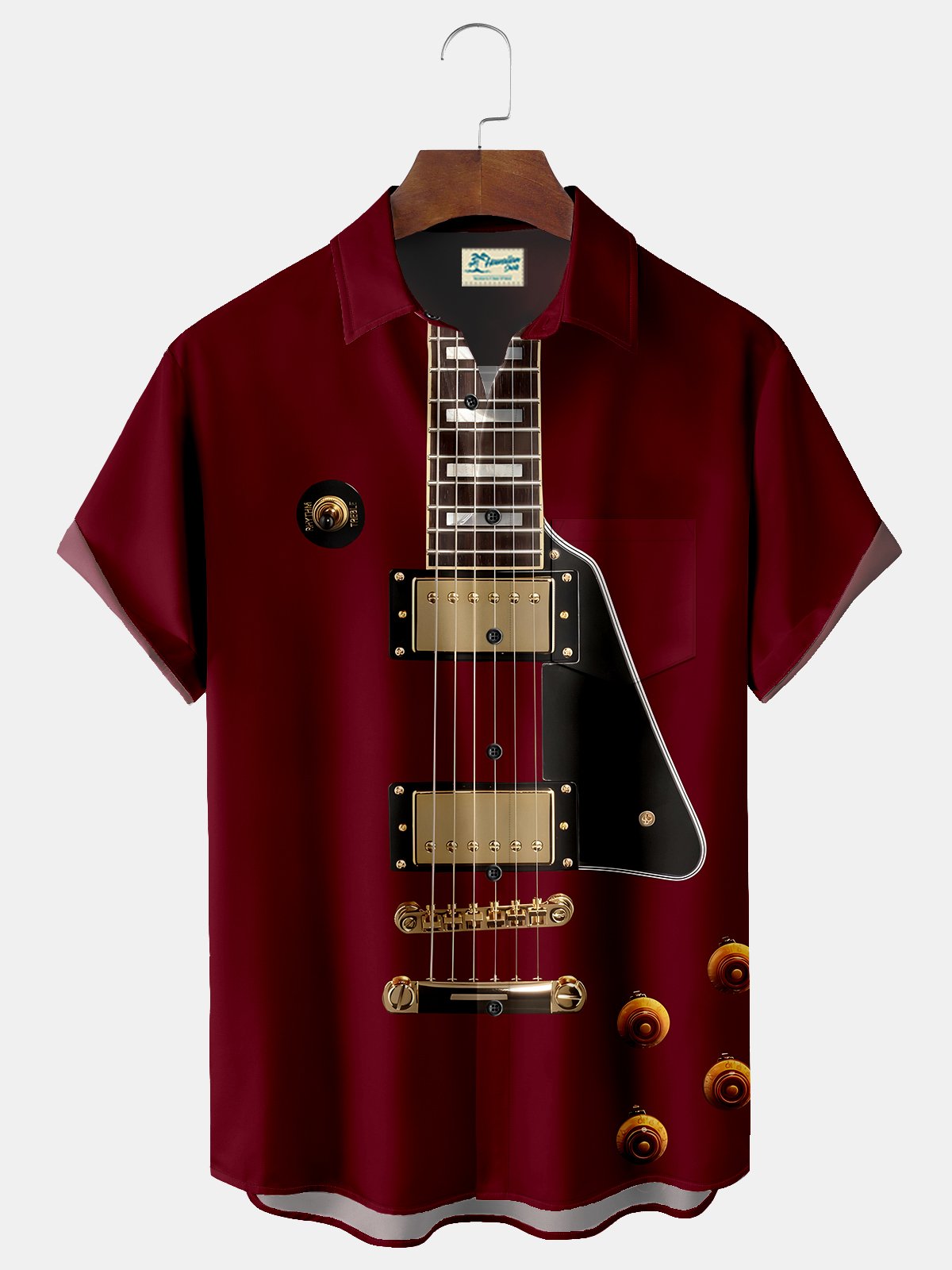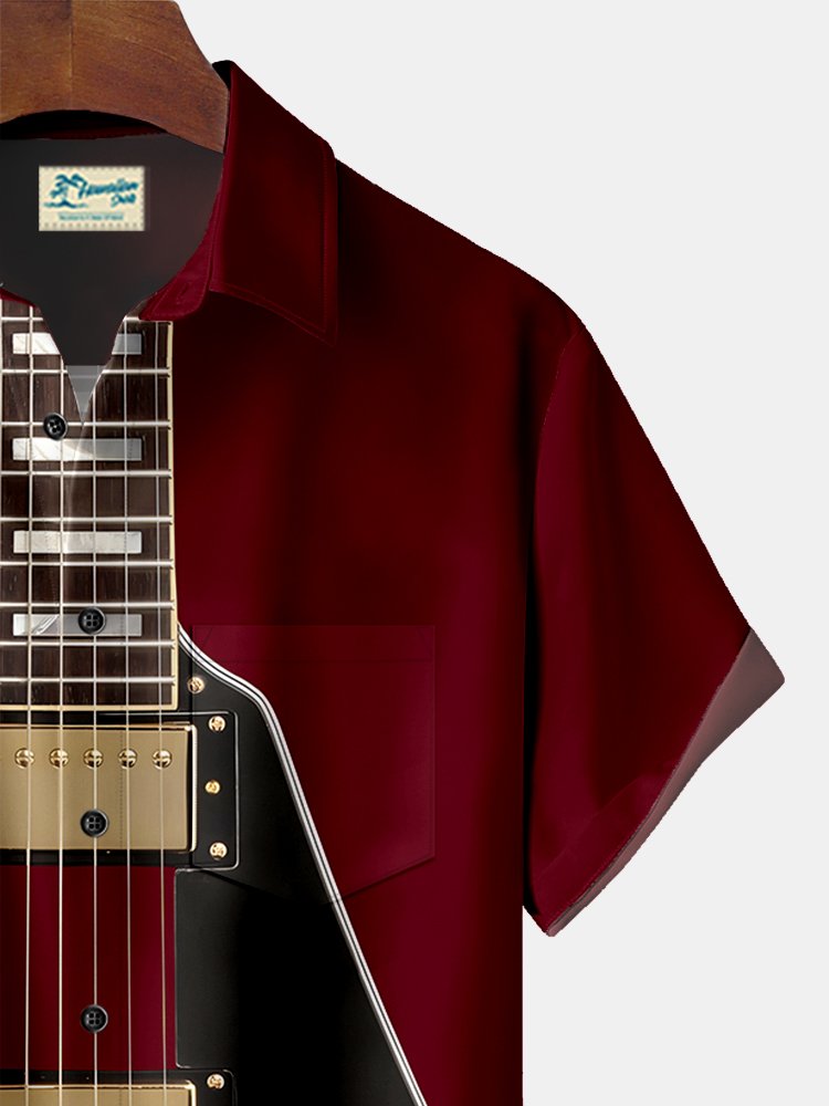 Alohadaddy Printed Beach Music Guitar Men's Hawaiian Oversized Pocket Shirt