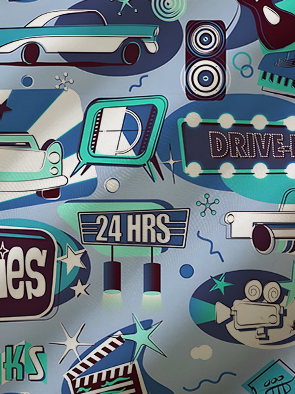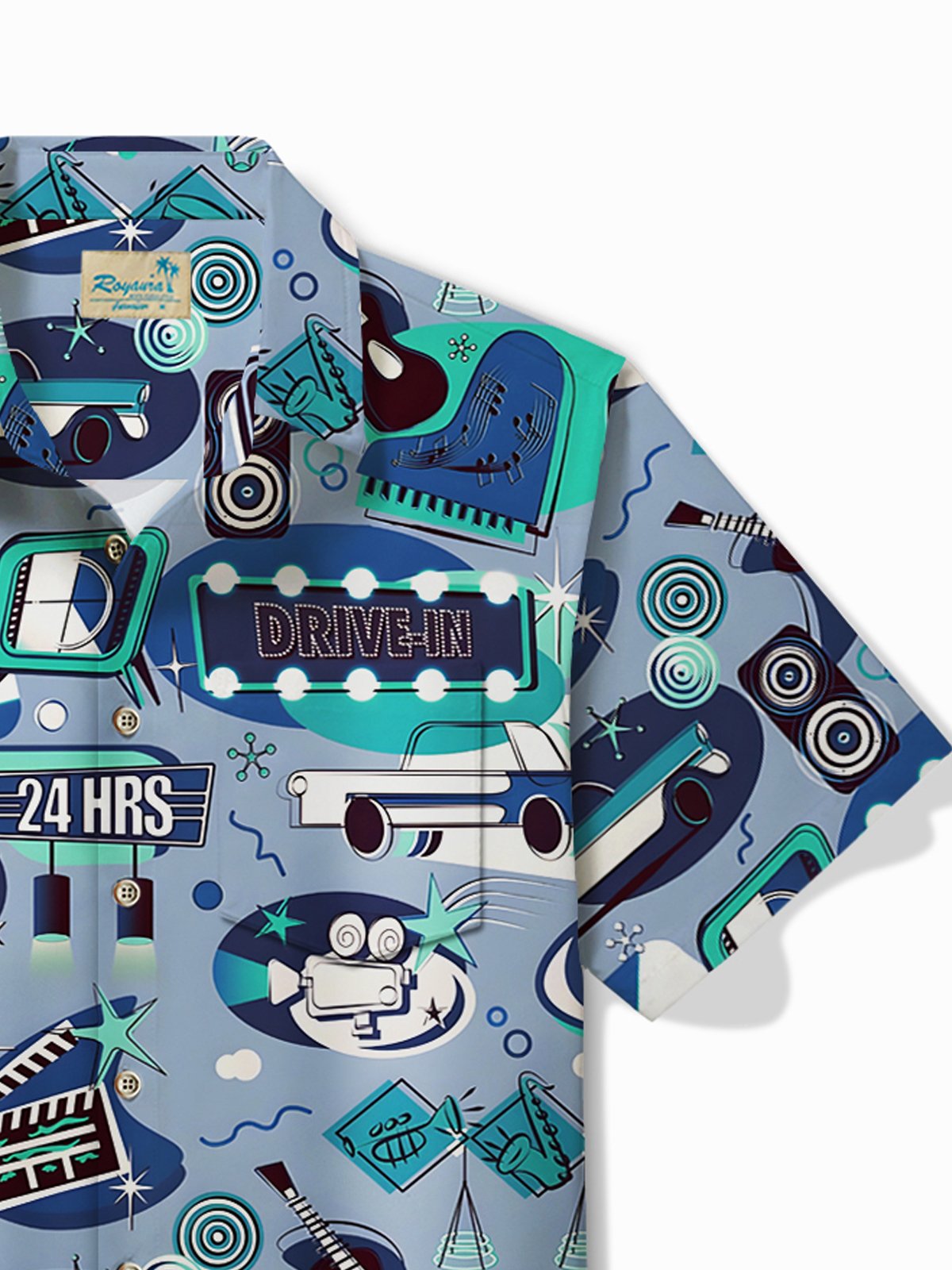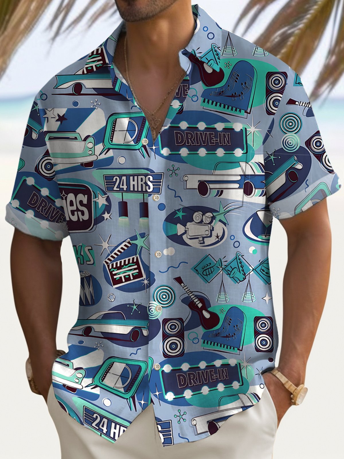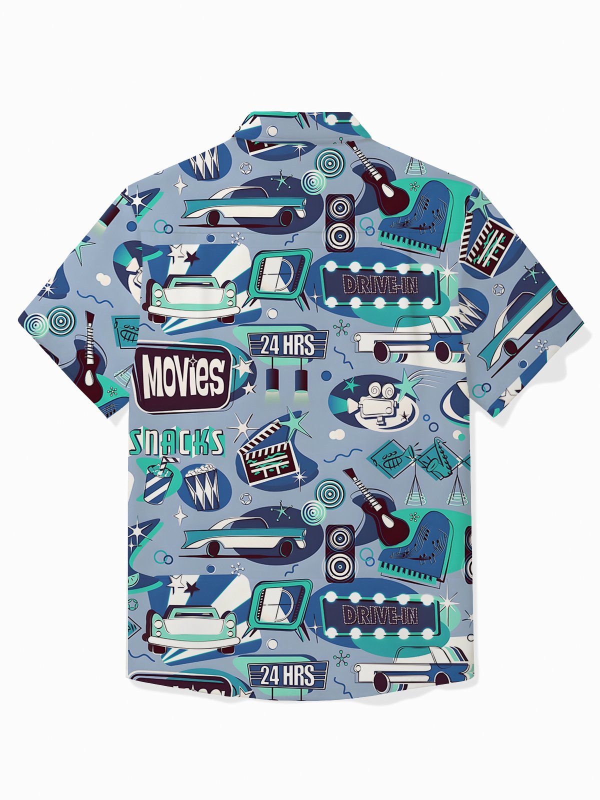 Alohadaddy Retro Auto Geometric Print Men's Button Pocket Short Sleeve Shirt