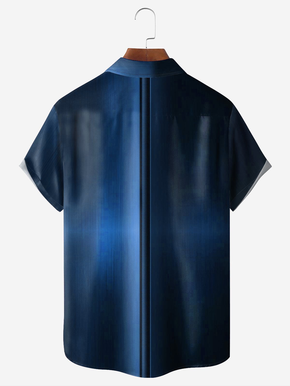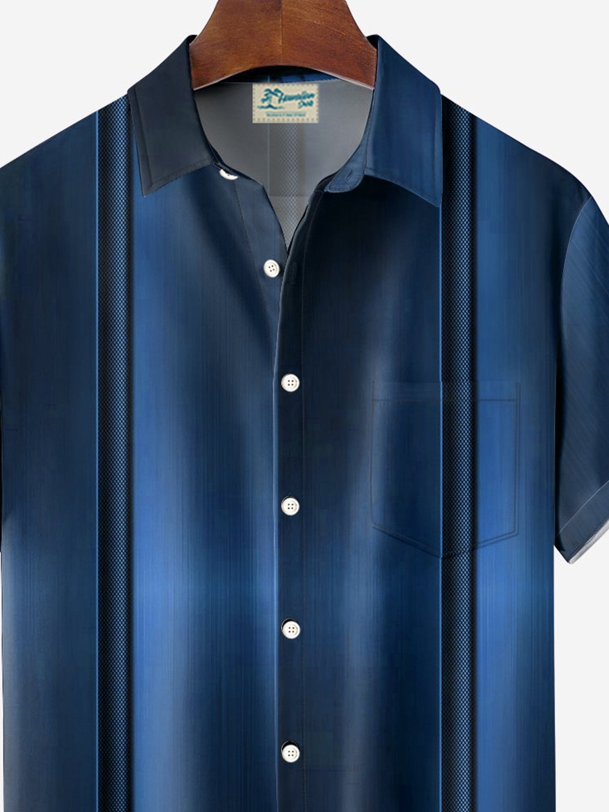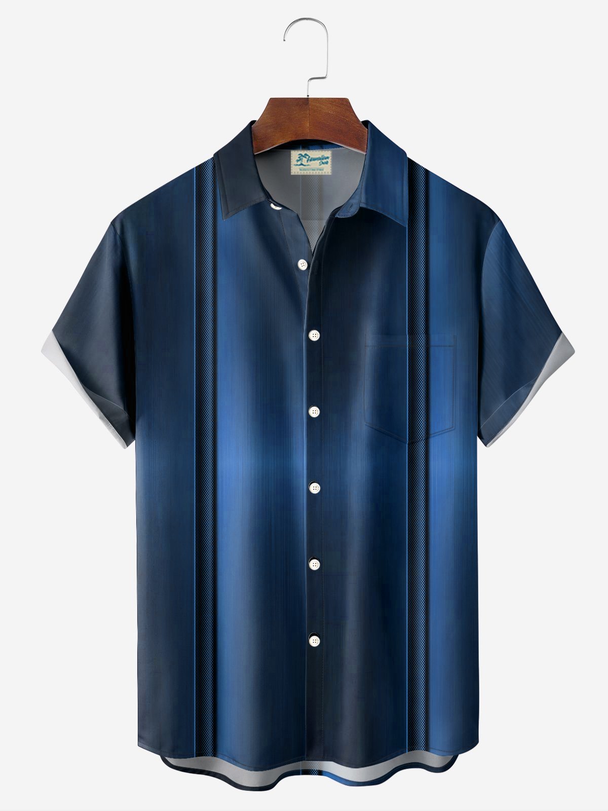 Alohadaddy Retro Bowling Gradient 3D Print Men's Button Pocket Short Sleeve Shirt Big & Tall