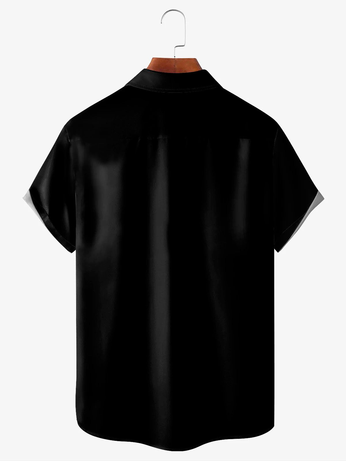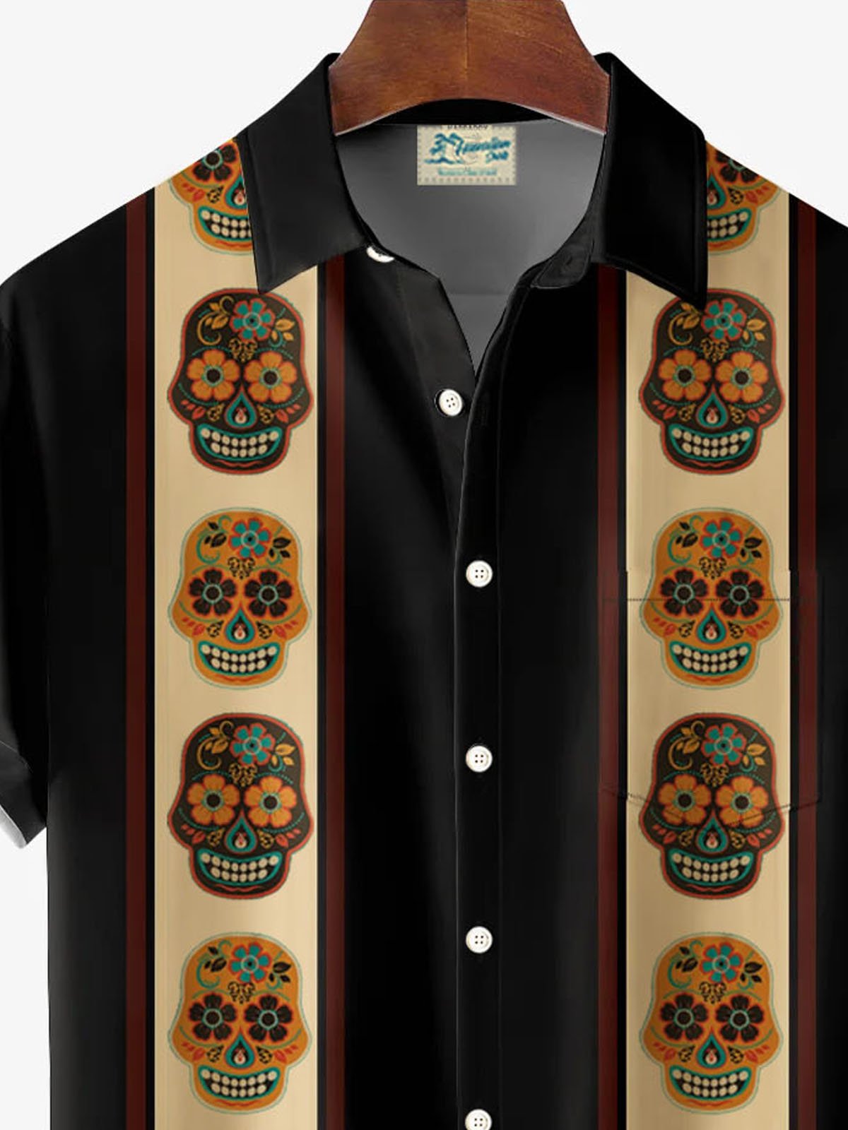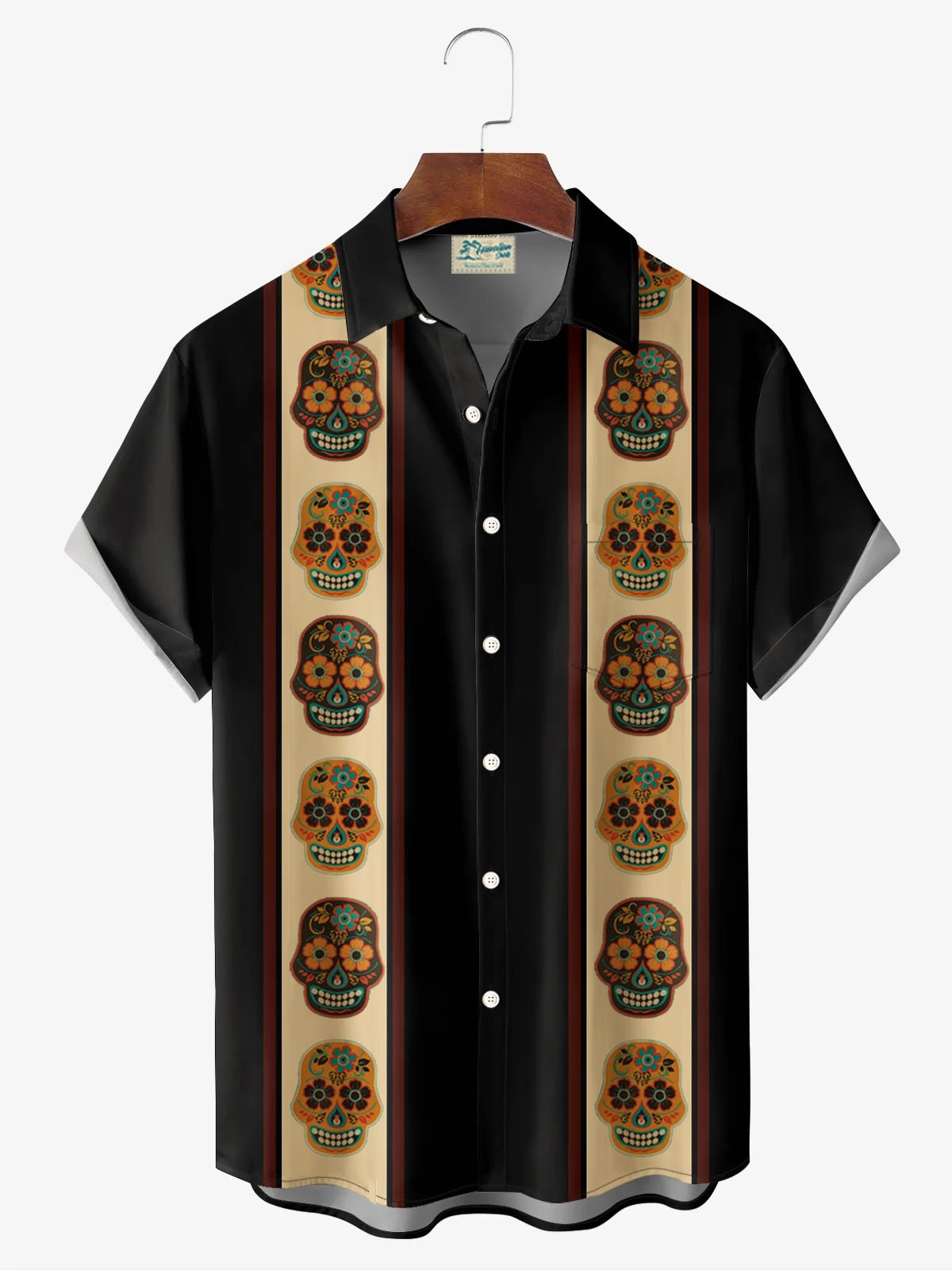 Alohadaddy Retro Bowling Skull 3D Print Men's Button Pocket Short Sleeve Shirt Big & Tall