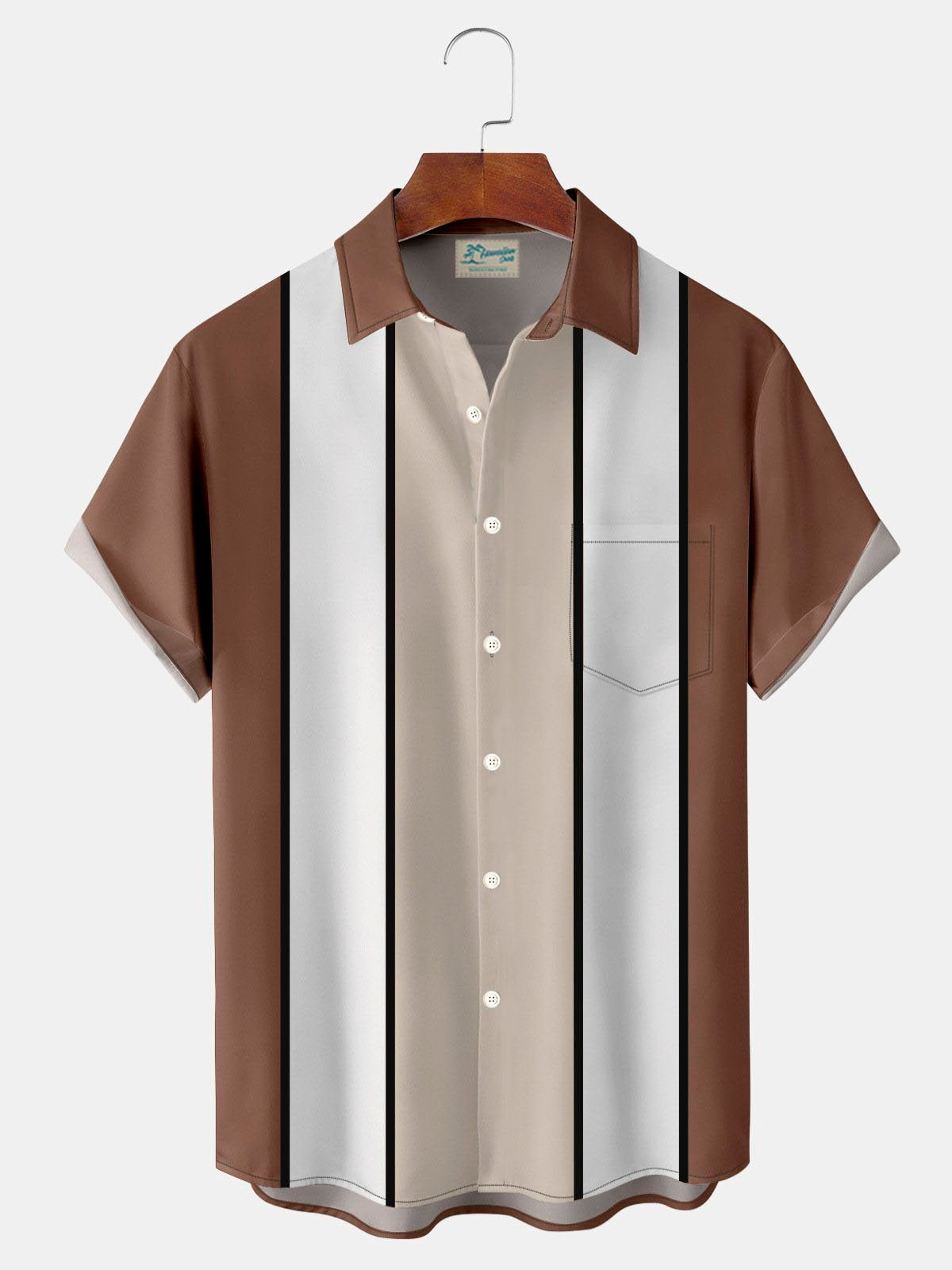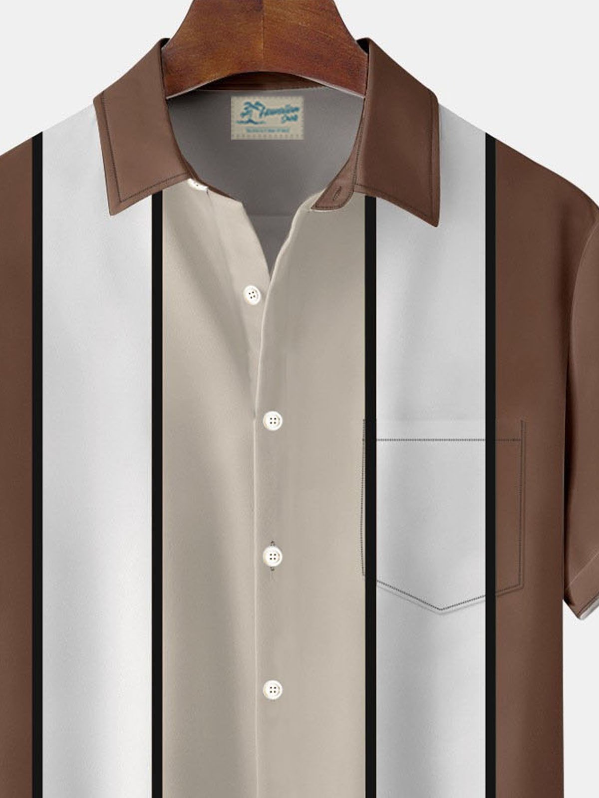 Alohadaddy Retro Bowling Stripe 3D Print Men's Button Pocket Short Sleeve Shirt Big & Tall