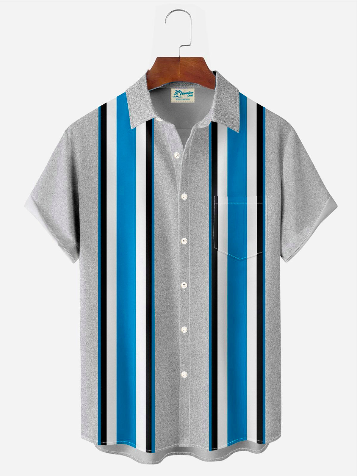Alohadaddy Retro Bowling Stripe 3D Print Men's Button Pocket Short Sleeve Shirt Big & Tall