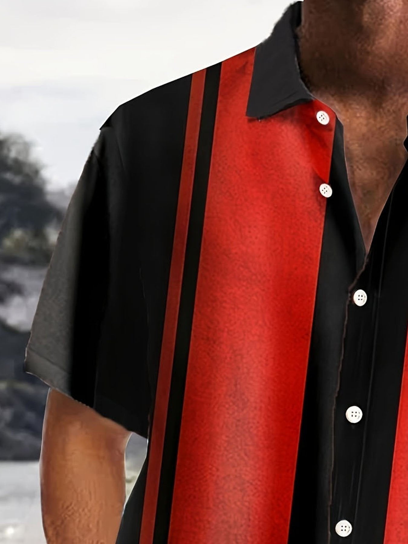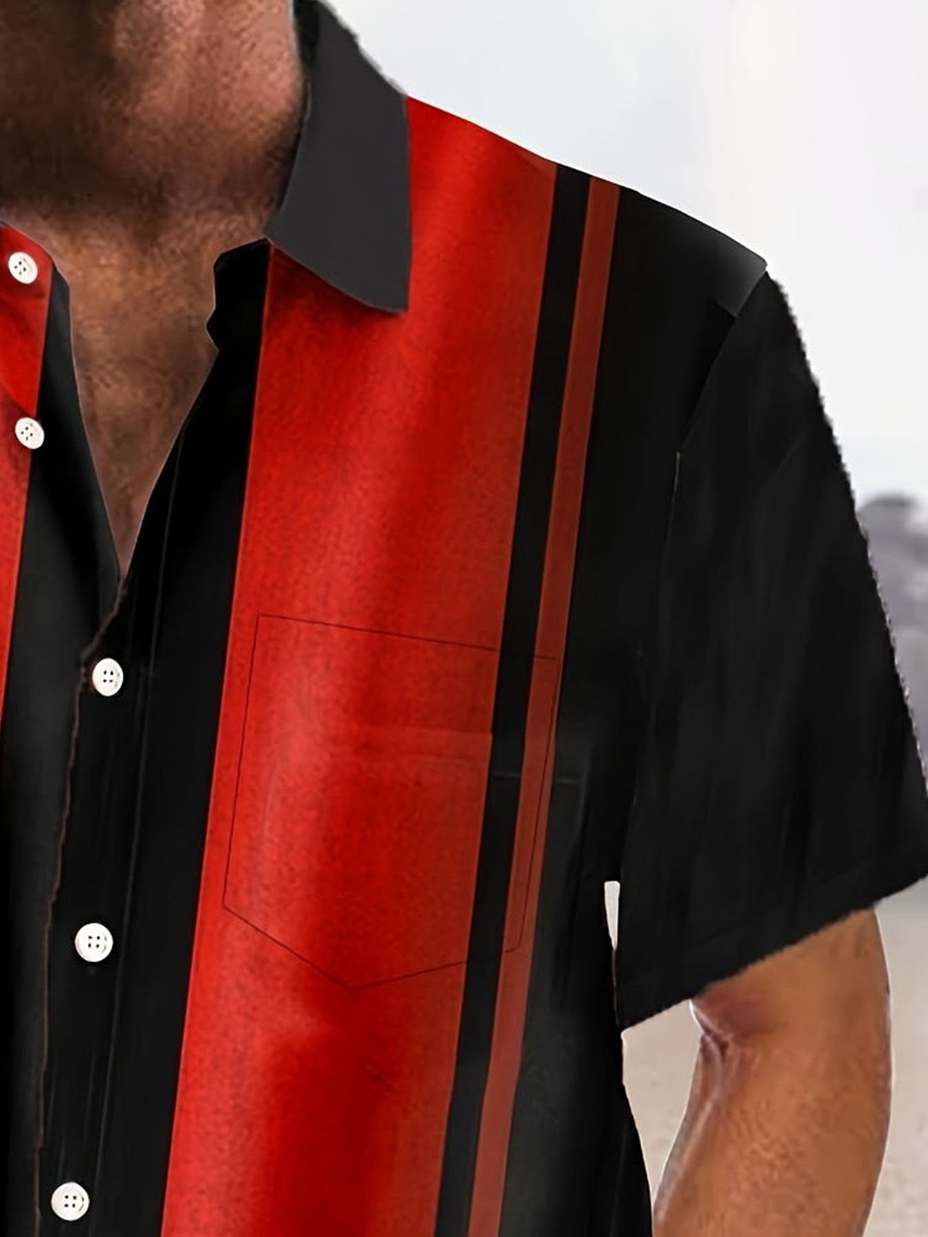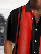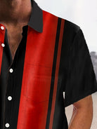 Alohadaddy Retro Bowling Stripe Contrast Print Men's Button Pocket Short Sleeve Shirt