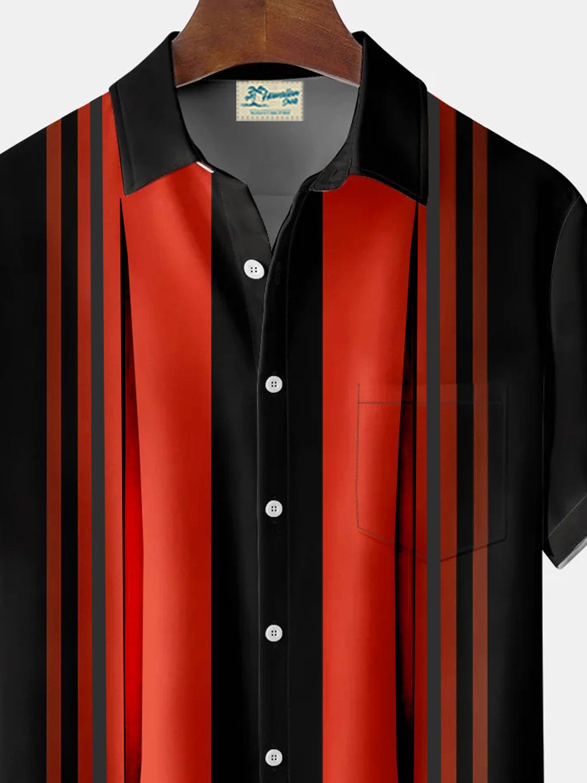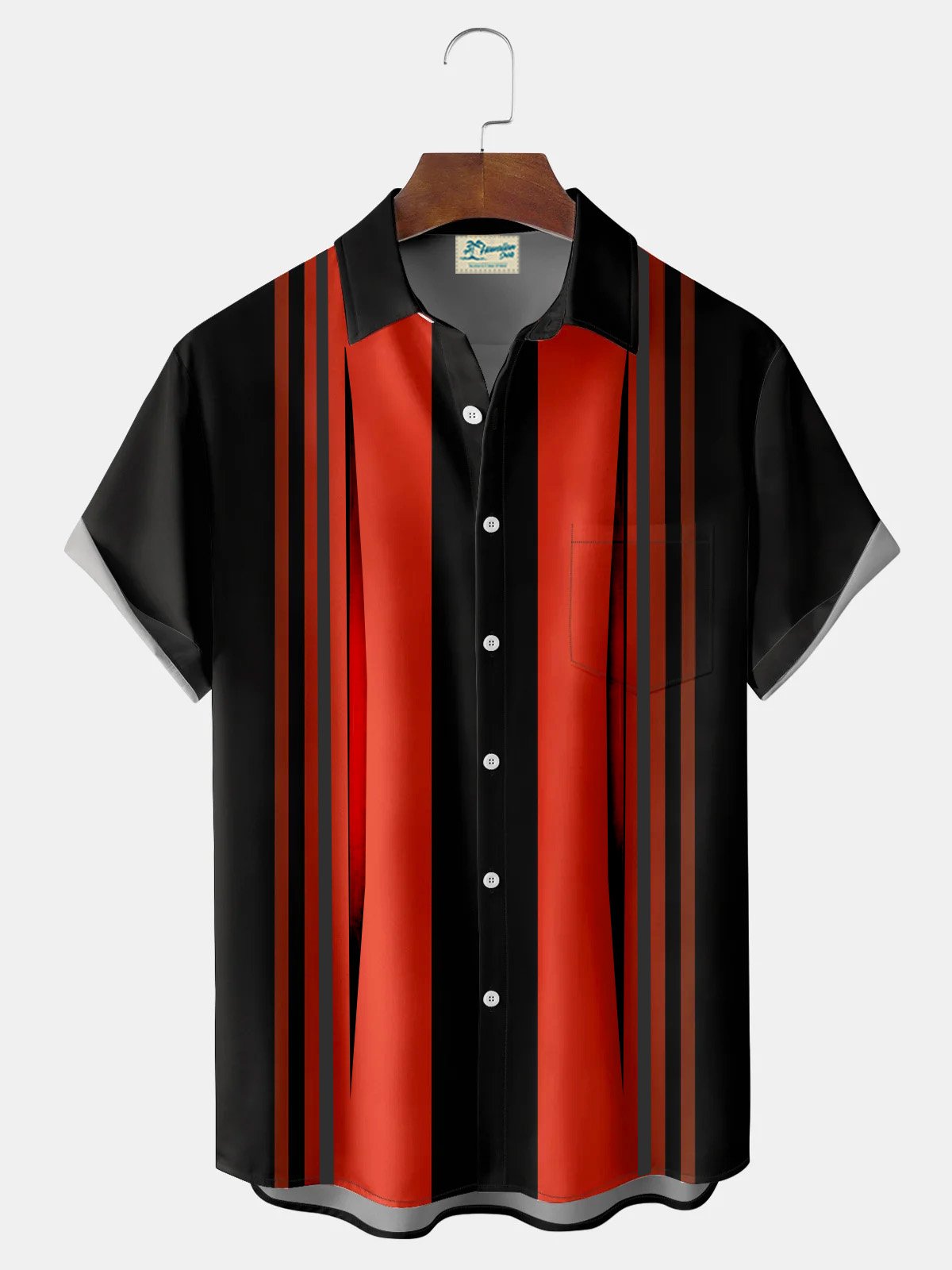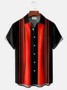Alohadaddy Retro Bowling Stripe Gradient 3D Print Men's Button Pocket Short Sleeve Shirt Big & Tall