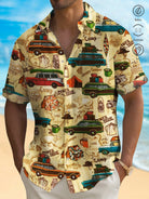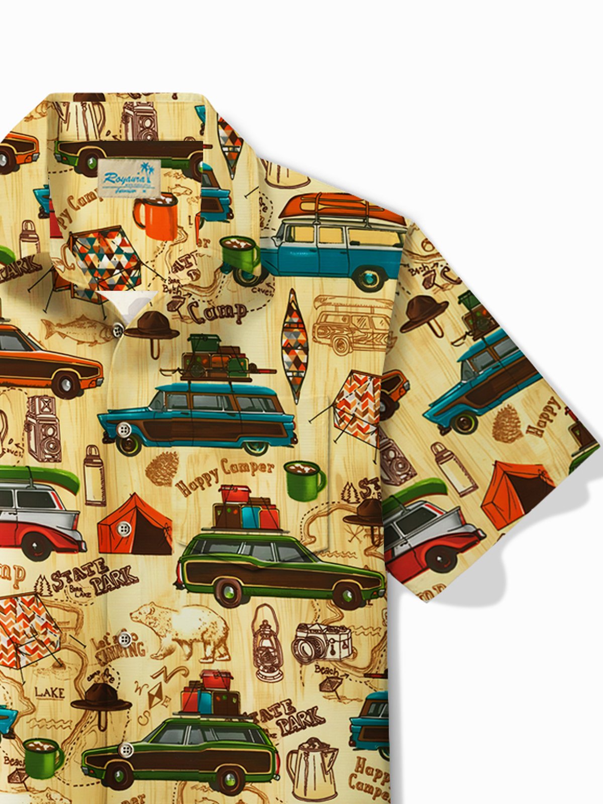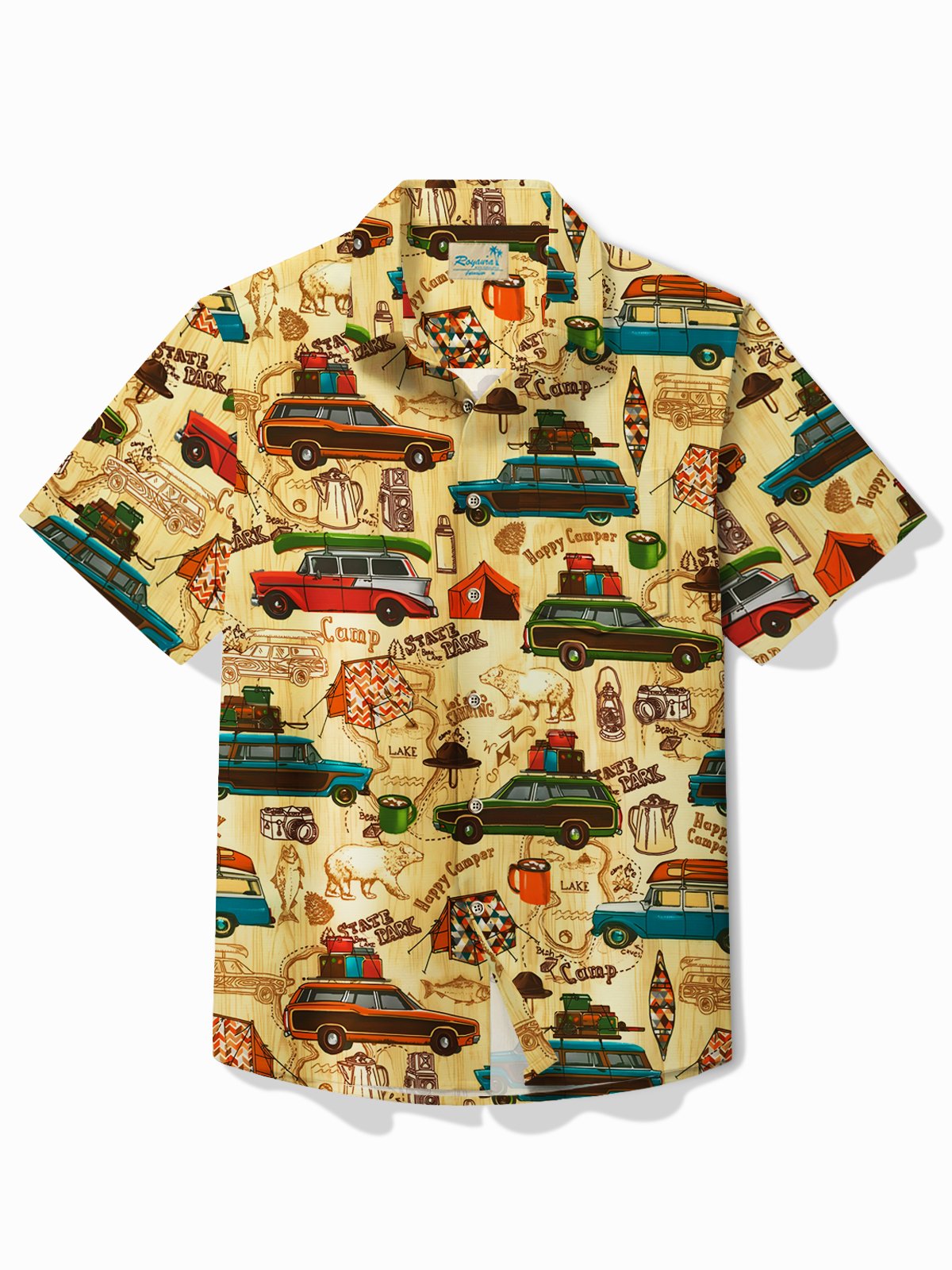 Alohadaddy Retro Camper Travel Car Print Men's Button Pocket Short Sleeve Shirt