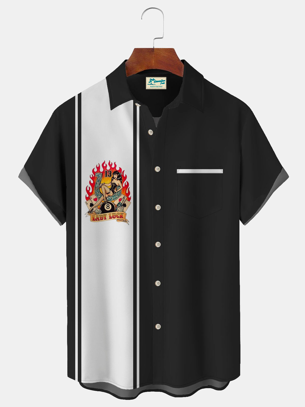 Alohadaddy Retro Car Lady Luck Rockabilly Retro Bowling Shirt Oversized Vacation Aloha Shirt