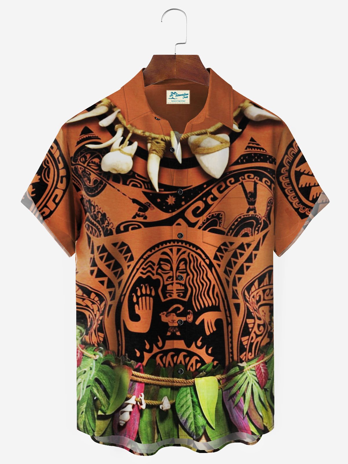 Alohadaddy Retro Films Orange Men's Hawaiian Shirts Hominids Cartoon Drama Costume Stretch Oversized Aloha Camp Pocket Button Shirts