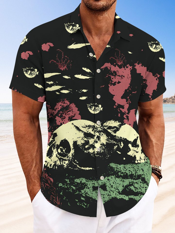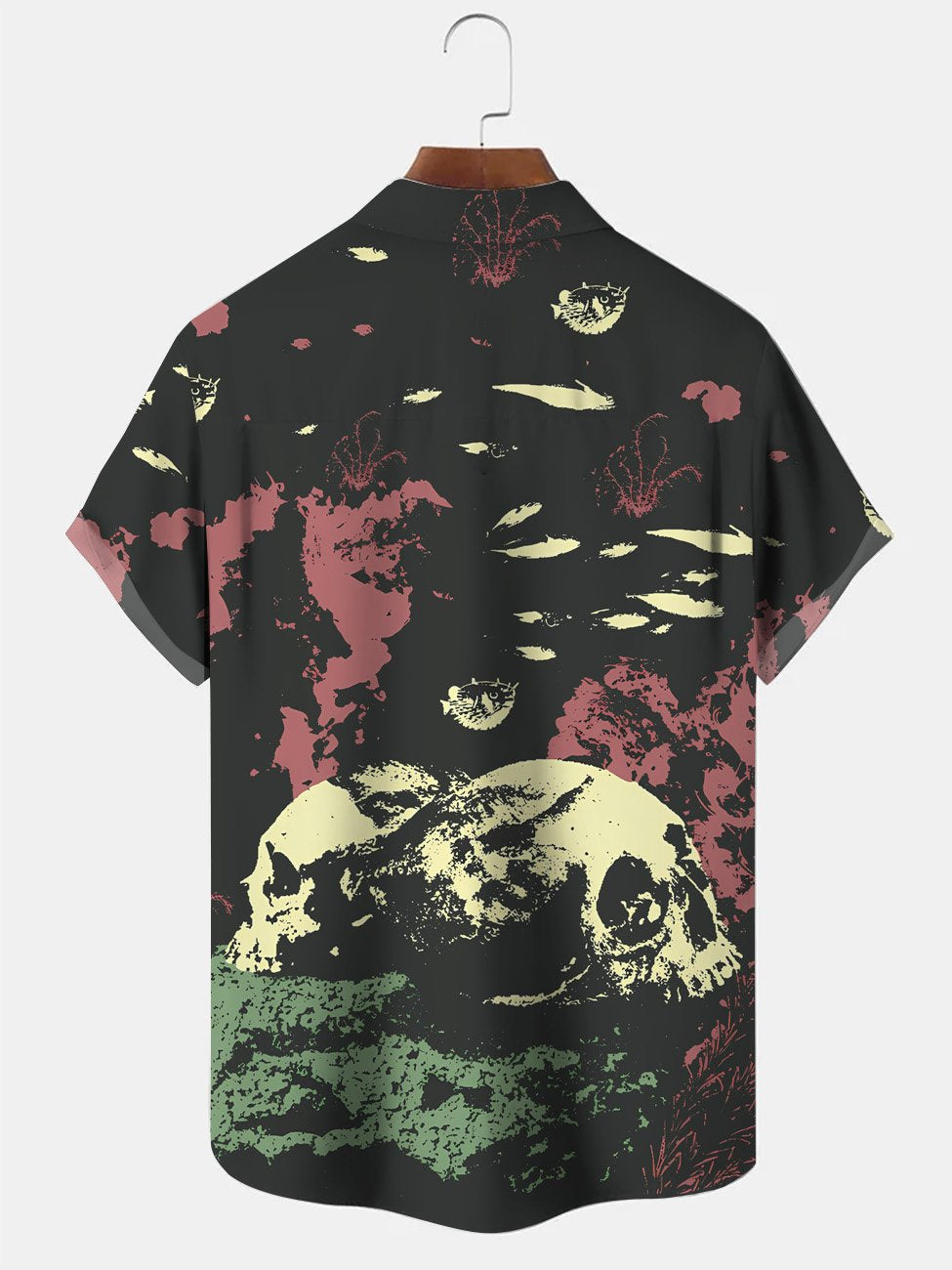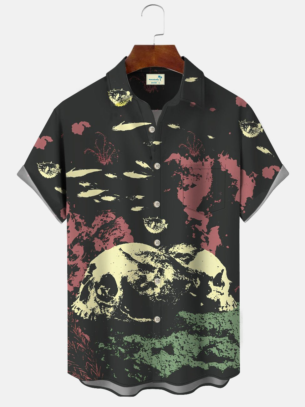 Alohadaddy Skull Button Pocket Casual Short Sleeve Shirt