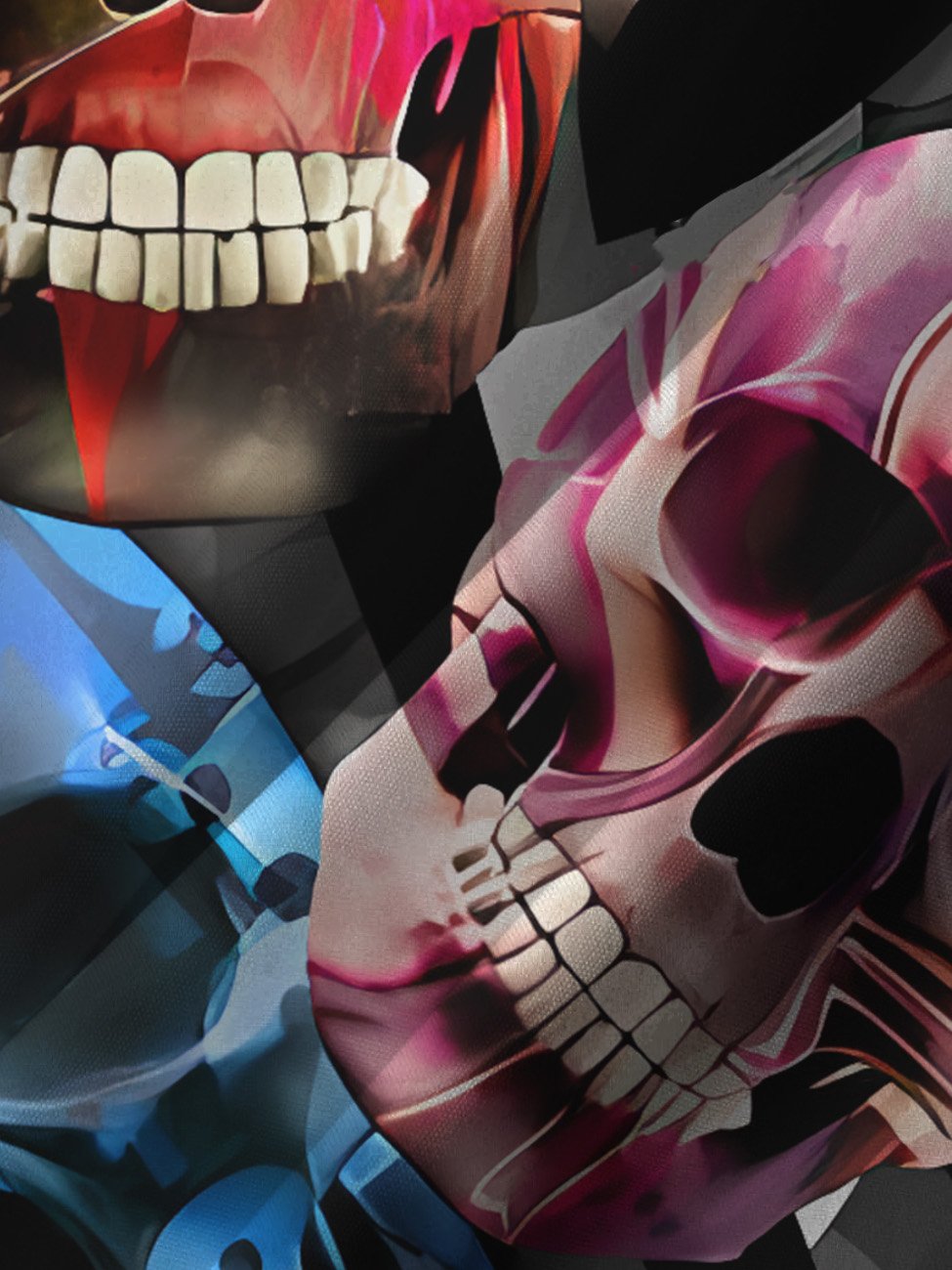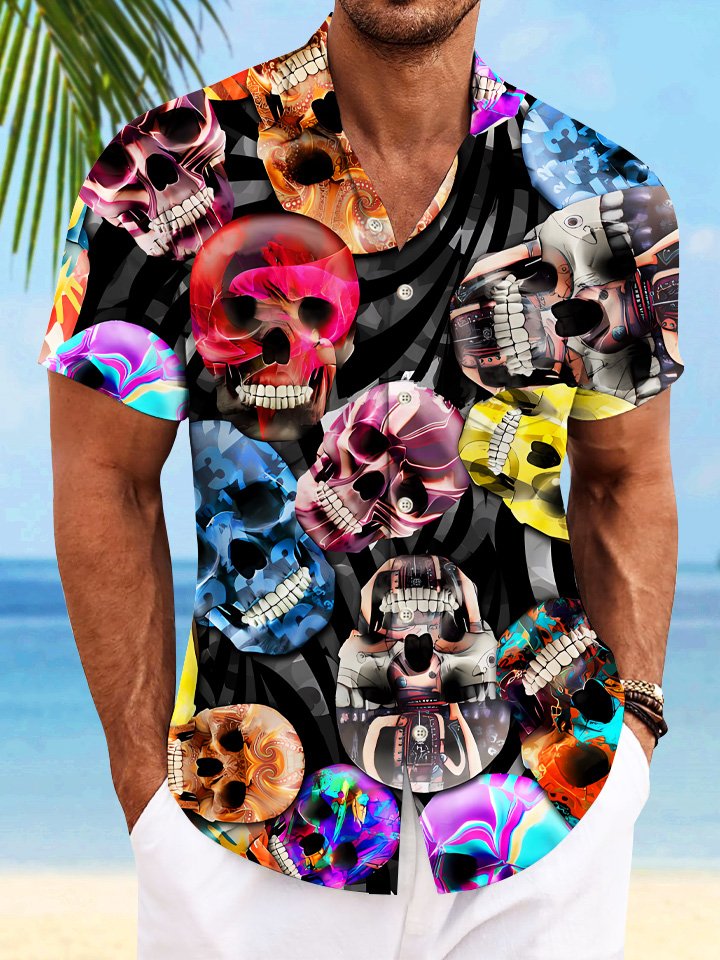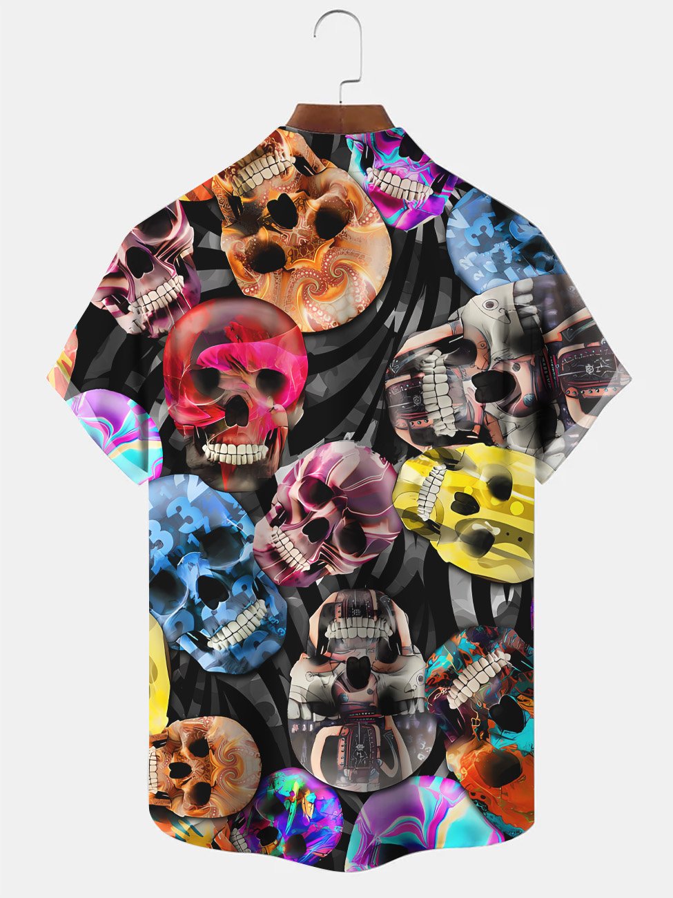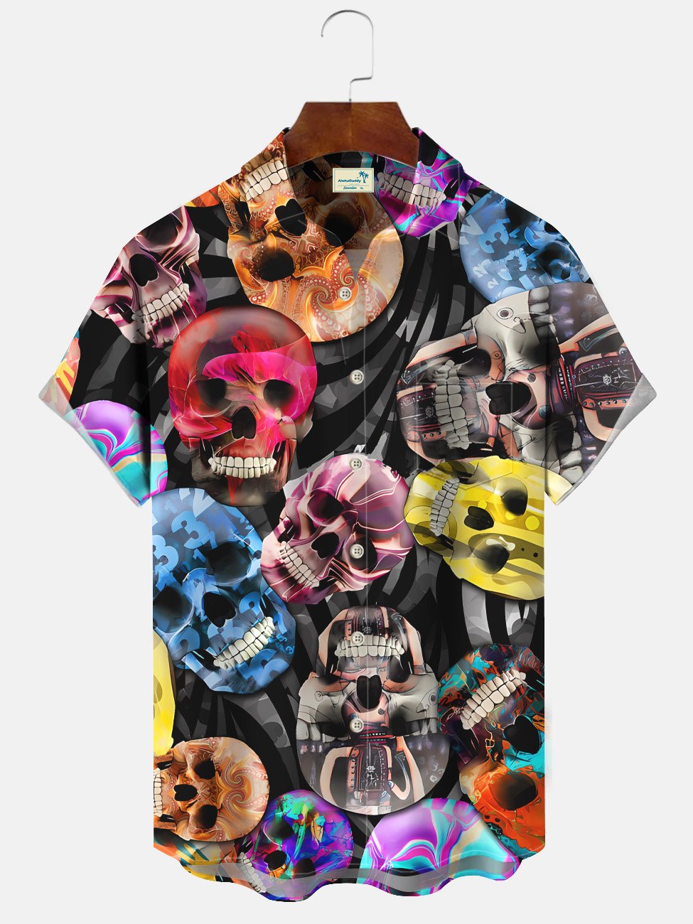 Alohadaddy Skull Halloween Button Pocket Casual Short Sleeve Shirt