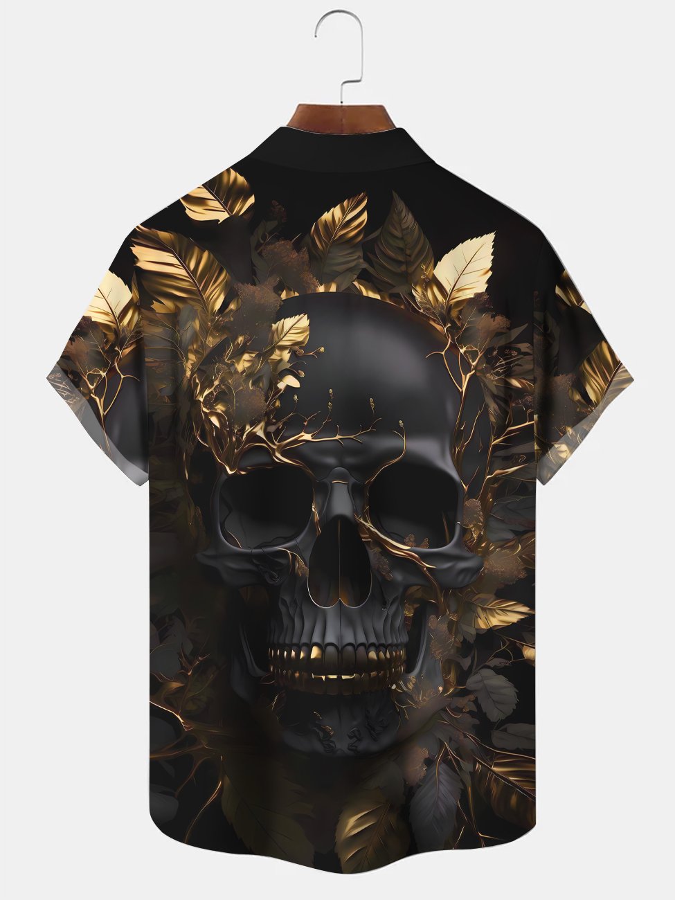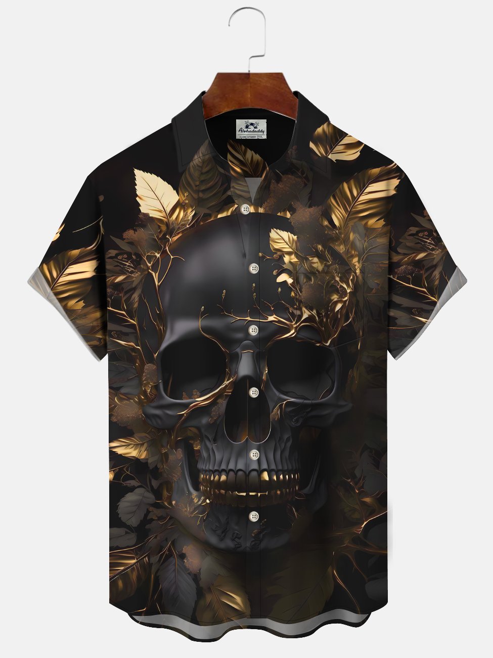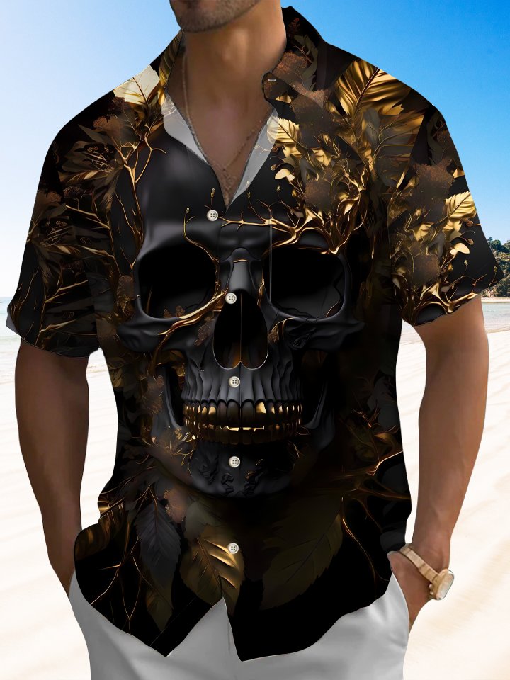 Alohadaddy Skull Leaf Button Pocket Casual Short Sleeve Shirt