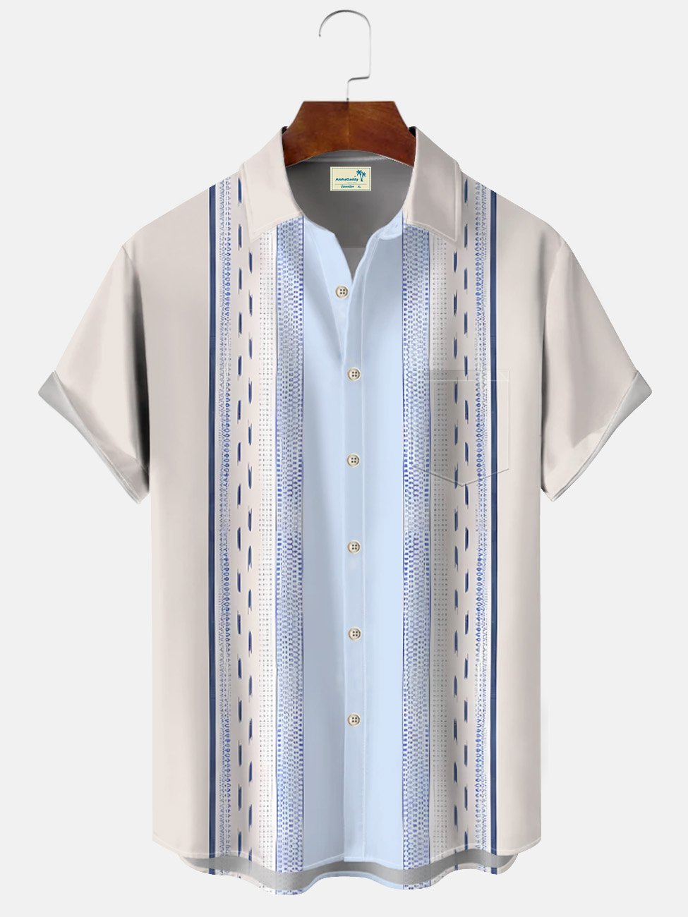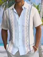 Alohadaddy Summer Ethnic Style Geometric Lines Men's 50S Bowling Commuter Button Pocket Polyester Short Sleeve Shirt