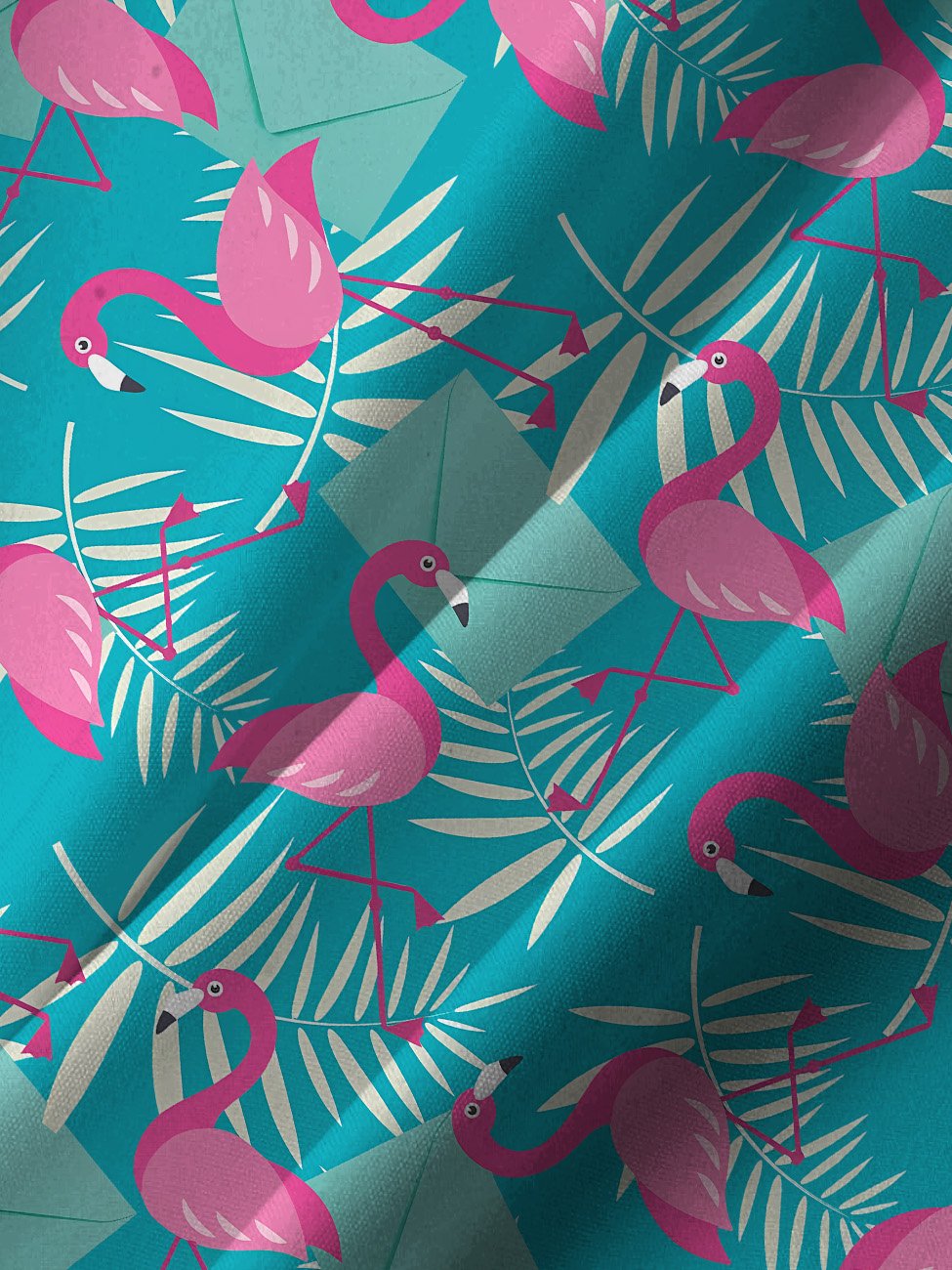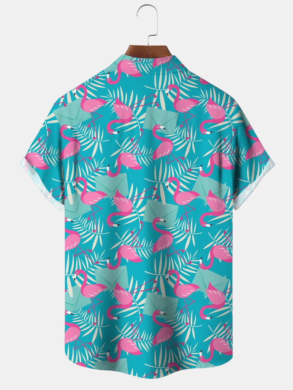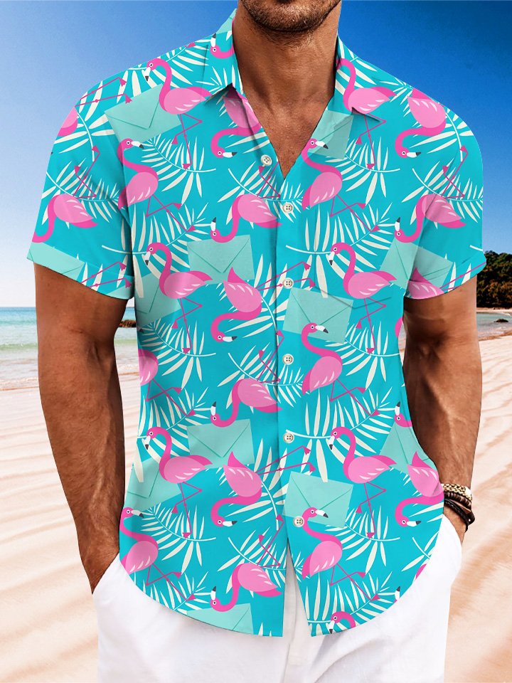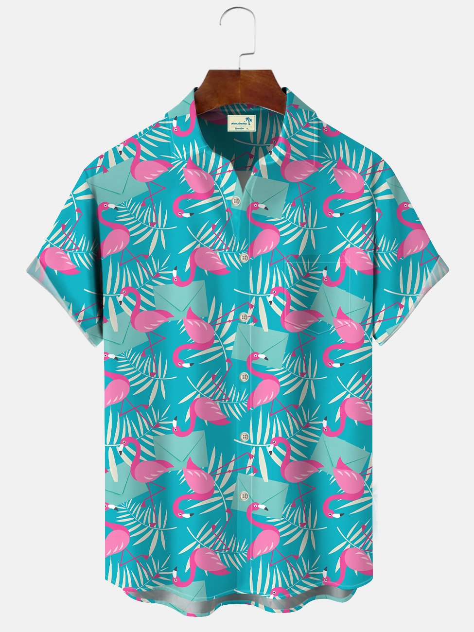 Alohadaddy Summer Flamingo Mens Button Pocket Casual Shirt