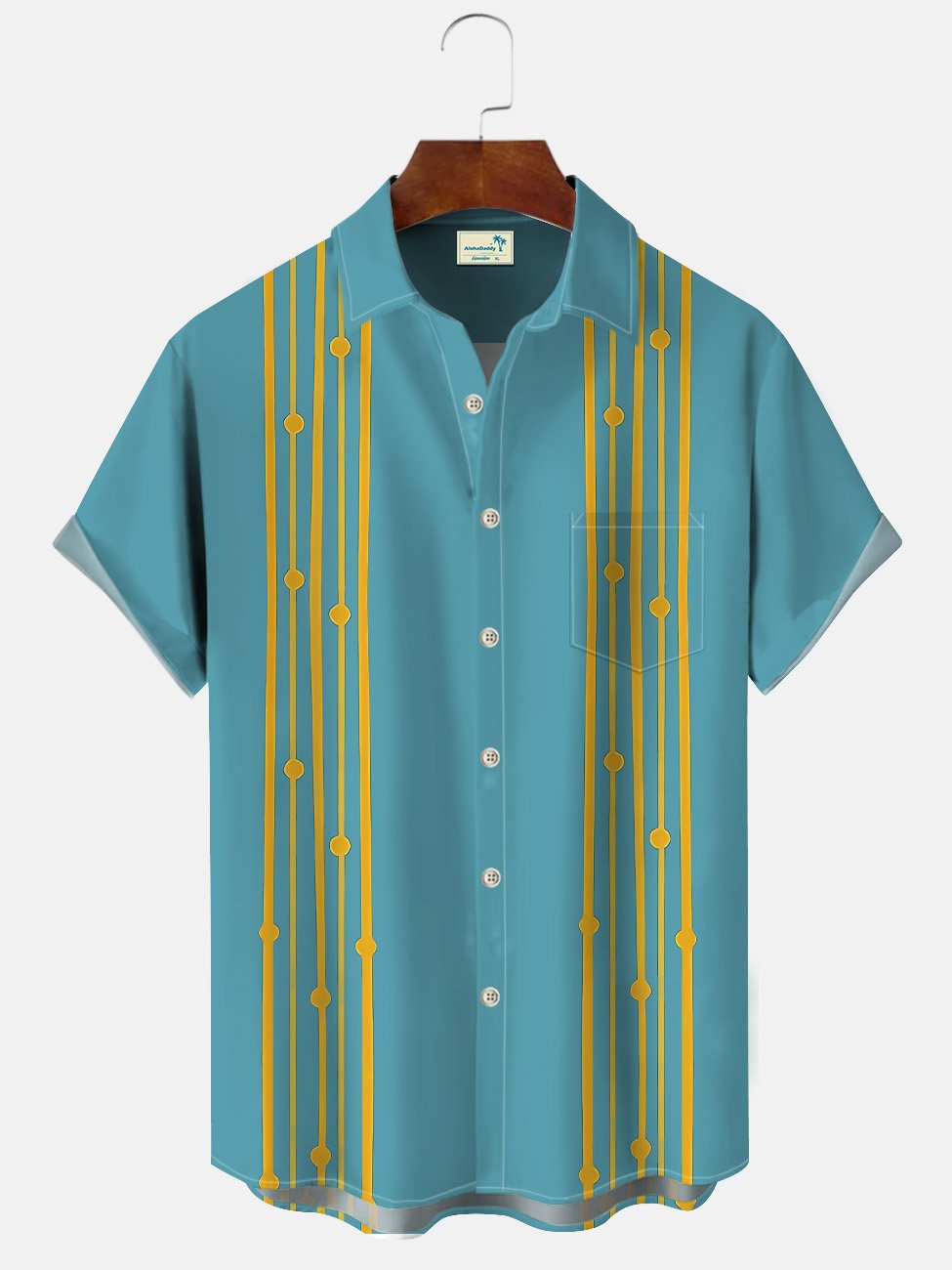 Alohadaddy Summer Geometric Stripes Men's 50S Bowling Commuter Button Pocket Casual Vacation Short Sleeve Shirt